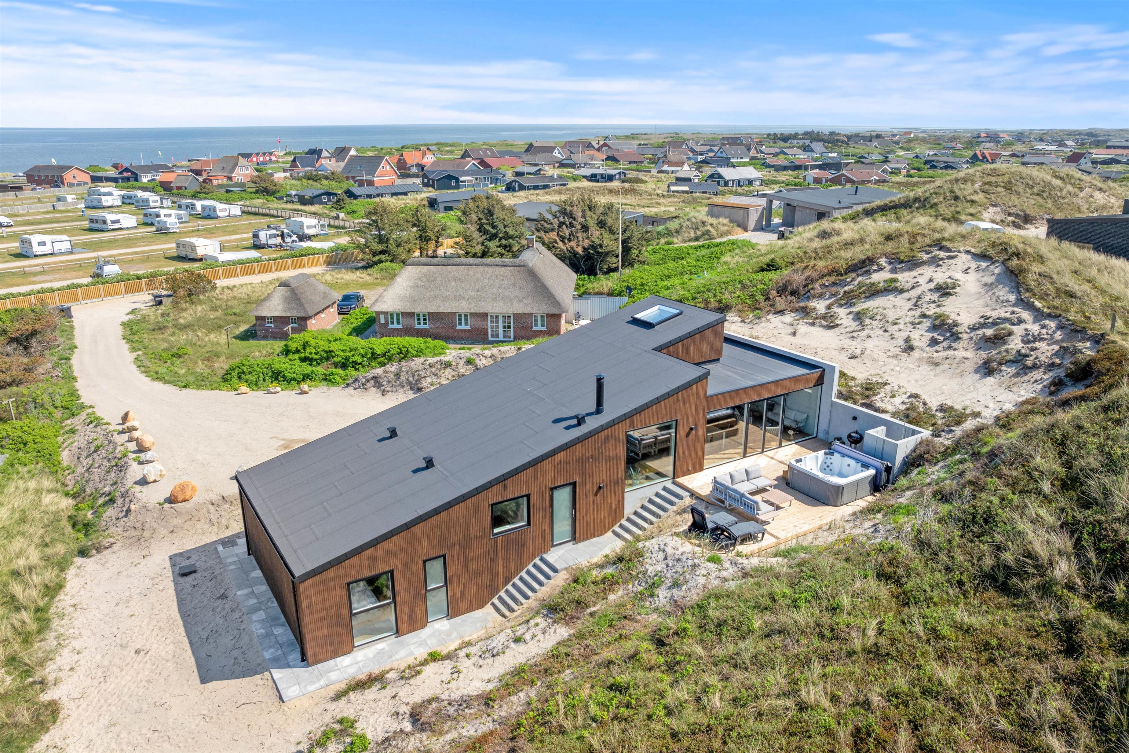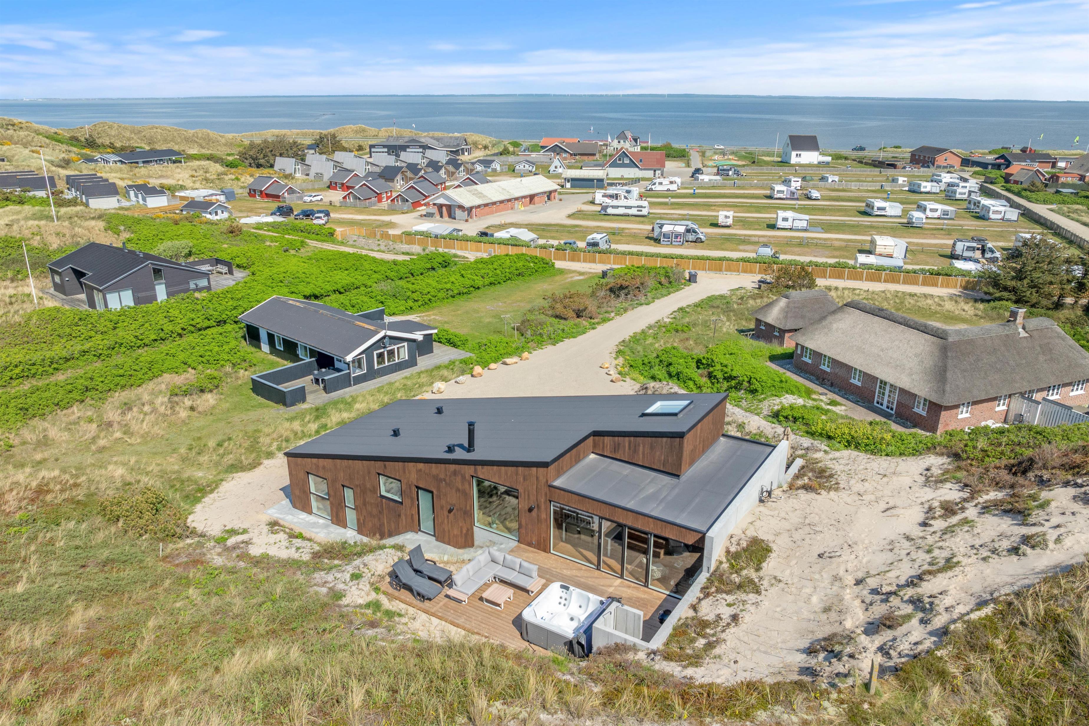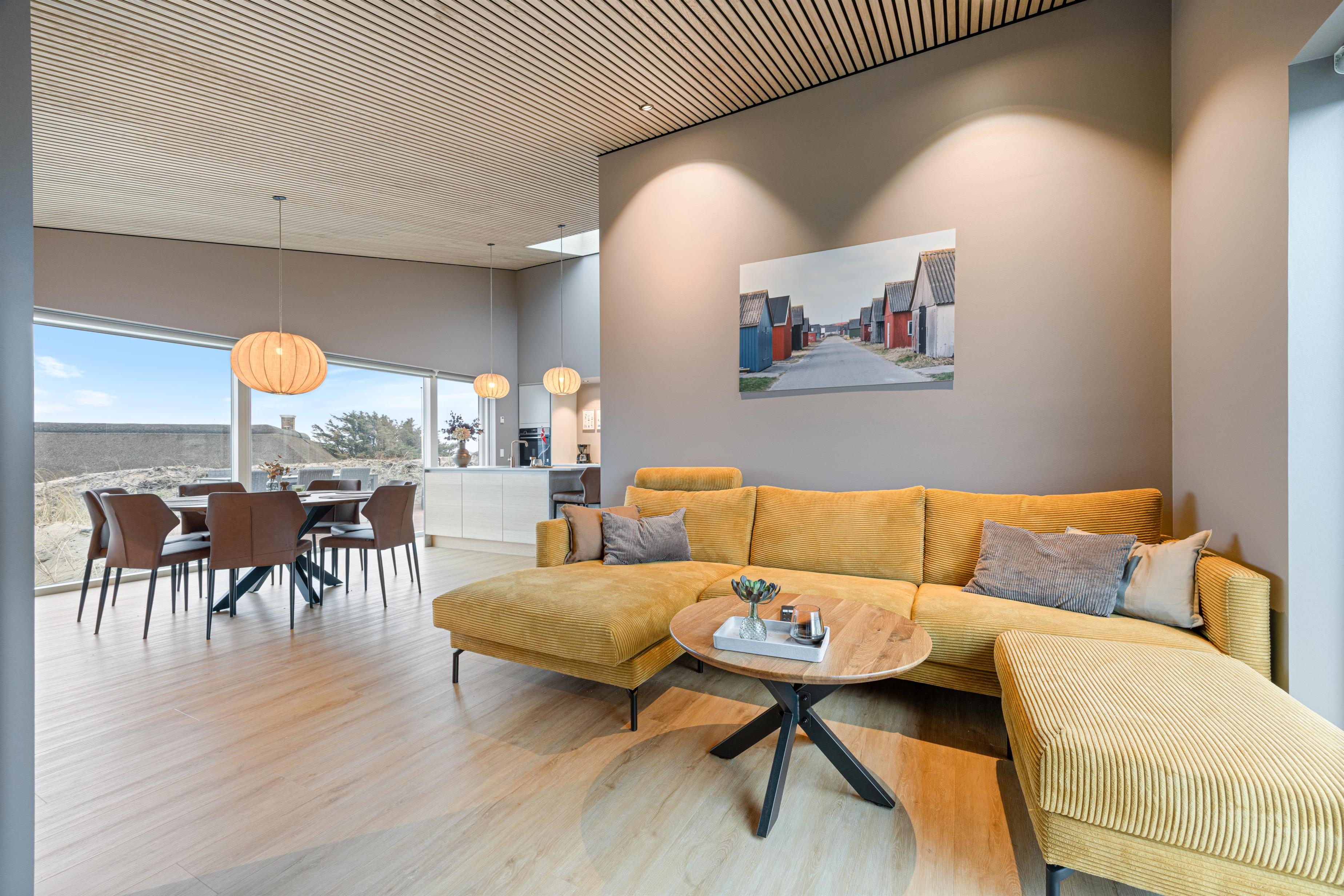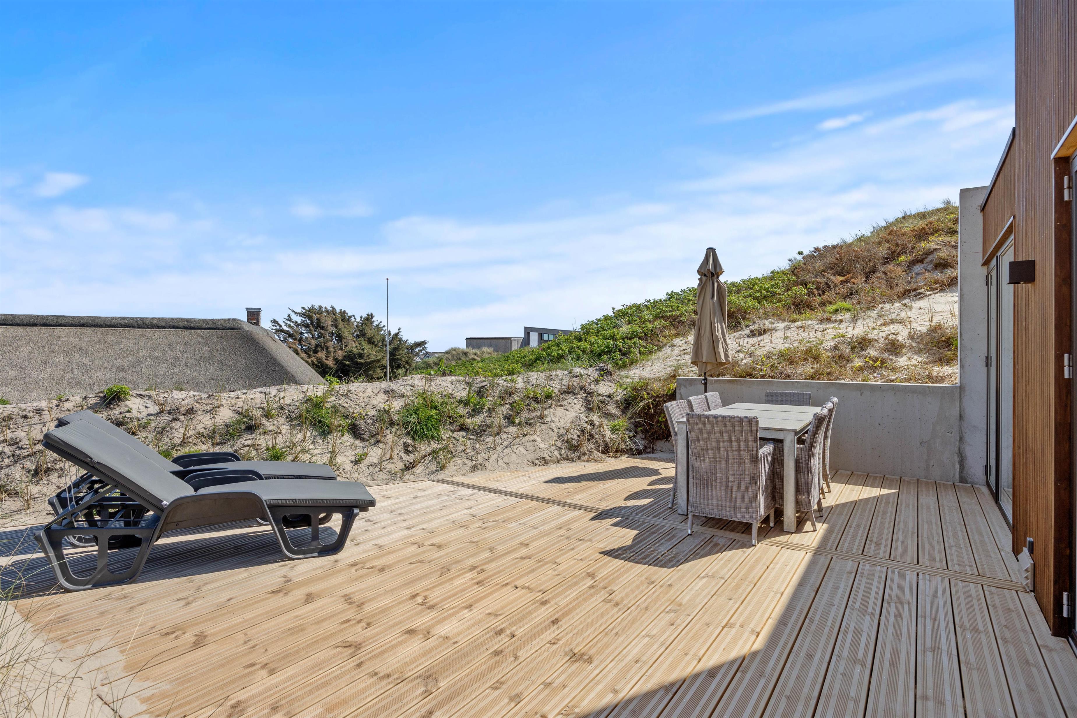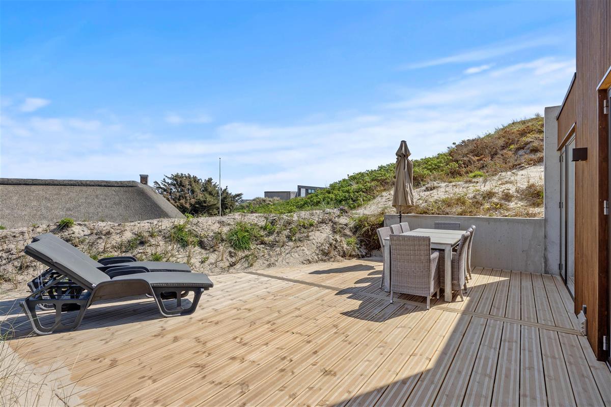 Imagine opening the door to a paradise of comfort and style. Our holiday home at Karen Brands Vej 106 in Årgab invites you to unwind and leave everyday life behind. This 5-star holiday home offers everything you could wish for to make your holiday an unforgettable experience. With a generous living space of 125 square metres and room for up to 7 people and 2 dogs, it's the ideal retreat for a relaxing break in Denmark, situated in the front row of dunes just 100 metres from the North Sea.