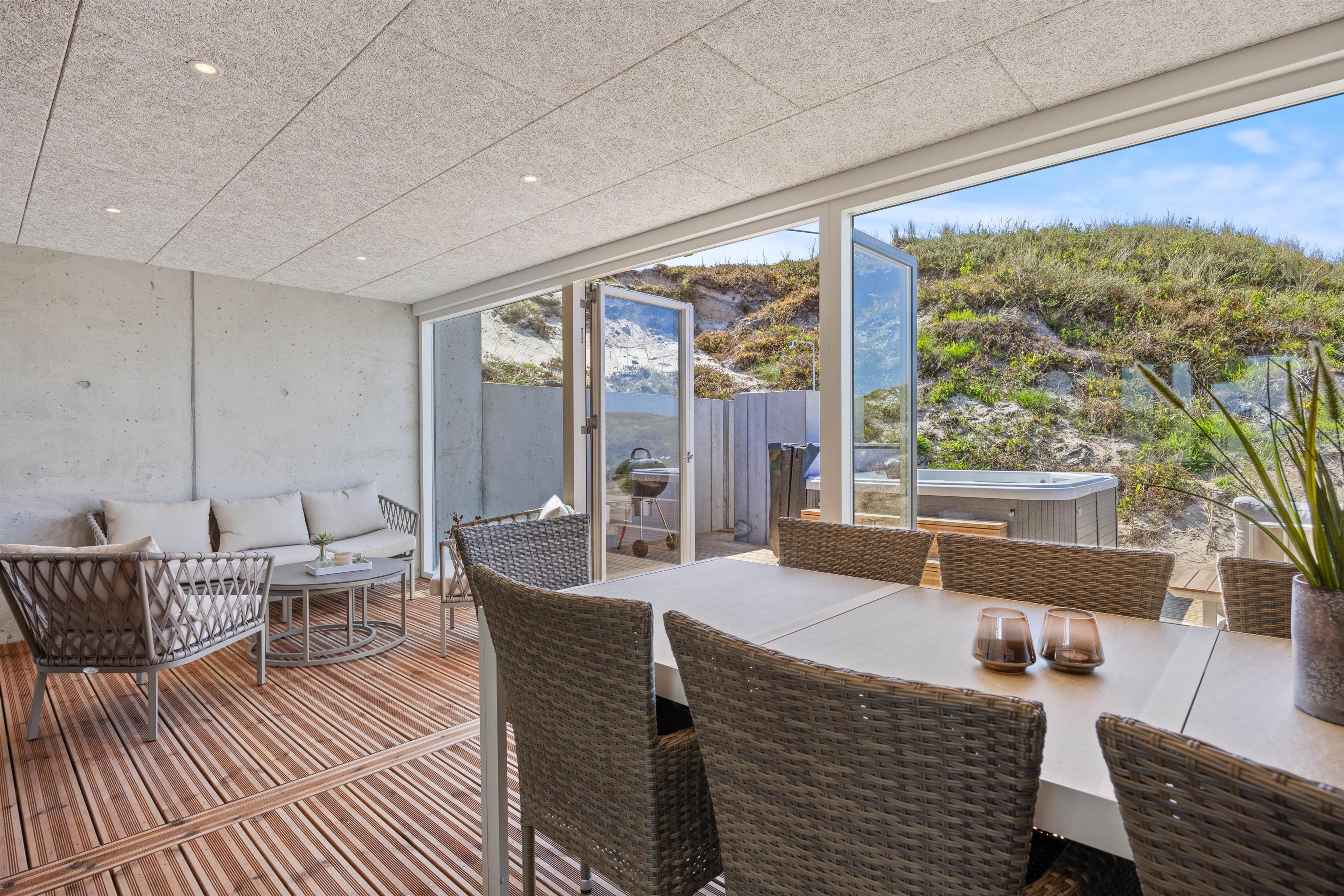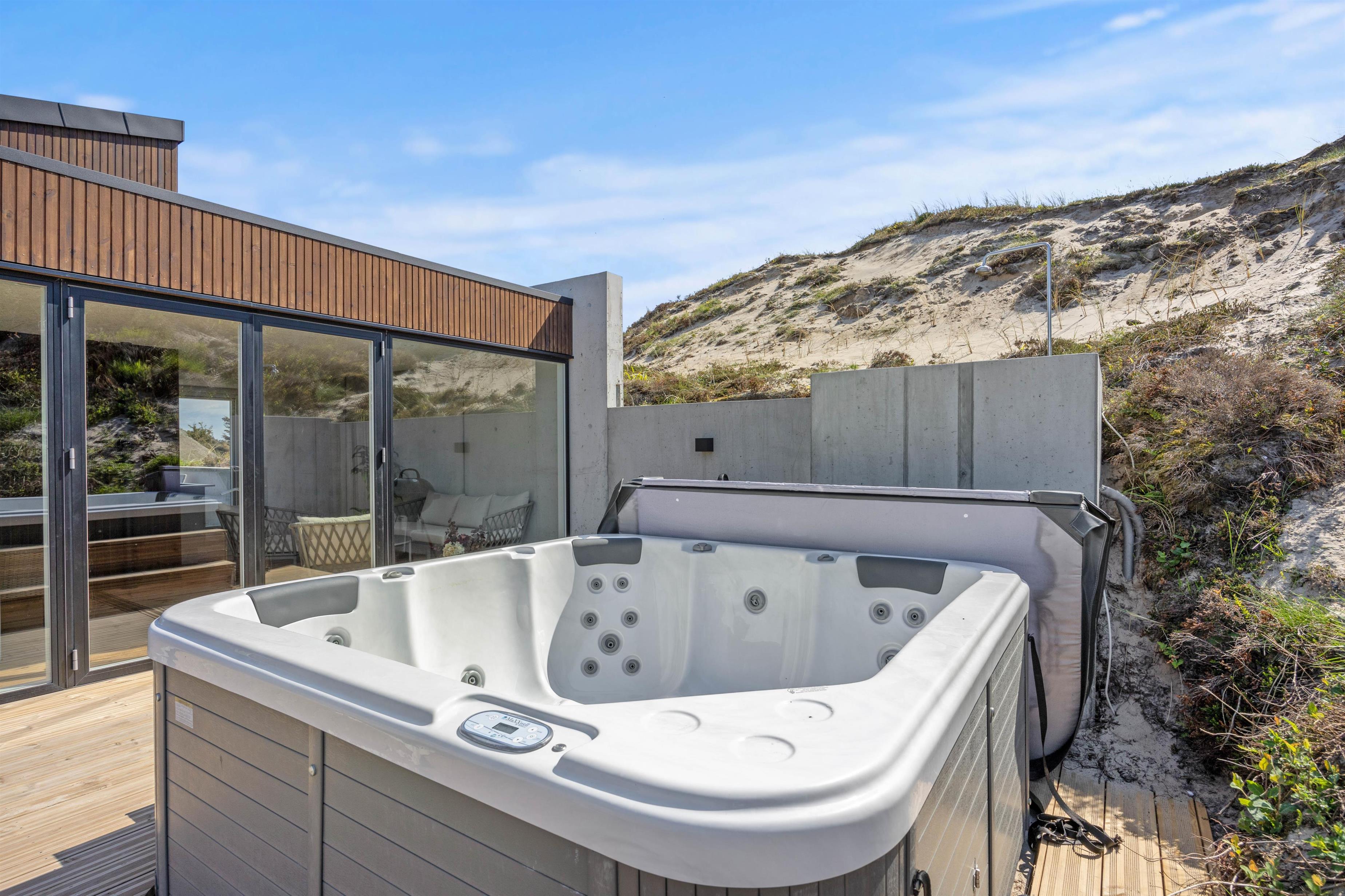The winter garten and surrounding terraces are perfect spots to enjoy nature's beauty. For relaxing evenings outdoors with breathtaking views, there's also a hot tub. From April to November, you can rinse off North Sea salt and sand using the outdoor shower on the terrace.