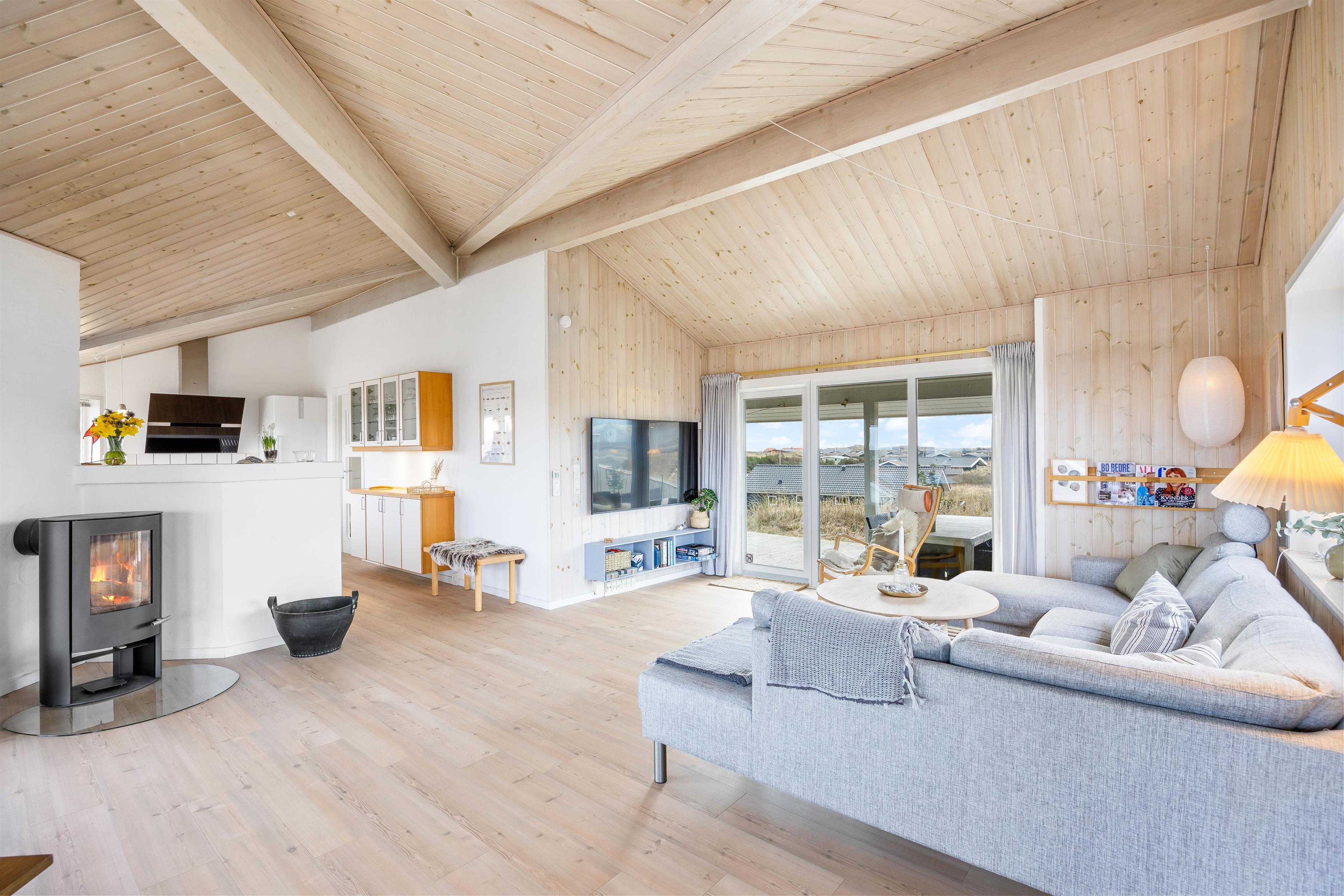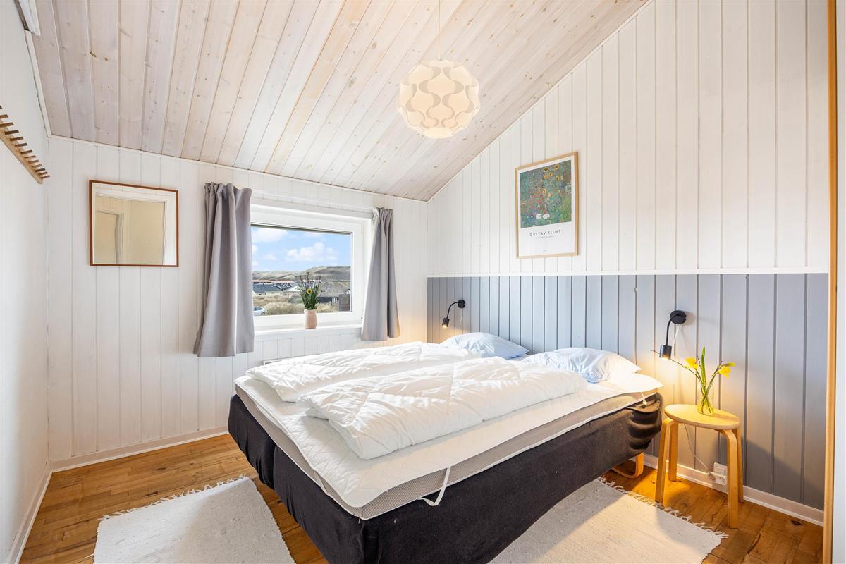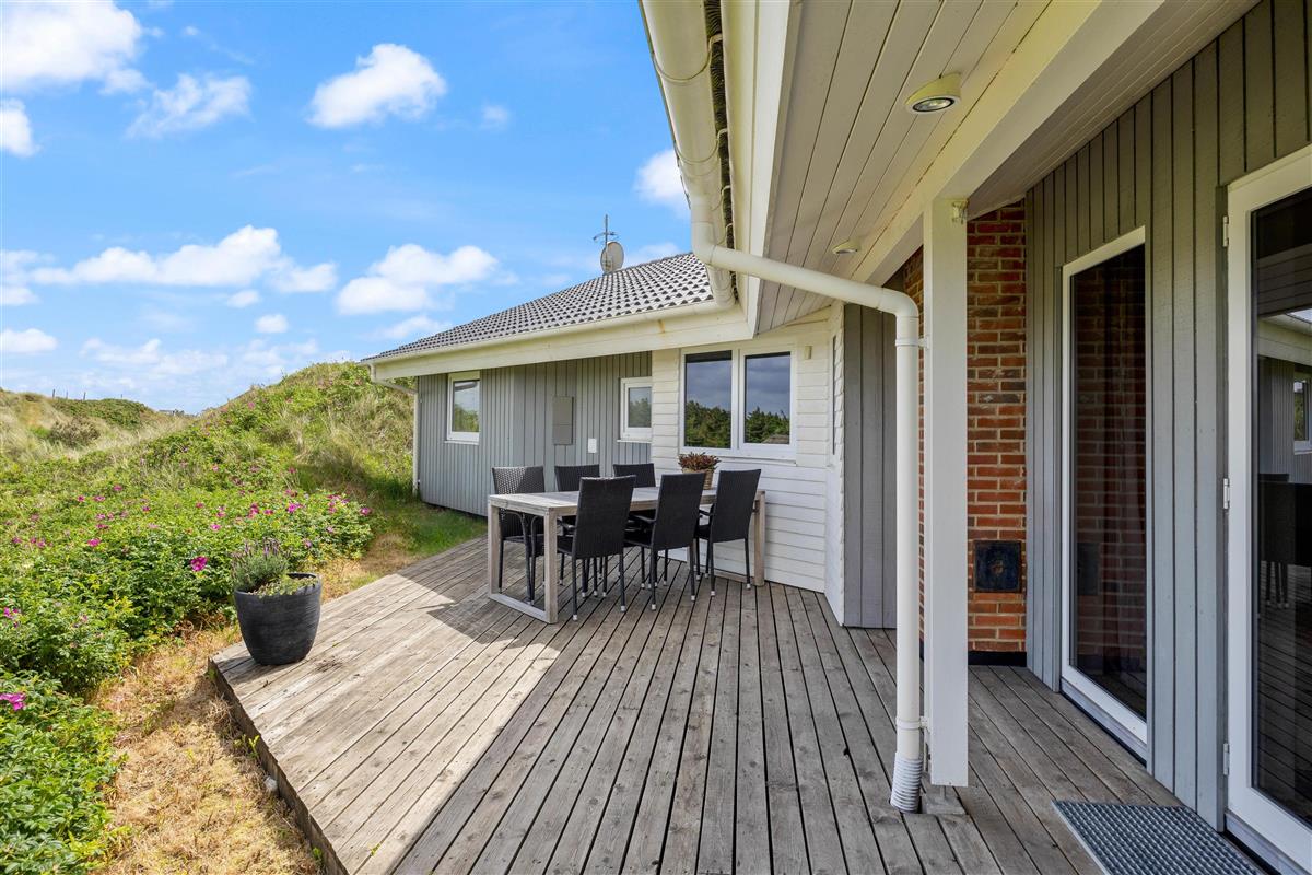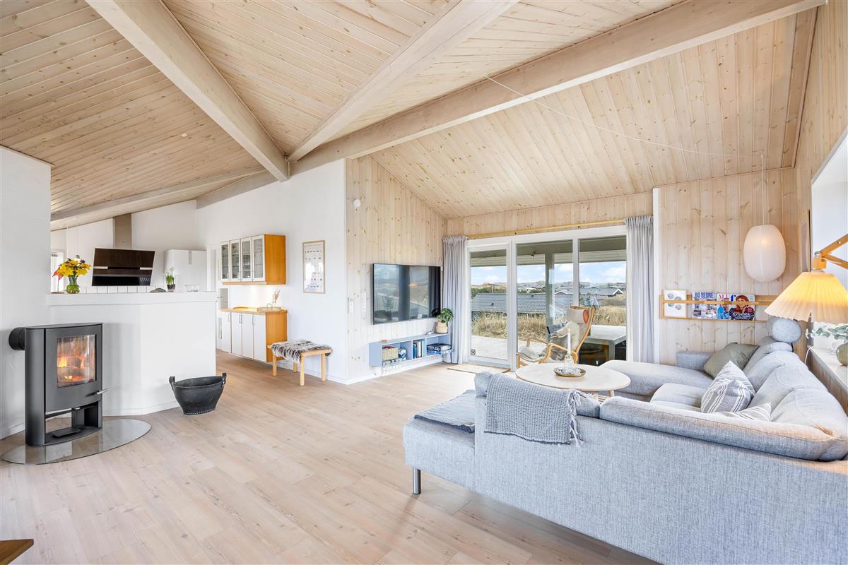The holiday home's terrace has both covered and sheltered areas, allowing you to move with the sun throughout the day. Enjoy morning sunrises over the fjord and evening sunsets over the North Sea – both promise to be unique experiences. During the day, you can sunbathe in the loungers or retreat to the comfortable garden furniture with a cool drink. In the evening, gather together for a lovely barbecue and enjoy the tranquillity.