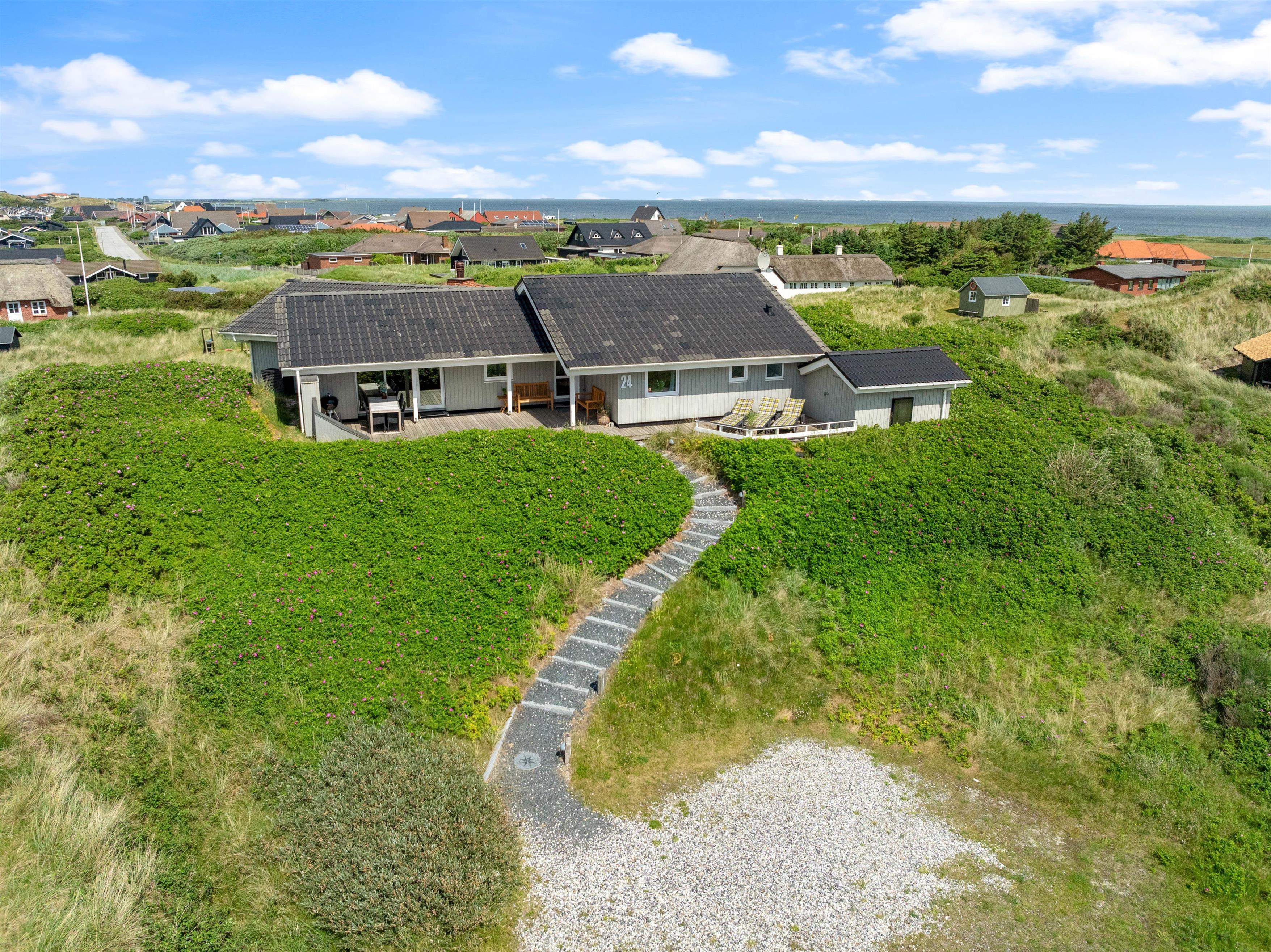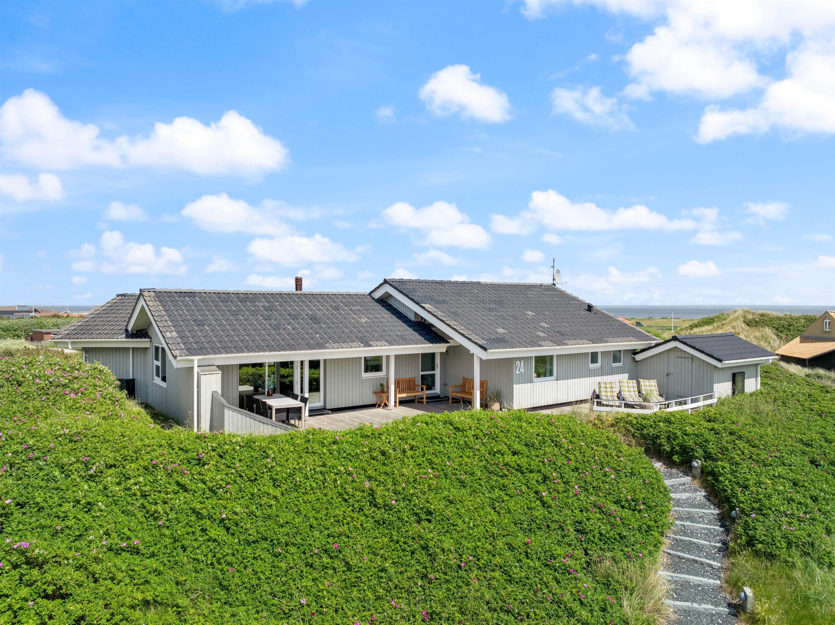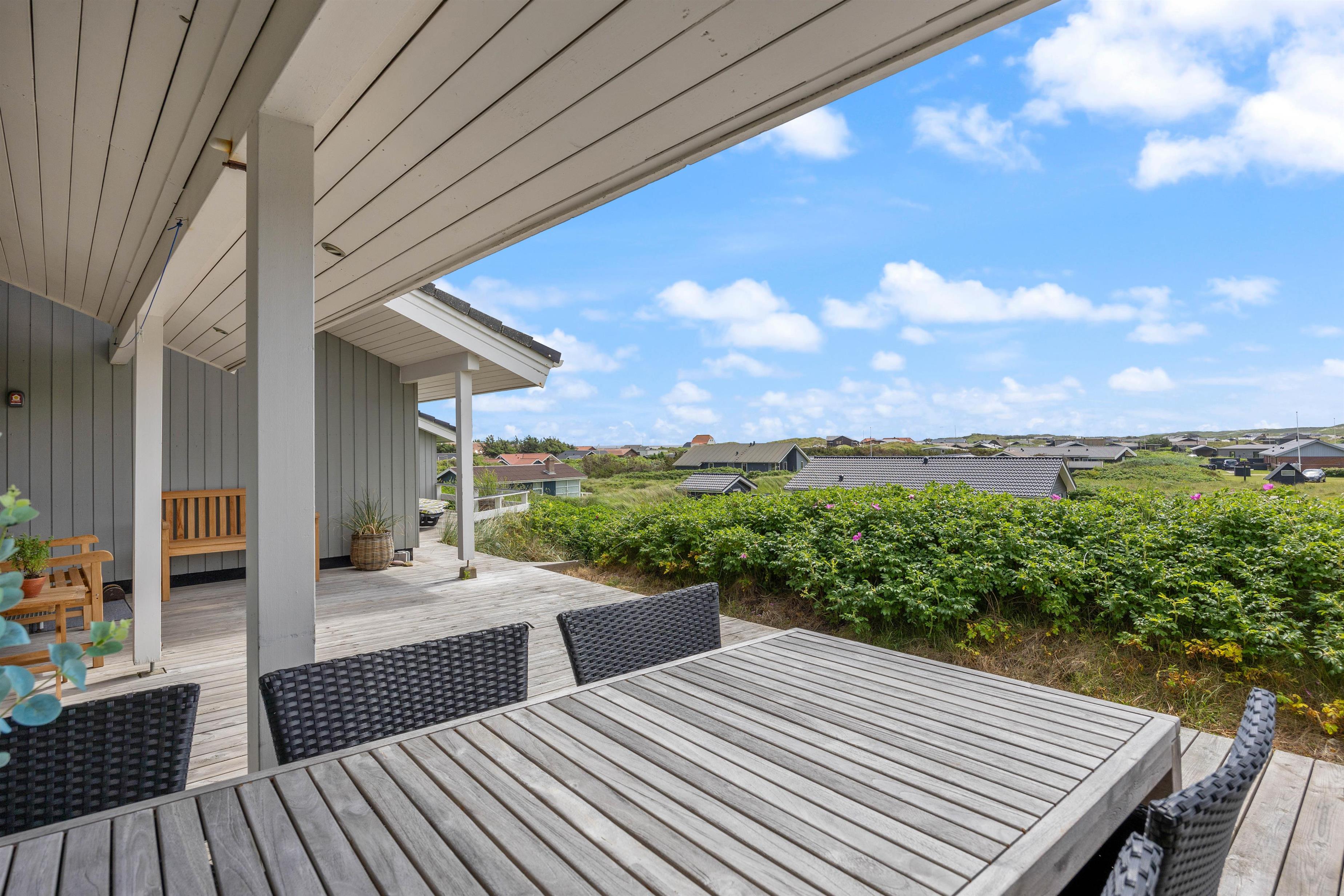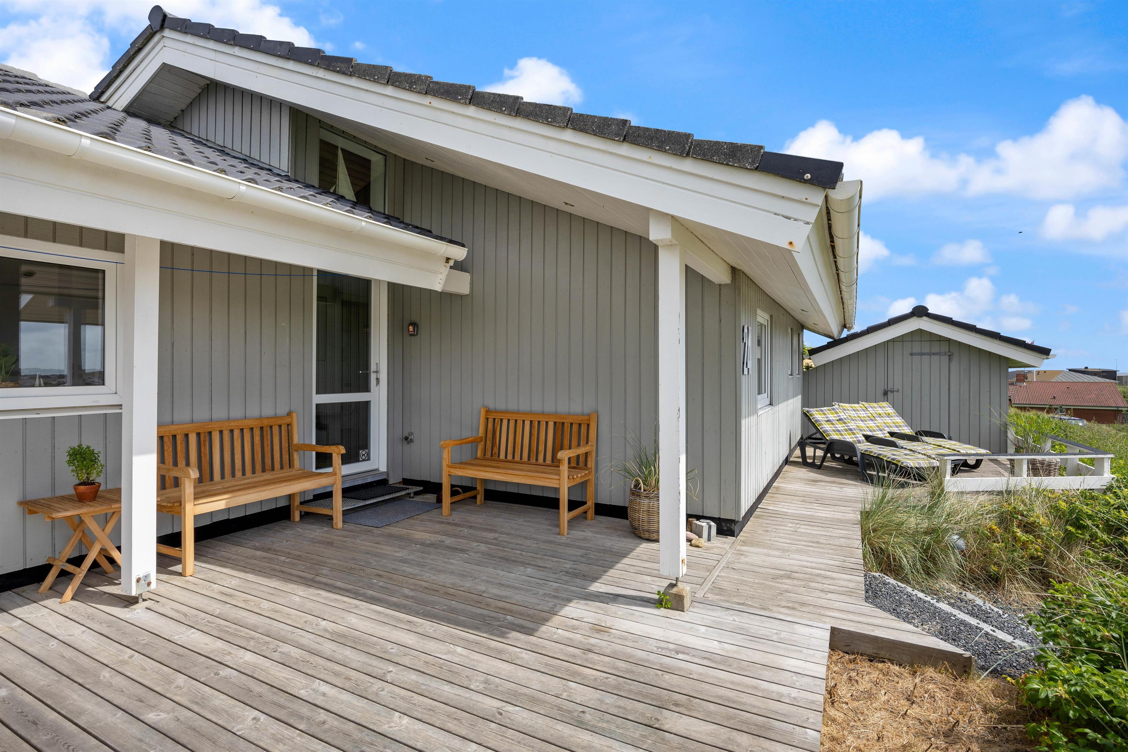 The holiday home's terrace has both covered and sheltered areas, allowing you to move with the sun throughout the day. Enjoy morning sunrises over the fjord and evening sunsets over the North Sea – both promise to be unique experiences. During the day, you can sunbathe in the loungers or retreat to the comfortable garden furniture with a cool drink. In the evening, gather together for a lovely barbecue and enjoy the tranquillity.
