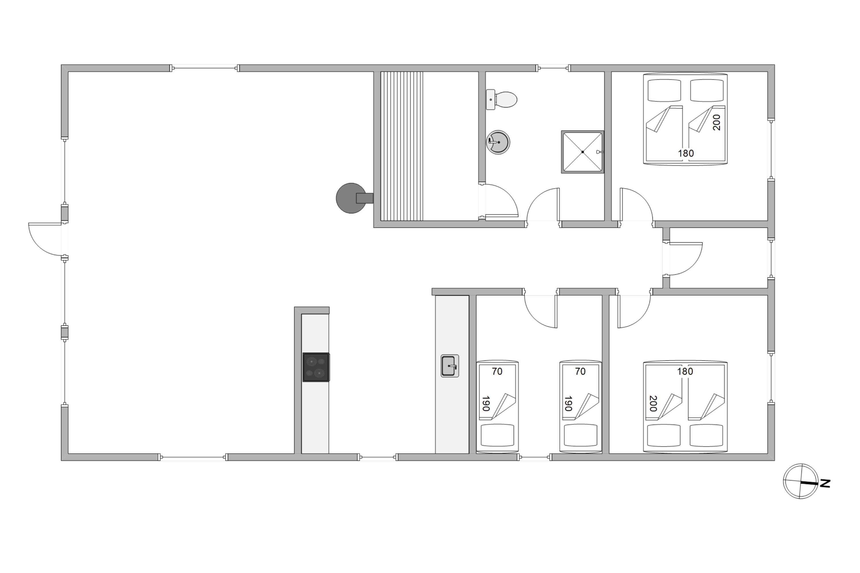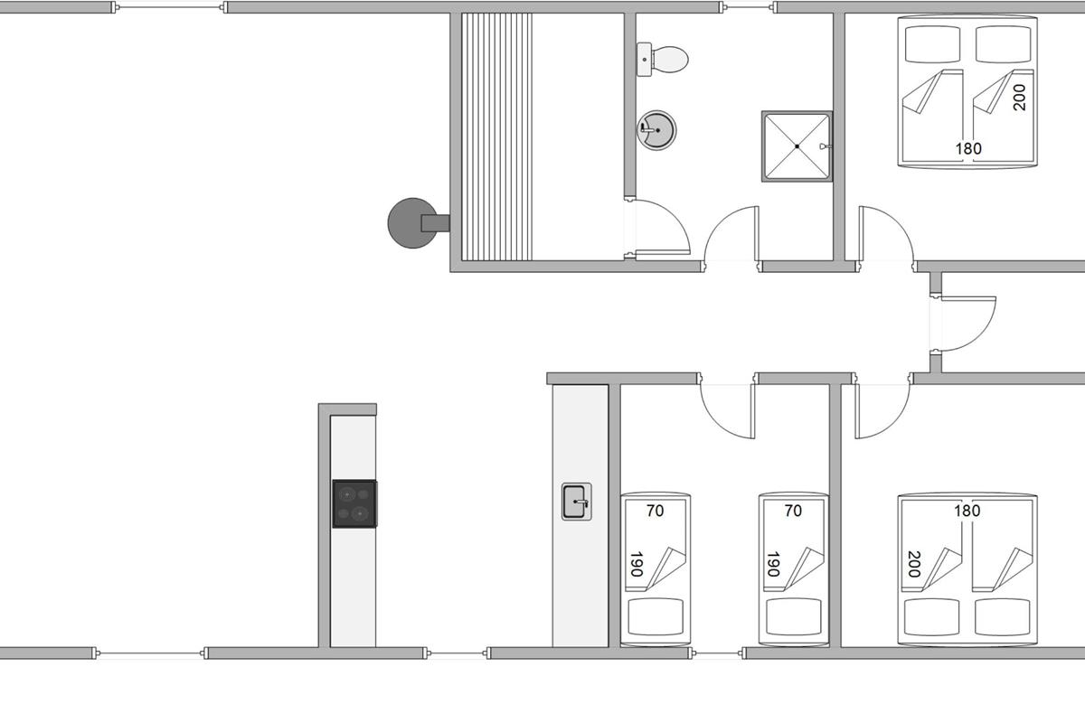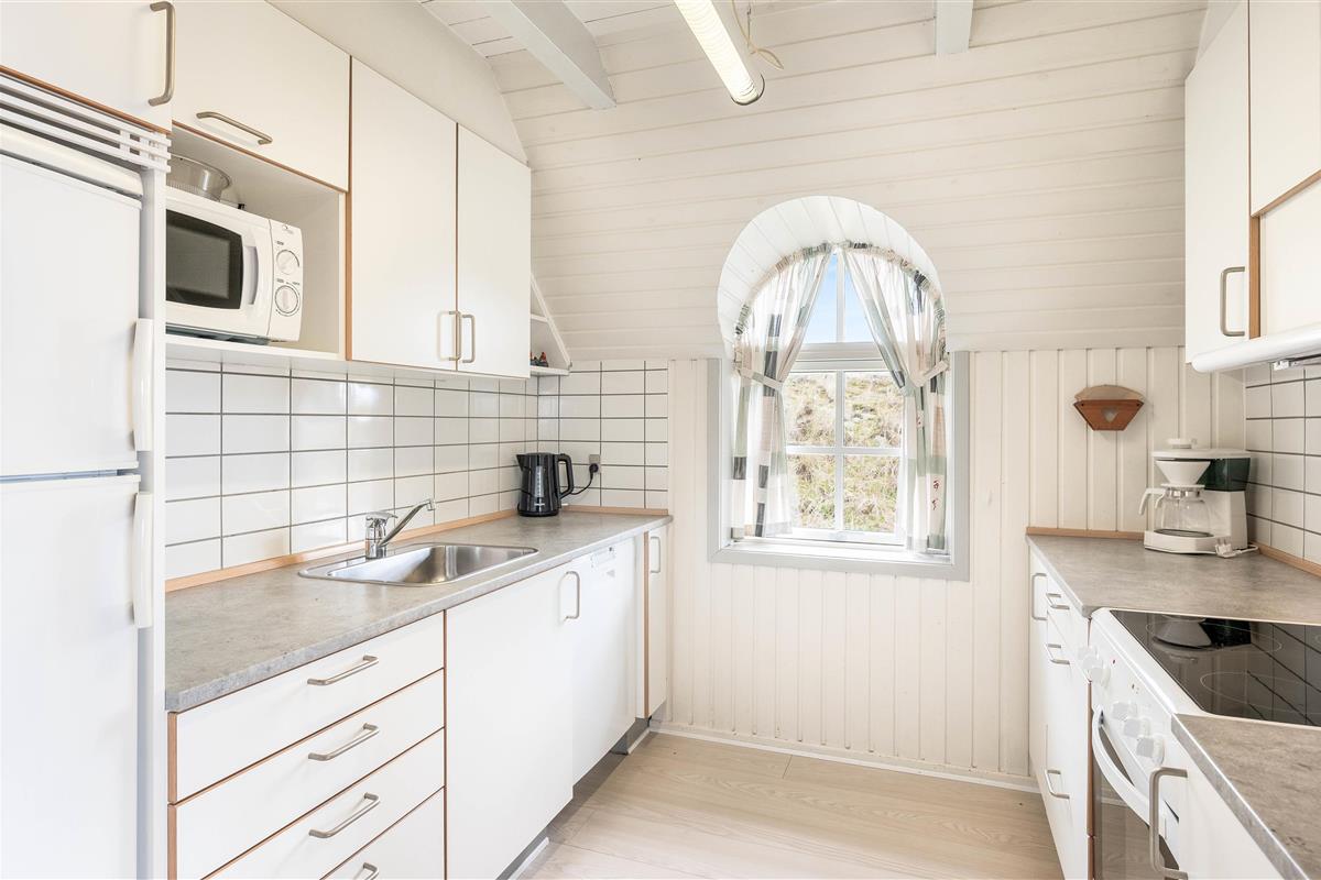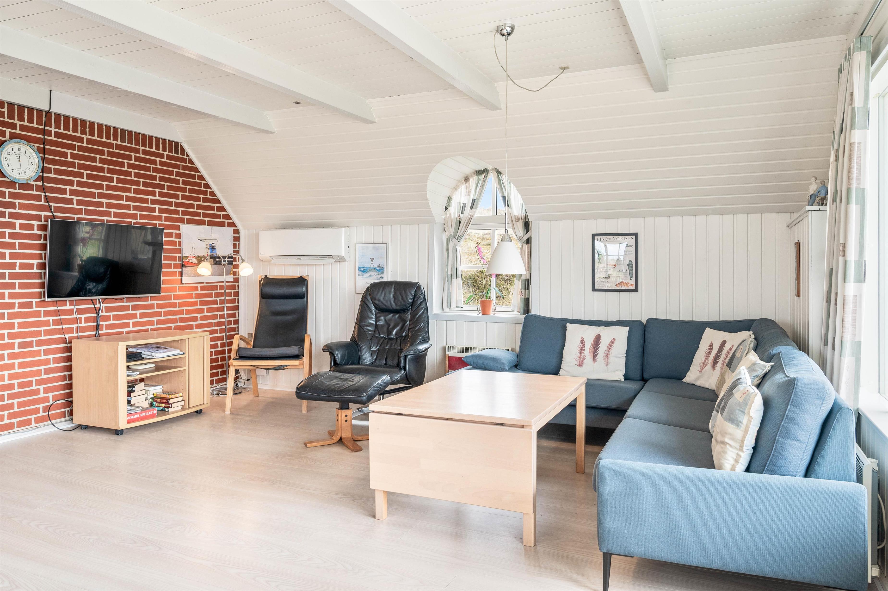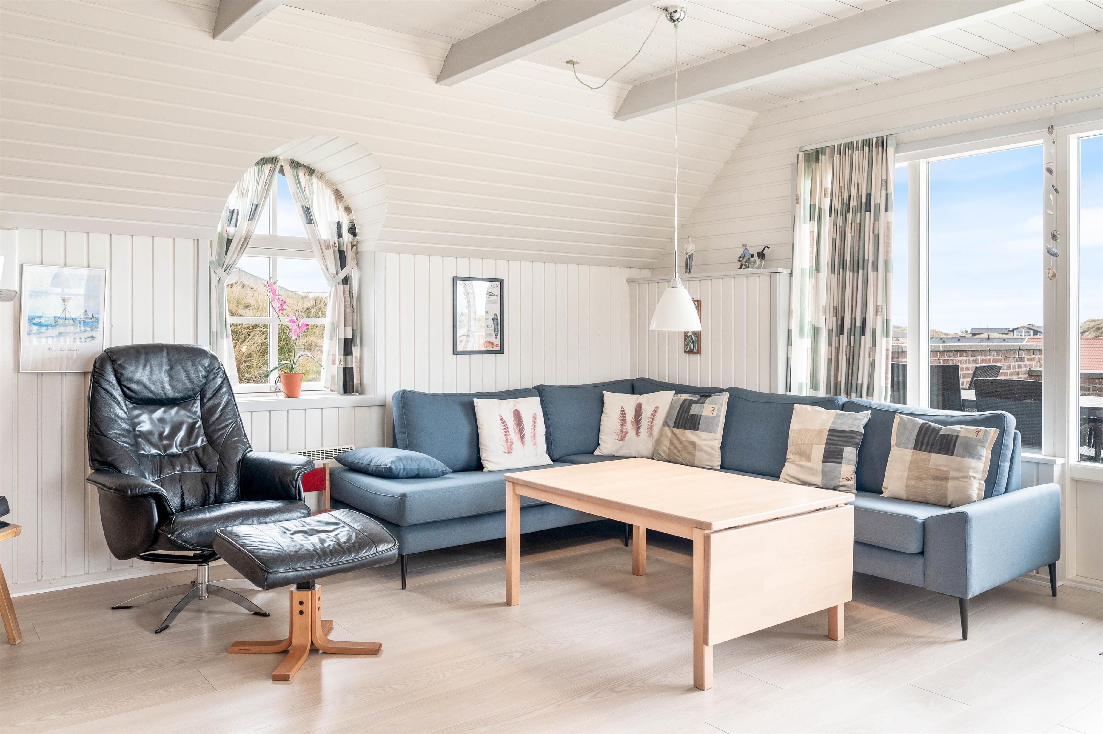 The holiday home features a south-facing terrace where you can enjoy the sunshine and fresh air during the day, and gather for a barbecue in the evening.