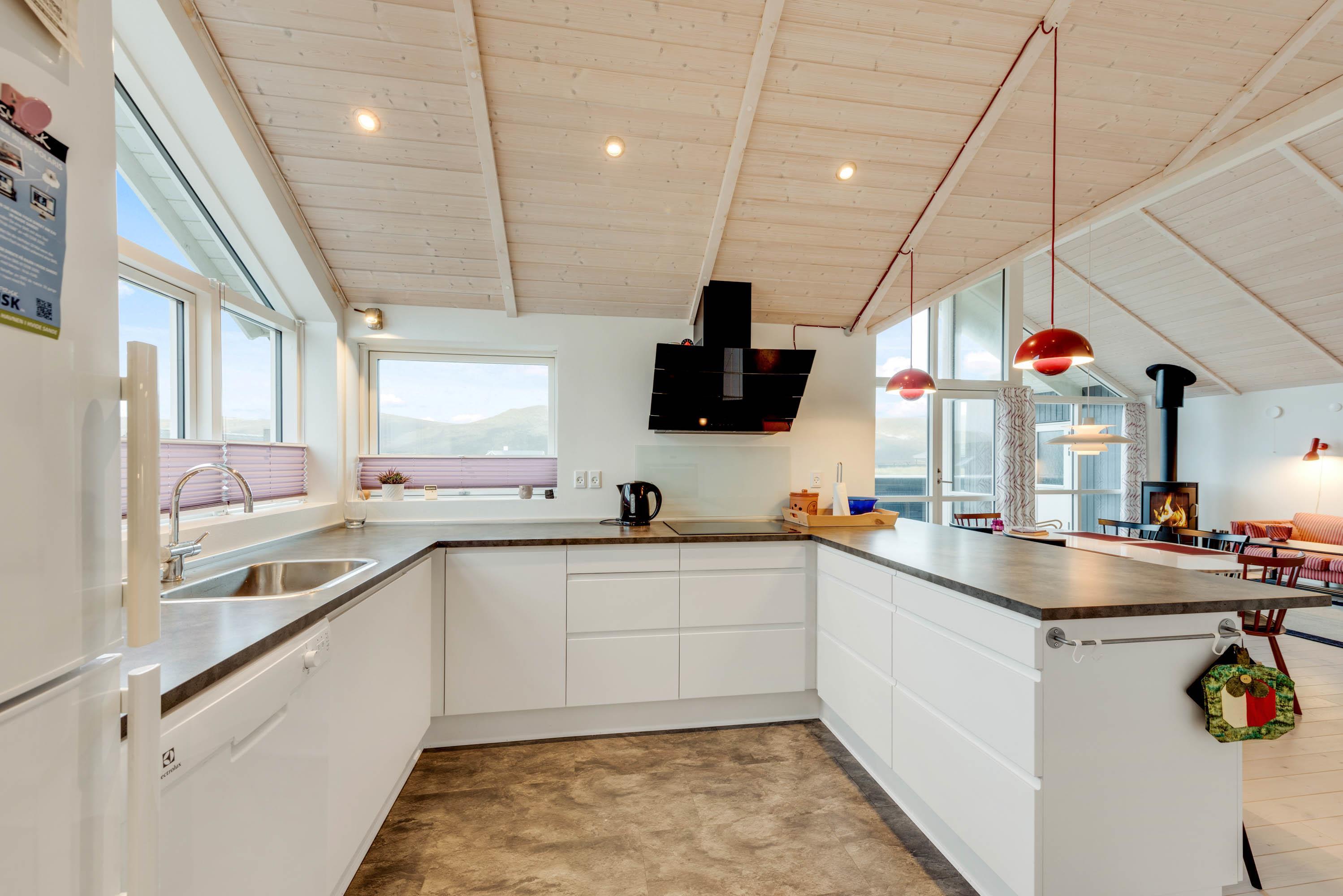 The open-plan kitchen and living room features large west-facing windows, providing fantastic natural light and unique views over the dune landscape. It's perfect for spending time together cooking, playing games or enjoying film nights.