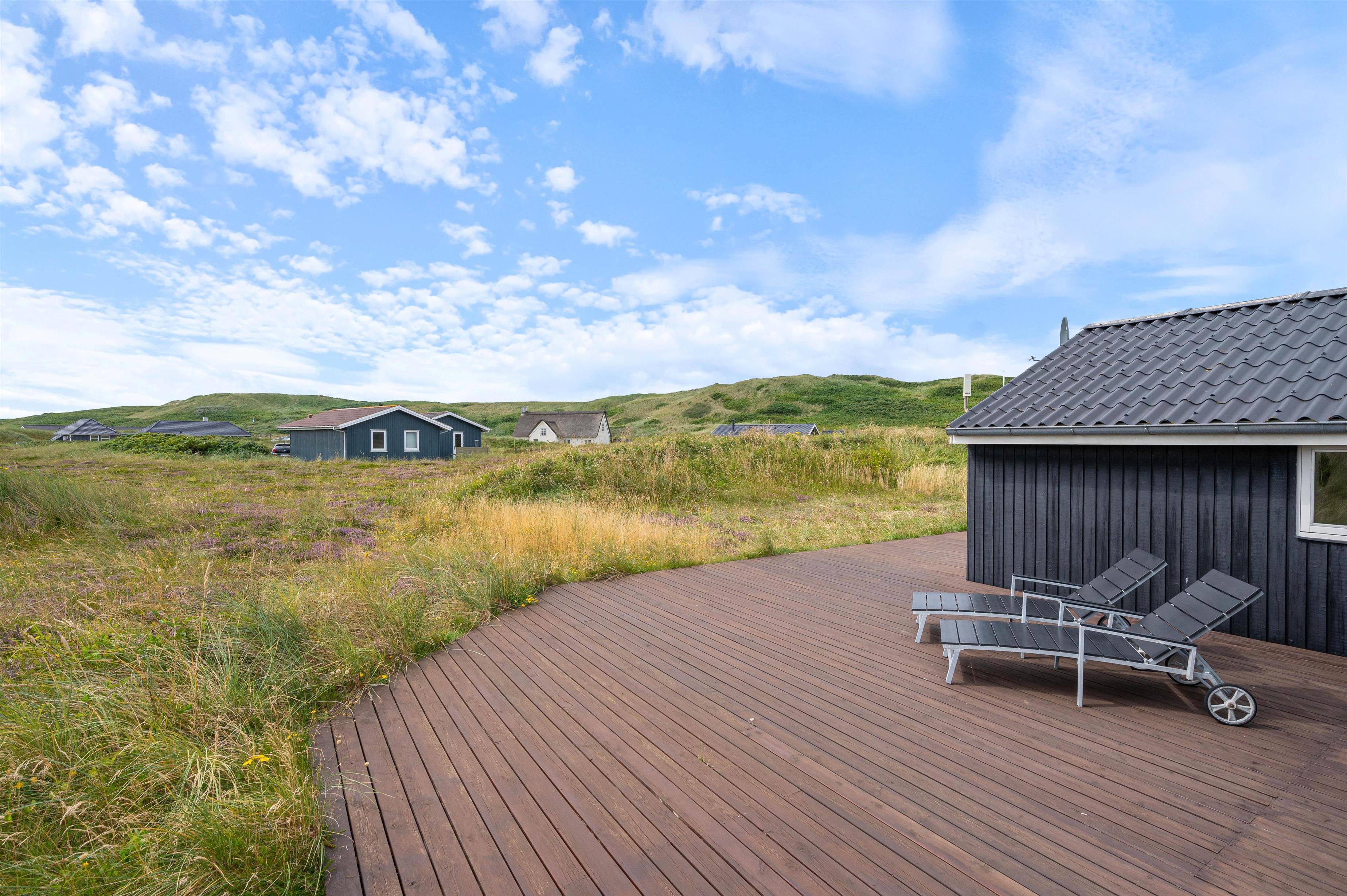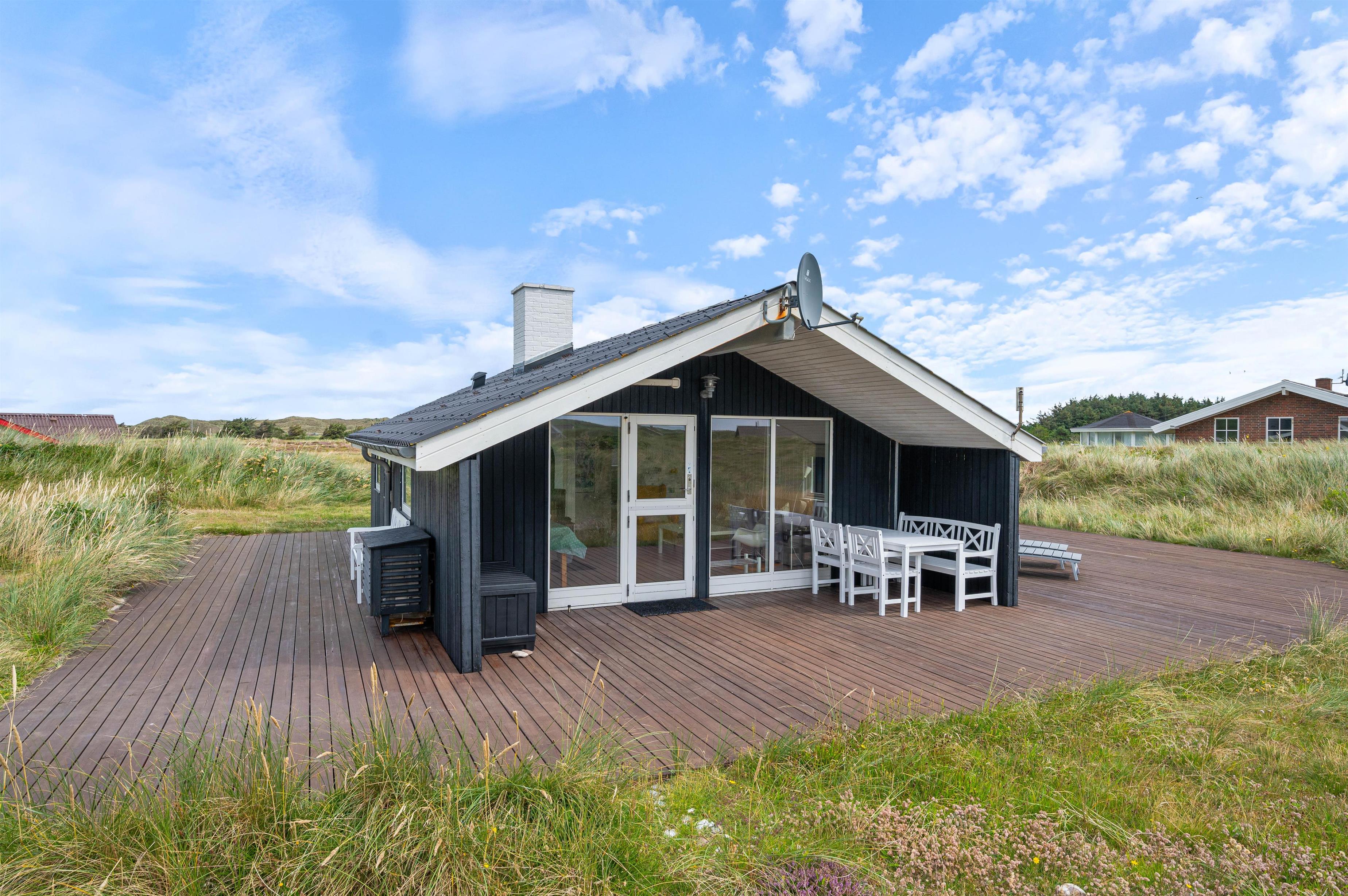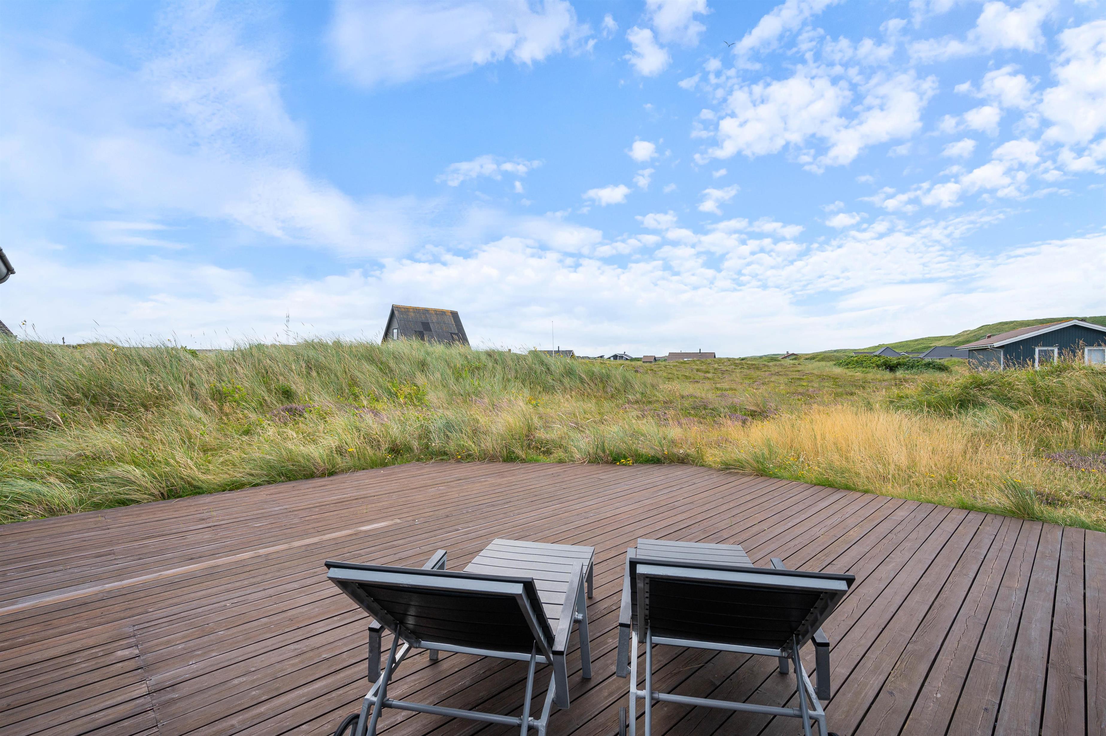 Enjoy your holiday with family and friends on the beautiful terrace. Here you can admire the stunning views across the heath and dunes while relaxing on comfortable garden furniture, enjoying a drink, and preparing delicious barbecued meat or freshly caught fish.