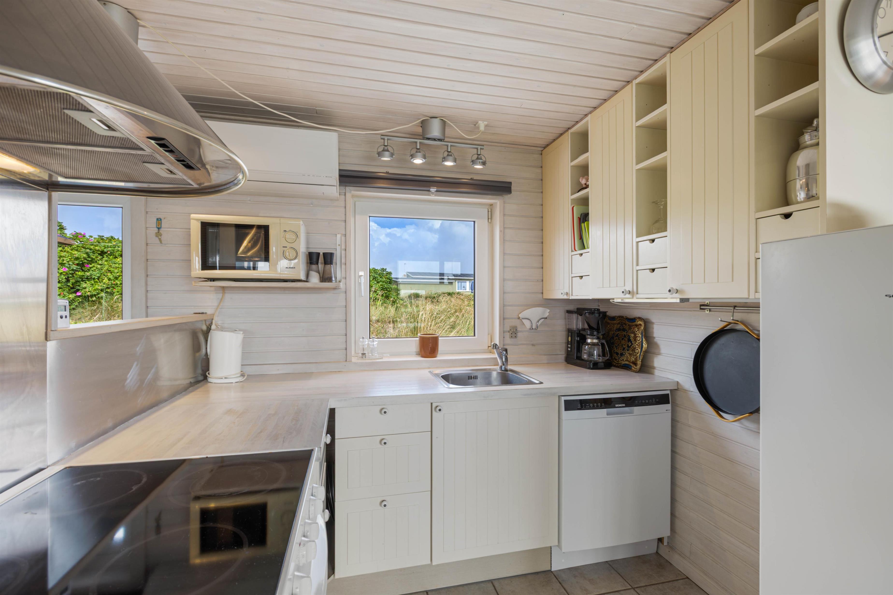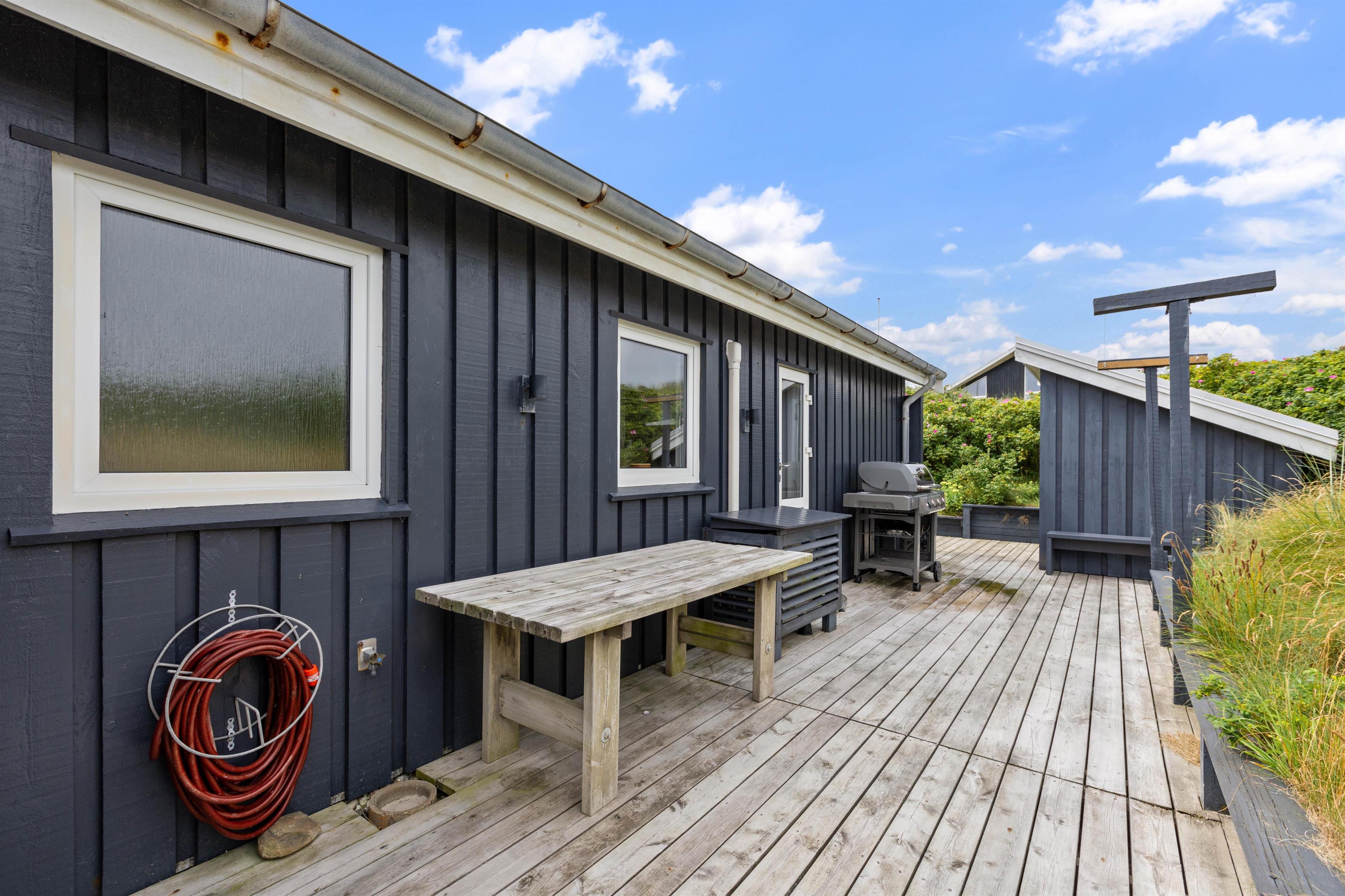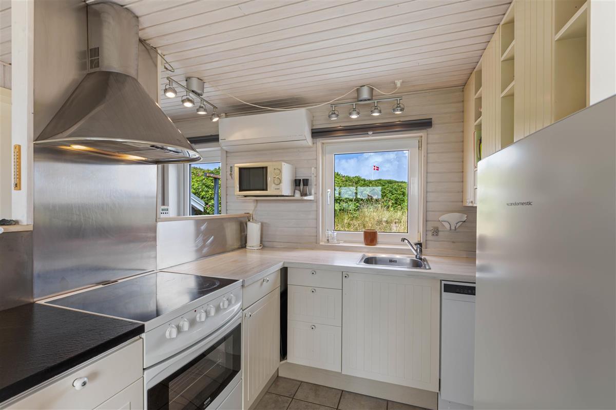 A beautiful and well-maintained summer house on a natural plot awaits you at Karen Brands Vej 205. Its excellent location makes it very popular - just 50 metres from the beach, and the charming coastal town of Hvide Sande is within easy walking distance. The holiday home is suitable for 6 people and the family dog, offering you a relaxing holiday on the Danish west coast. A special highlight is the outdoor shower, available from April to November, perfect for cooling off on warm summer days.