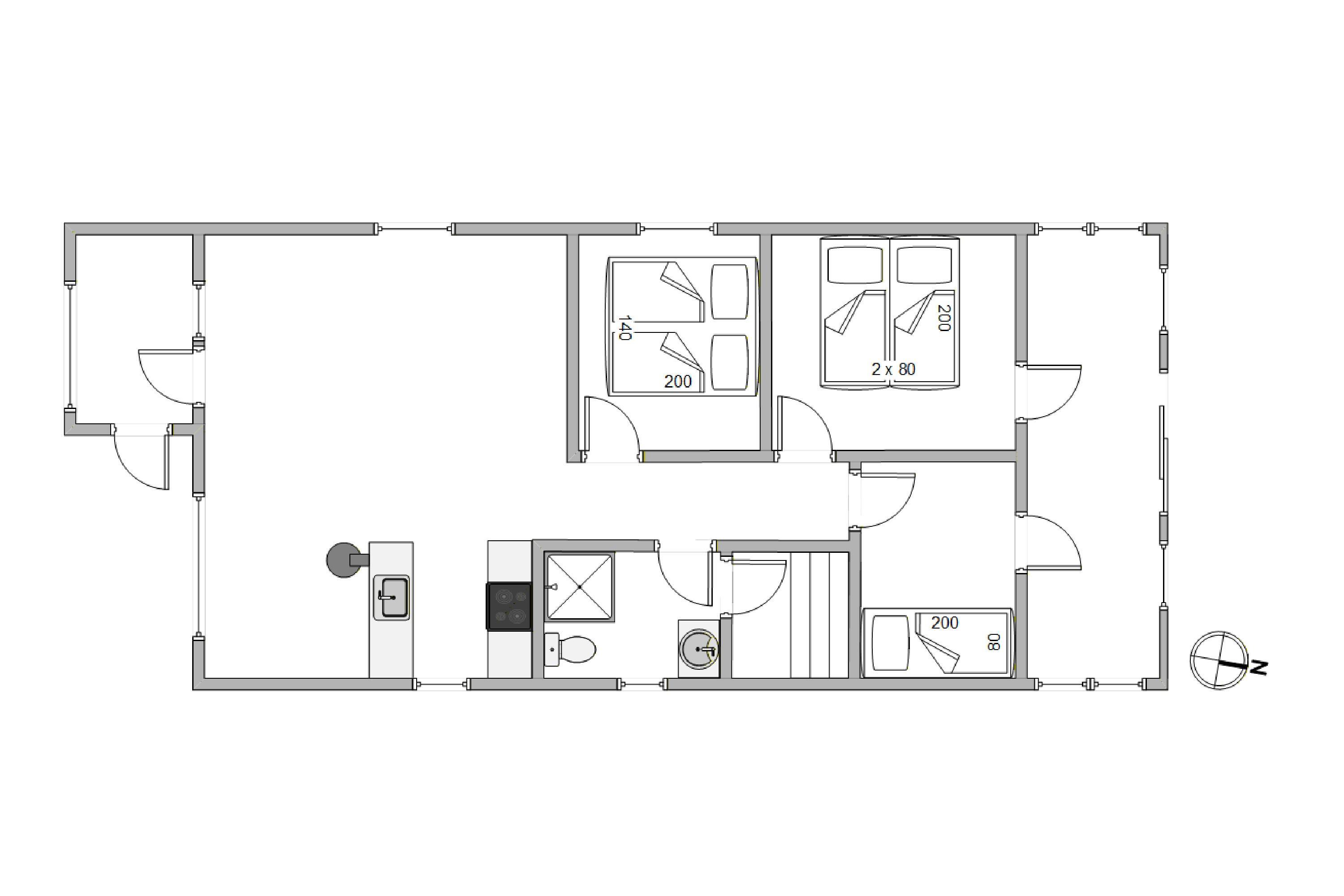 This charming and comfortable holiday home offers sleeping accommodation for five people across three bedrooms. Two bedrooms feature double beds, while the third has a single bed. The centrally-located kitchen comes equipped with a dishwasher, microwave, and a 52-litre freezer.
