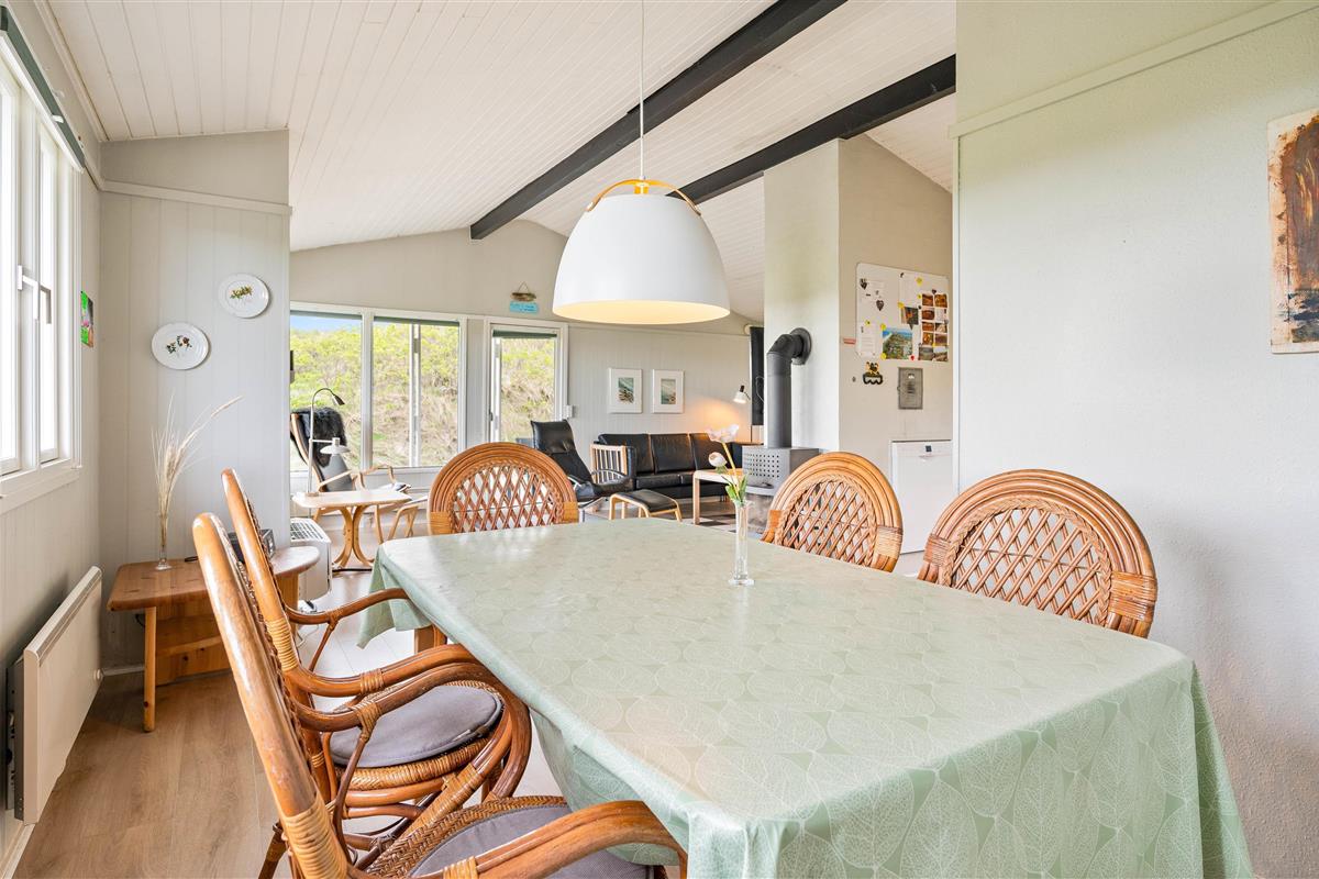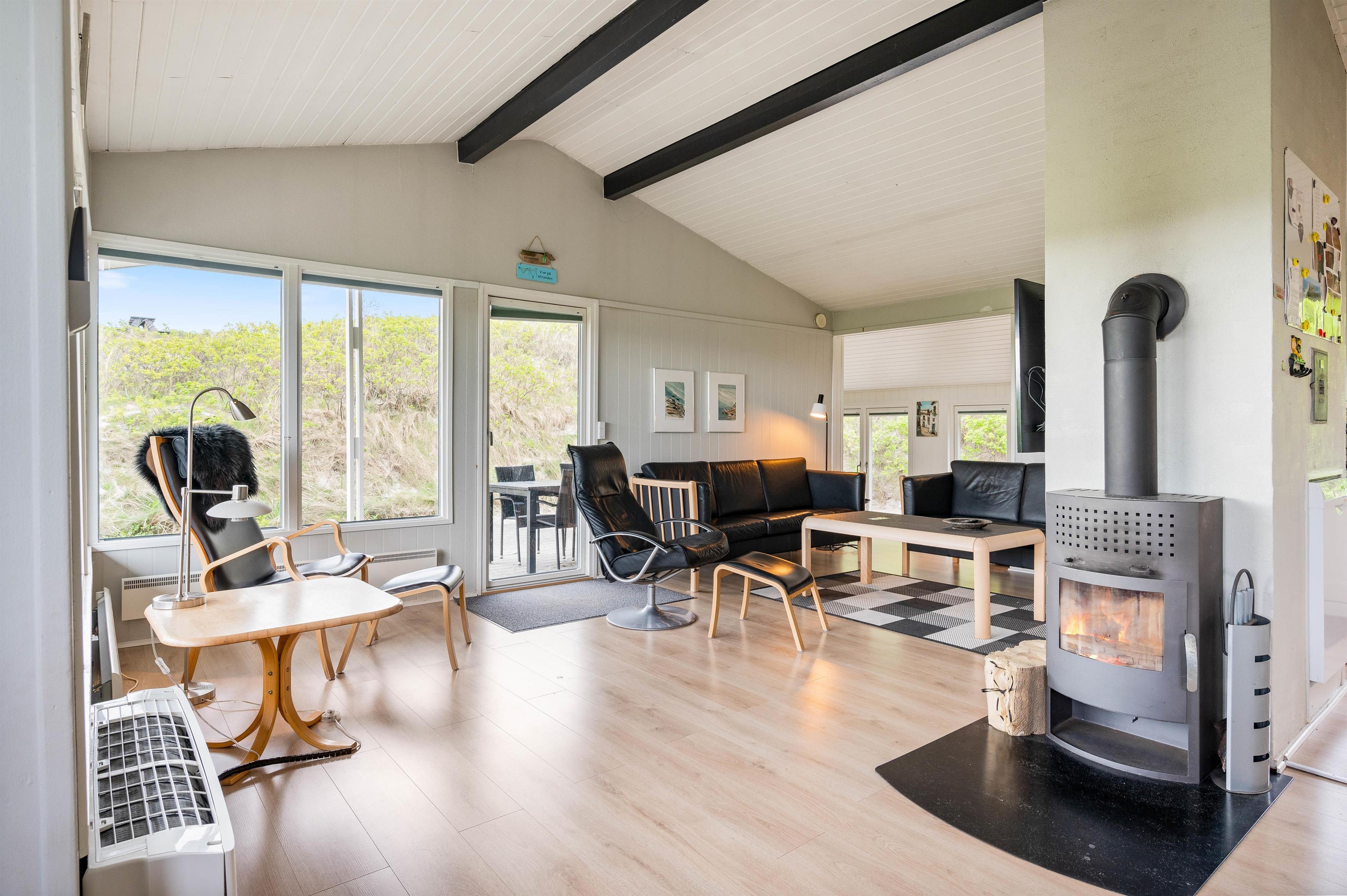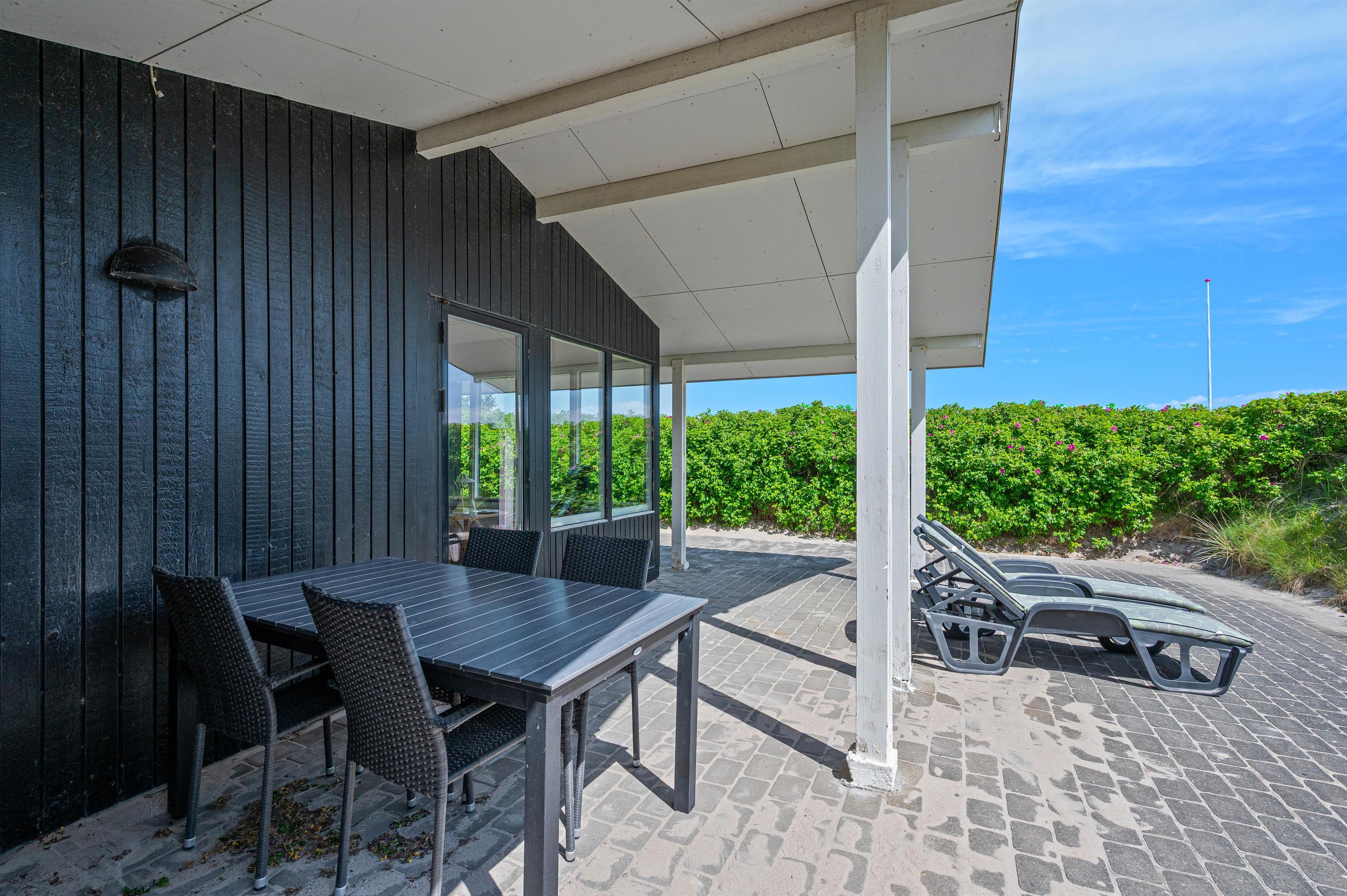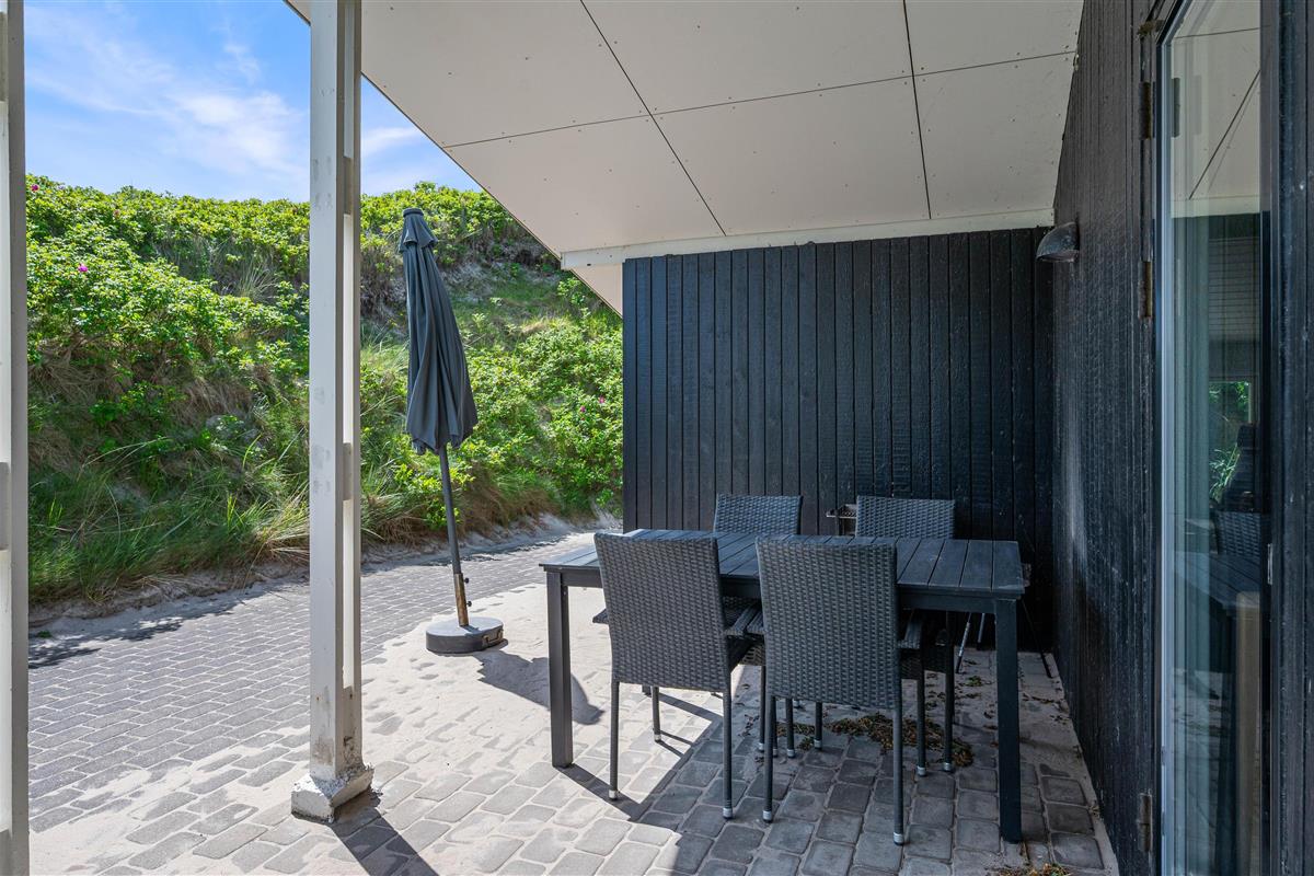 The holiday home sits within beautiful natural grounds where you can spend undisturbed days and evenings. It's literally a stone's throw from the North Sea and its miles of sandy beach, with fantastic panoramic views over Ringkøbing Fjord. The sheltered terrace is partially covered - perfect for the occasional shower. Garden furniture and sun loungers are provided for your relaxation. Don't feel like cooking? Simply fire up the barbecue and enjoy dining outdoors.