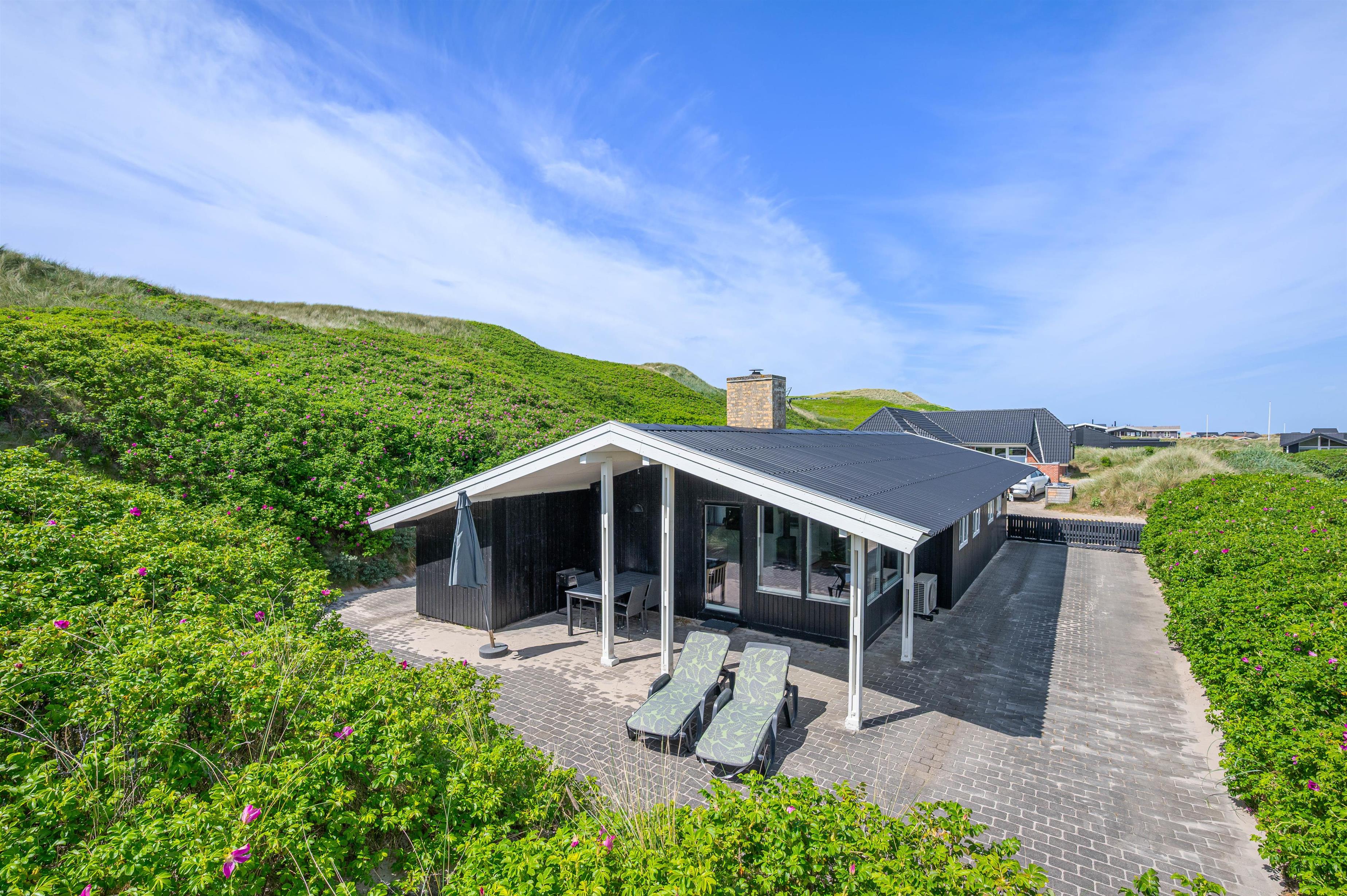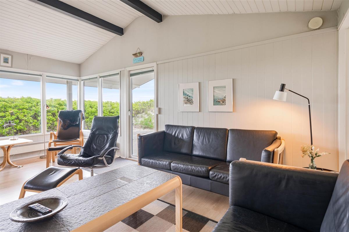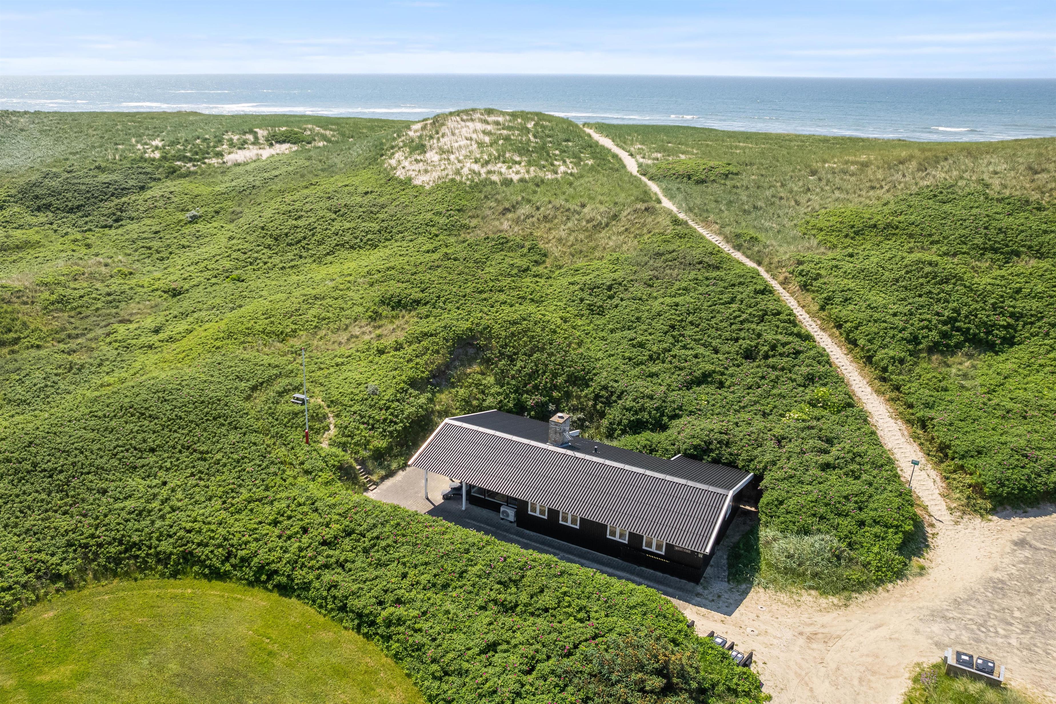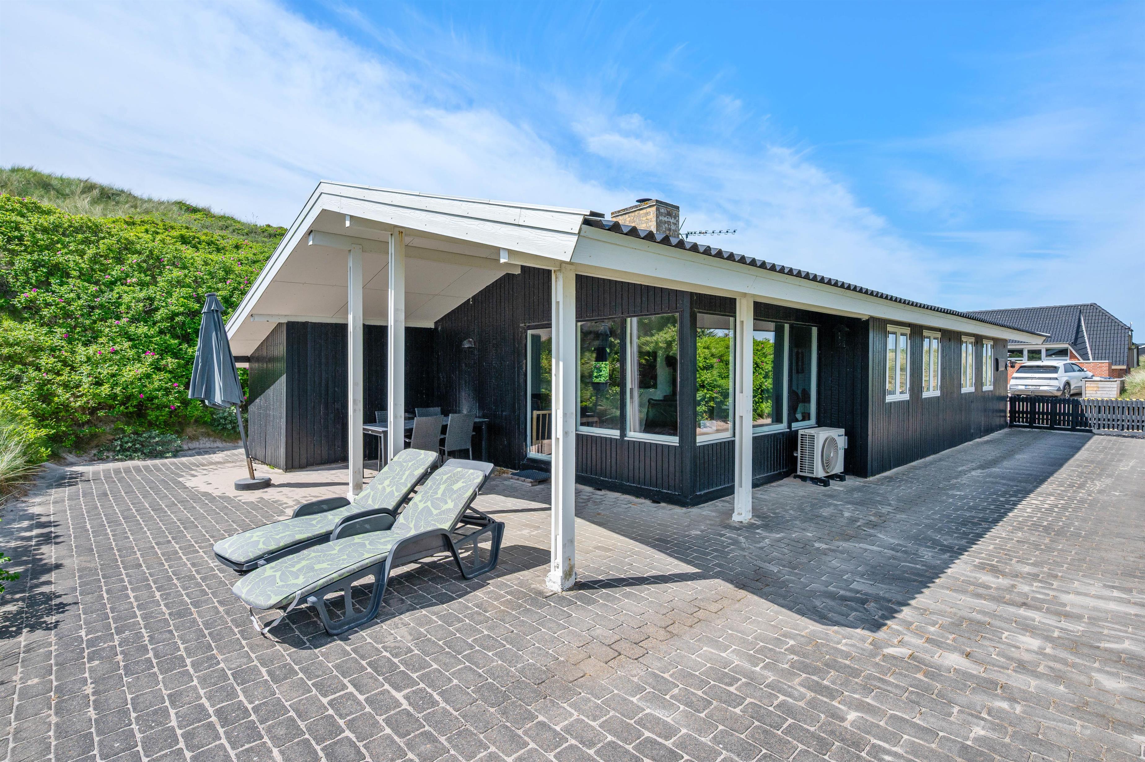 The holiday home sits within beautiful natural grounds where you can spend undisturbed days and evenings. It's literally a stone's throw from the North Sea and its miles of sandy beach, with fantastic panoramic views over Ringkøbing Fjord. The sheltered terrace is partially covered - perfect for the occasional shower. Garden furniture and sun loungers are provided for your relaxation. Don't feel like cooking? Simply fire up the barbecue and enjoy dining outdoors.