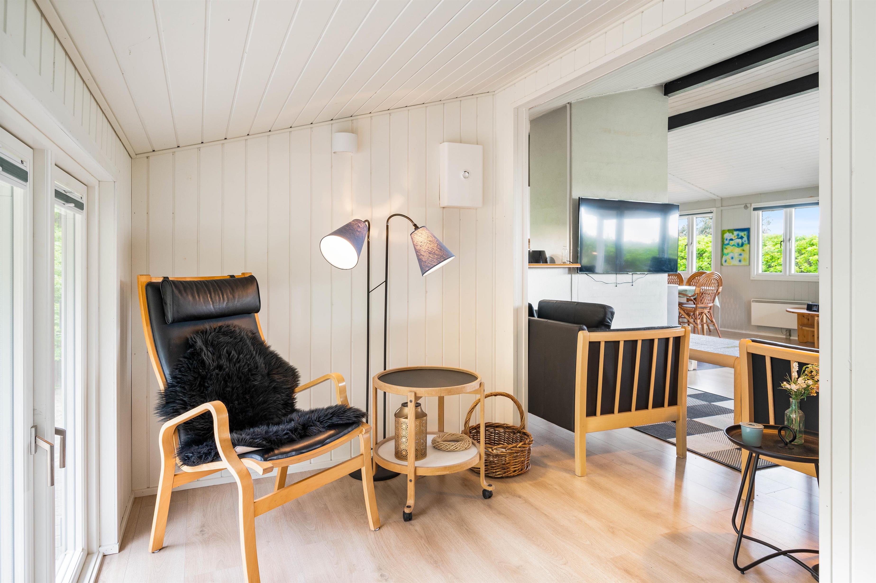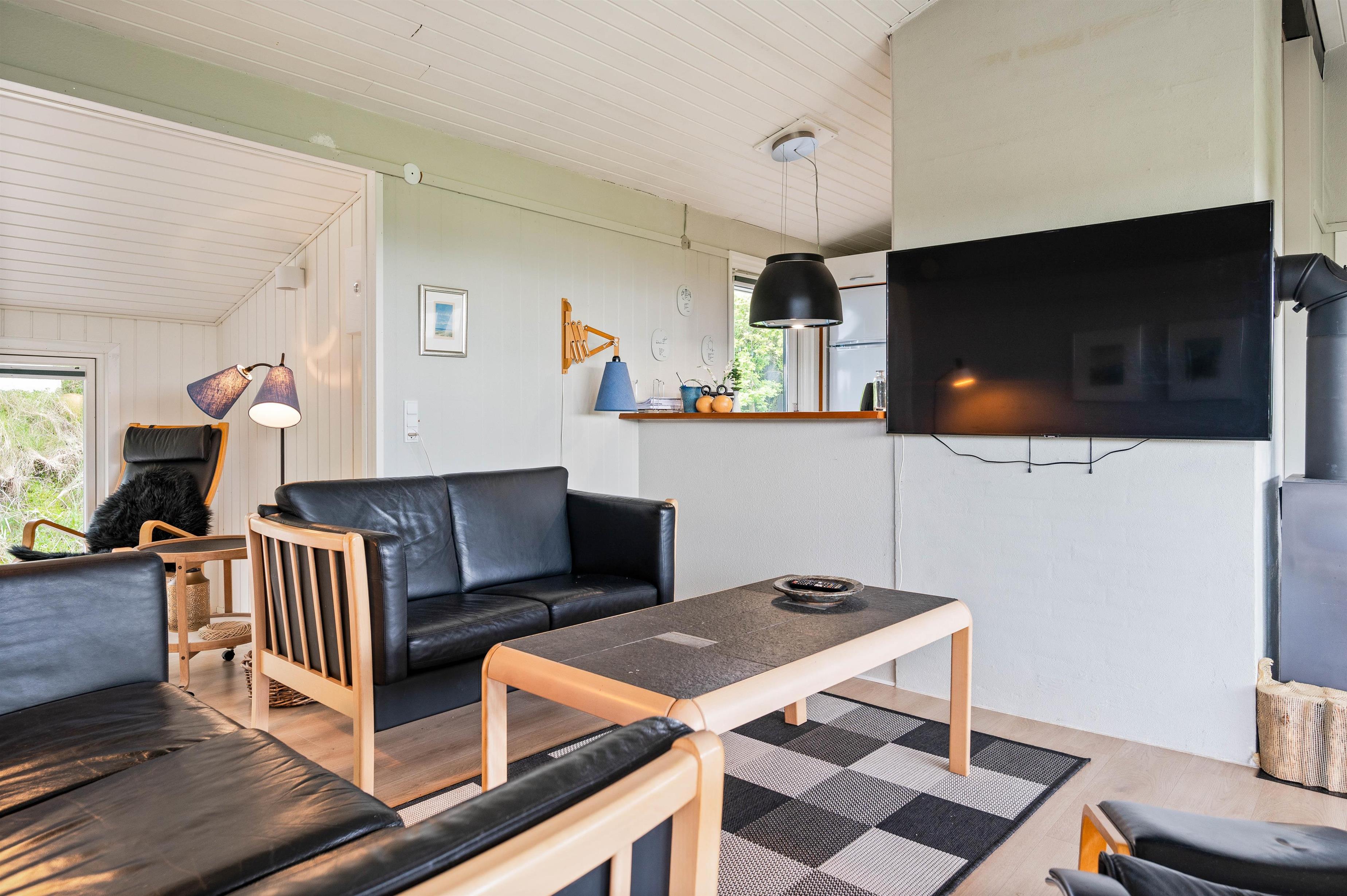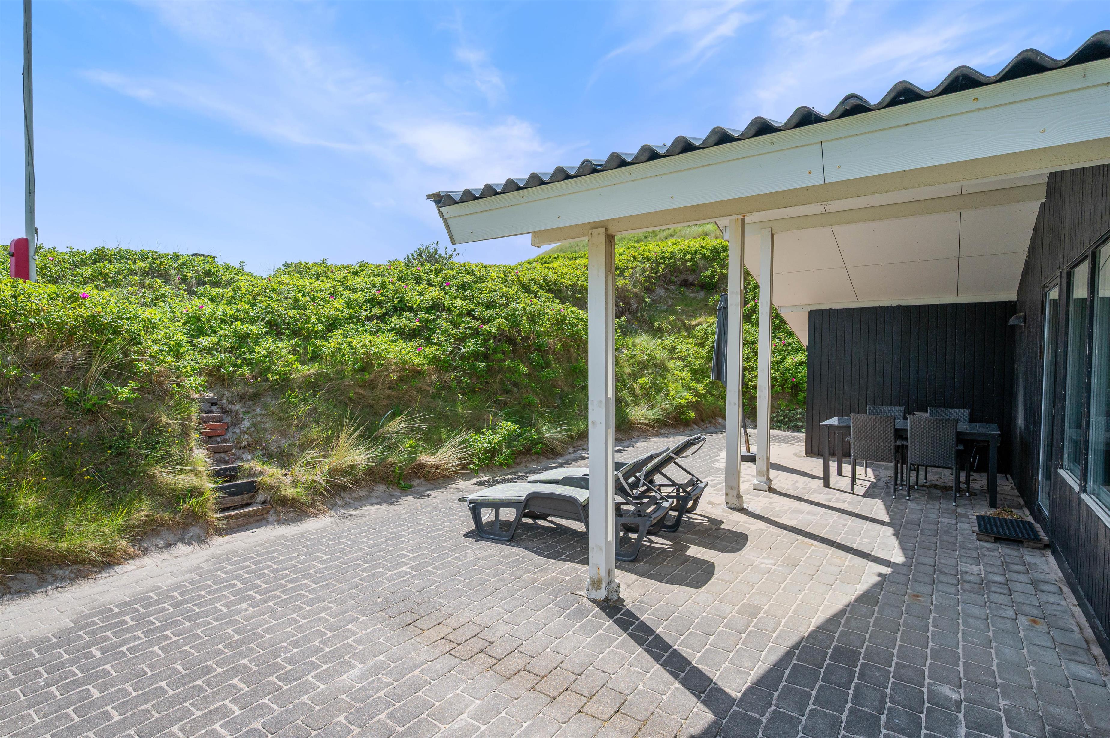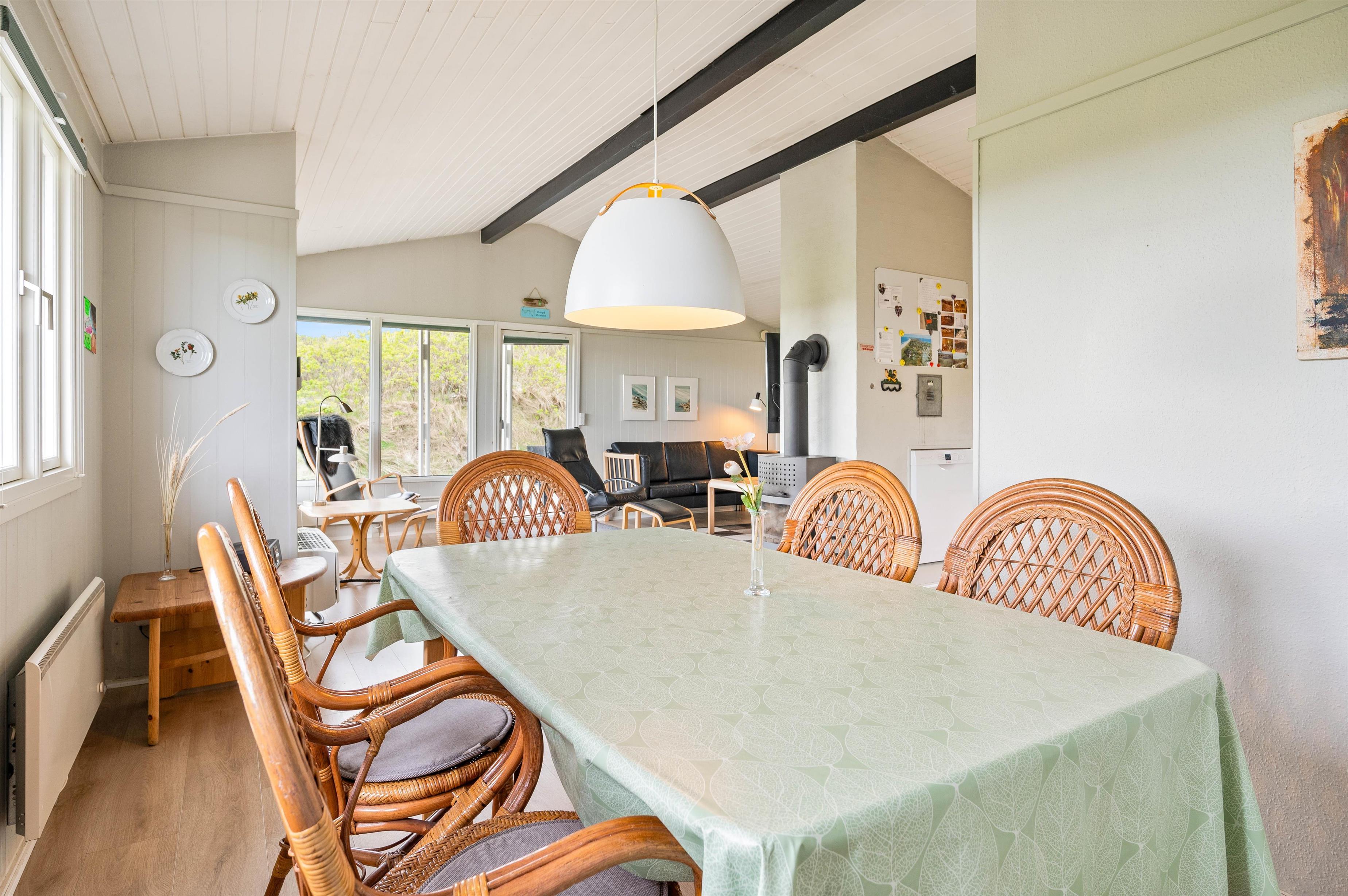 The holiday home sits within beautiful natural grounds where you can spend undisturbed days and evenings. It's literally a stone's throw from the North Sea and its miles of sandy beach, with fantastic panoramic views over Ringkøbing Fjord. The sheltered terrace is partially covered - perfect for the occasional shower. Garden furniture and sun loungers are provided for your relaxation. Don't feel like cooking? Simply fire up the barbecue and enjoy dining outdoors.