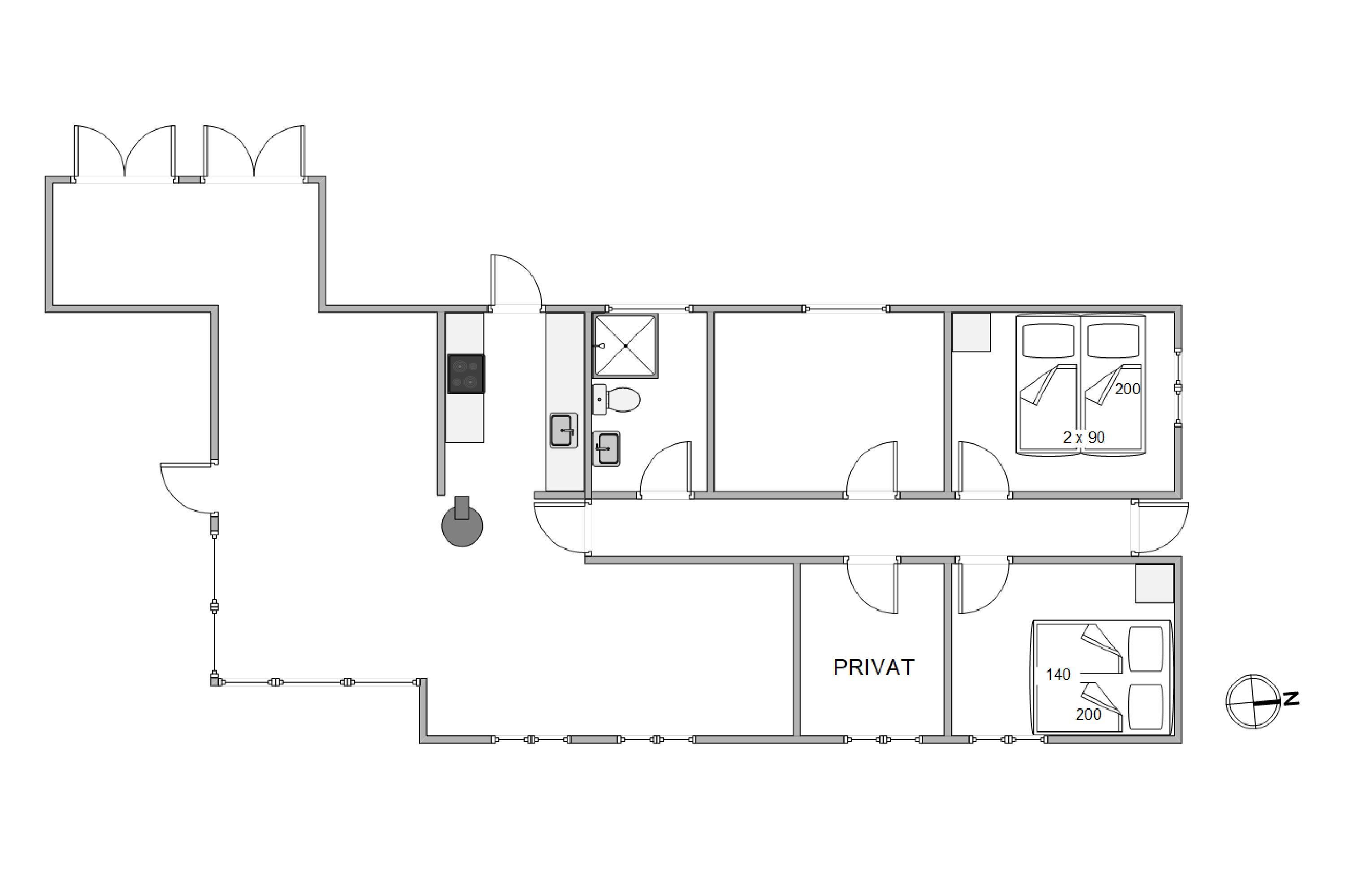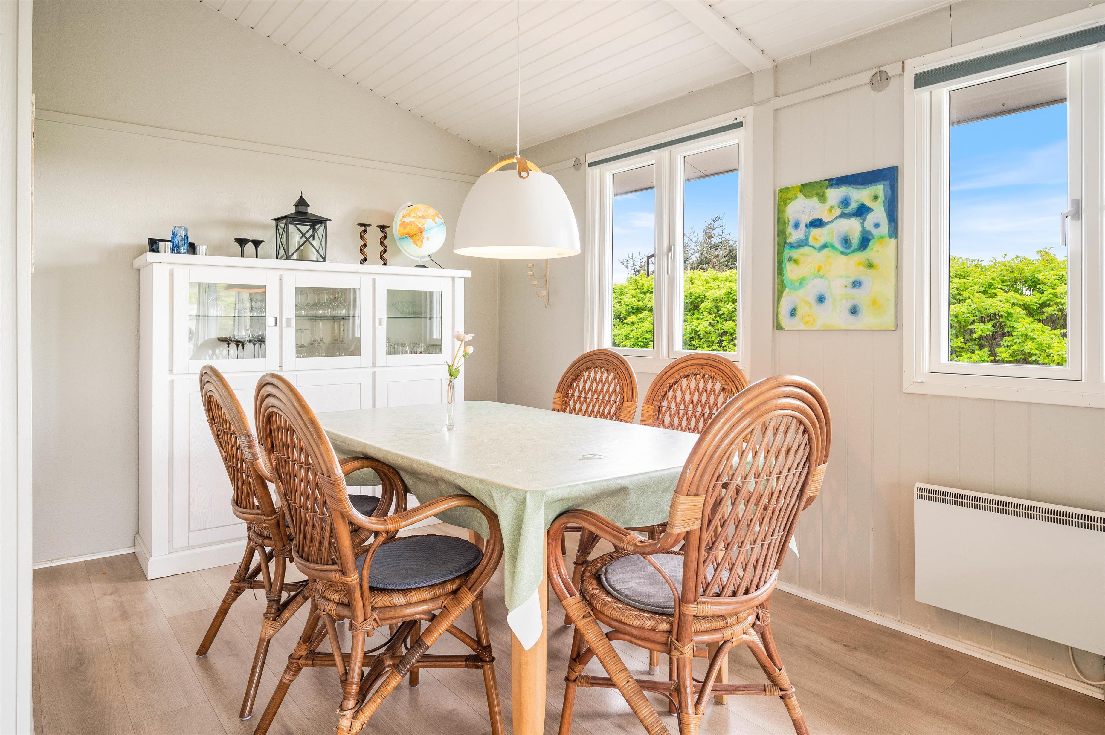 This 80-square-metre holiday home features an open-plan living area, combining the living room, dining area and kitchen in one space. Though traditional in style, it doesn't lack modern conveniences. The kitchen is fully equipped with everything needed for preparing perfect evening meals, including the practical addition of a dishwasher - leaving you plenty of time for an evening stroll to the beach after dinner.