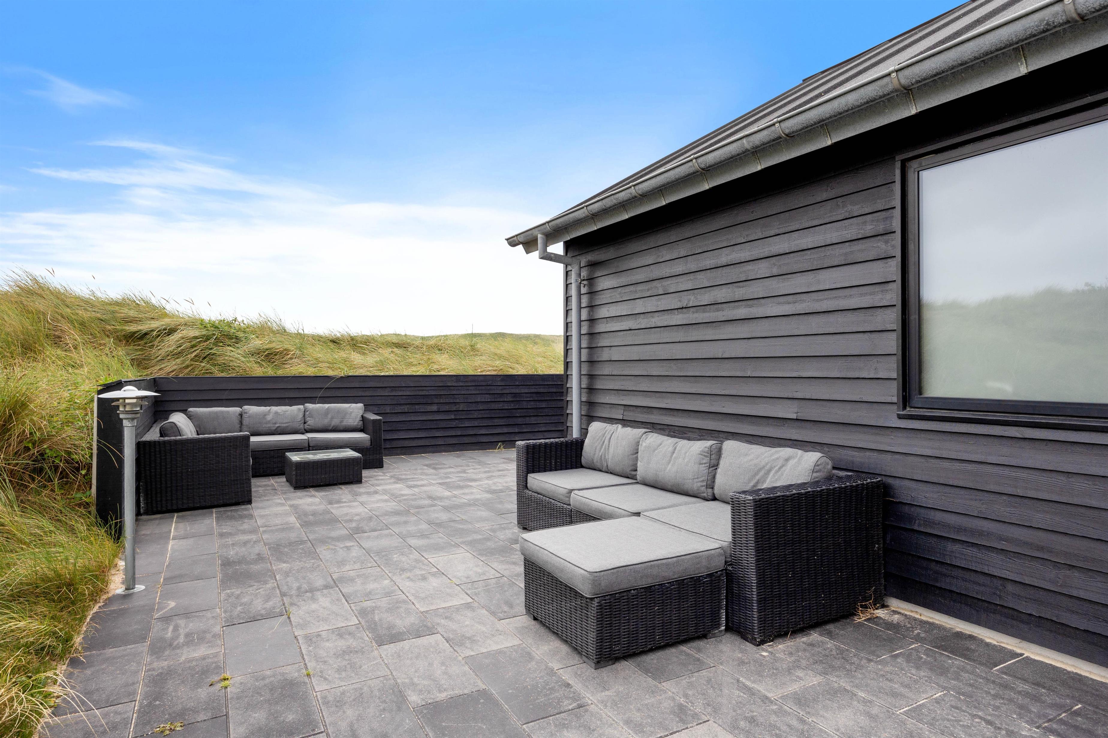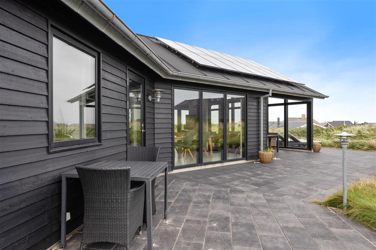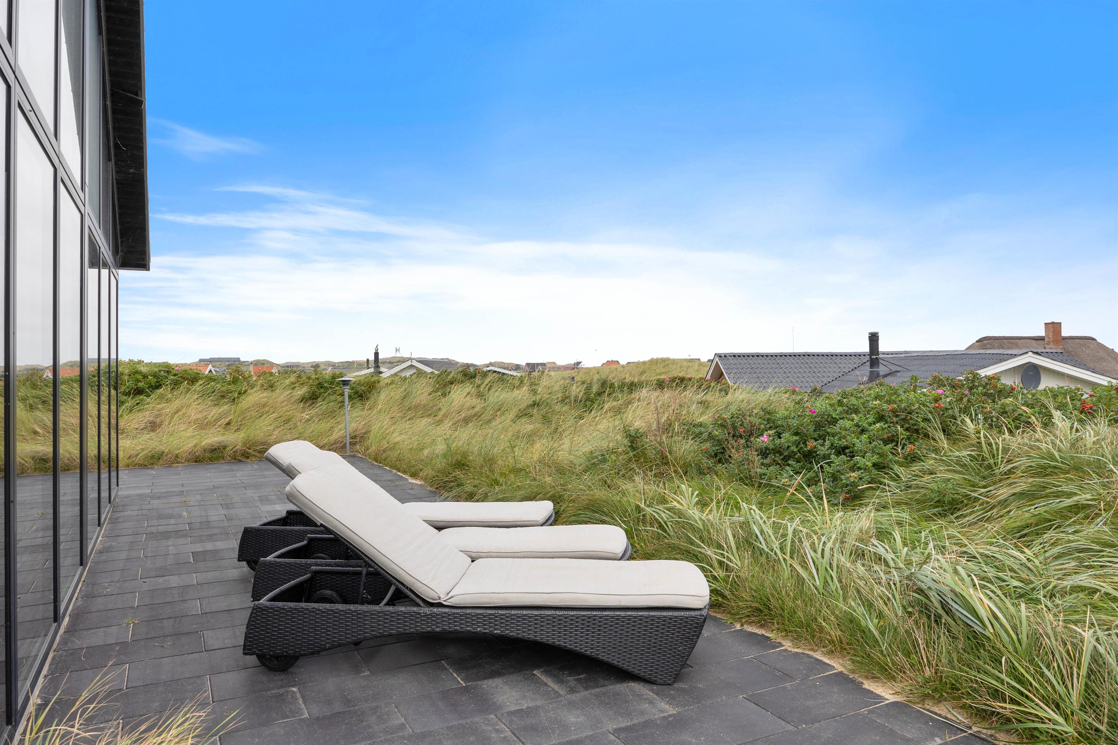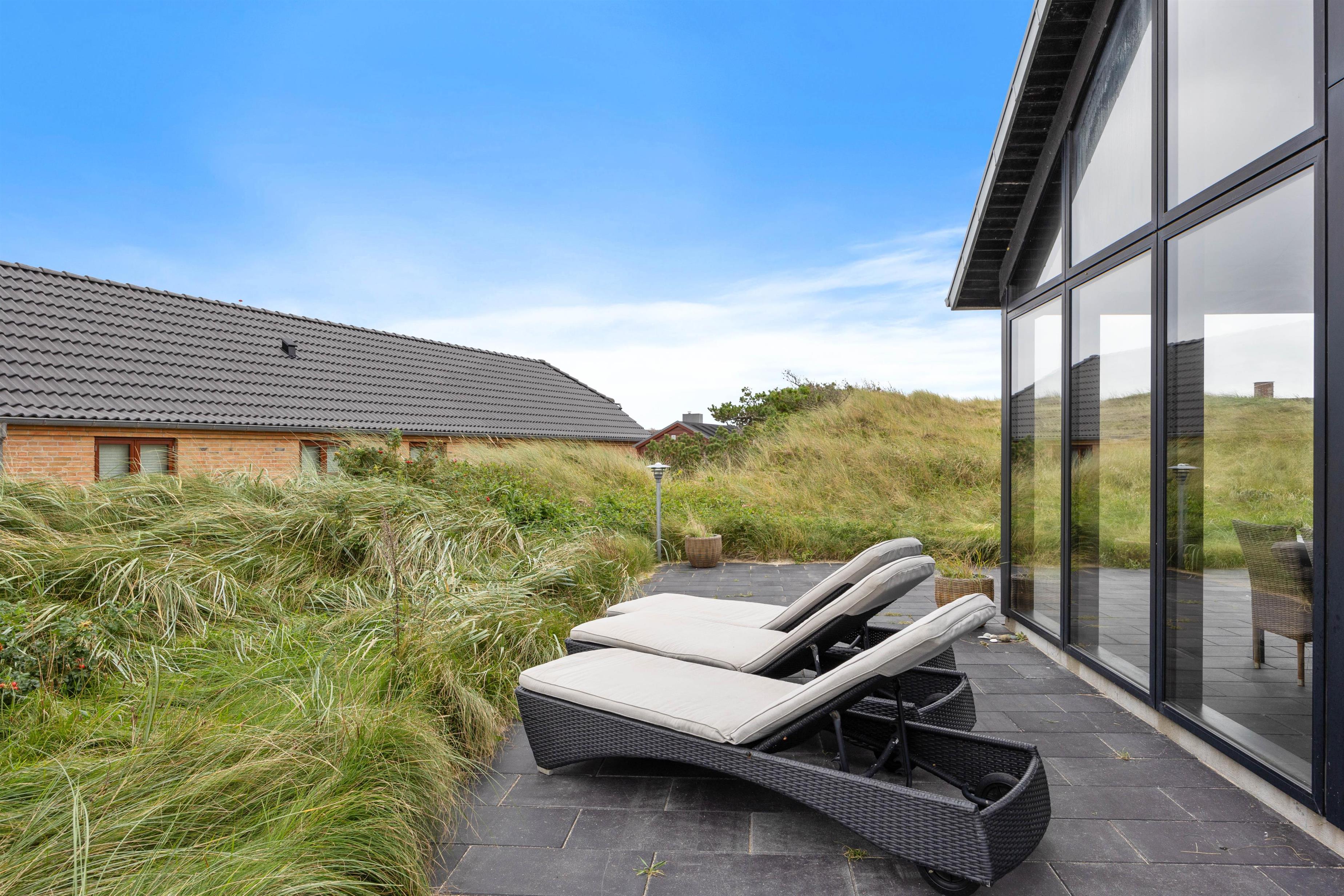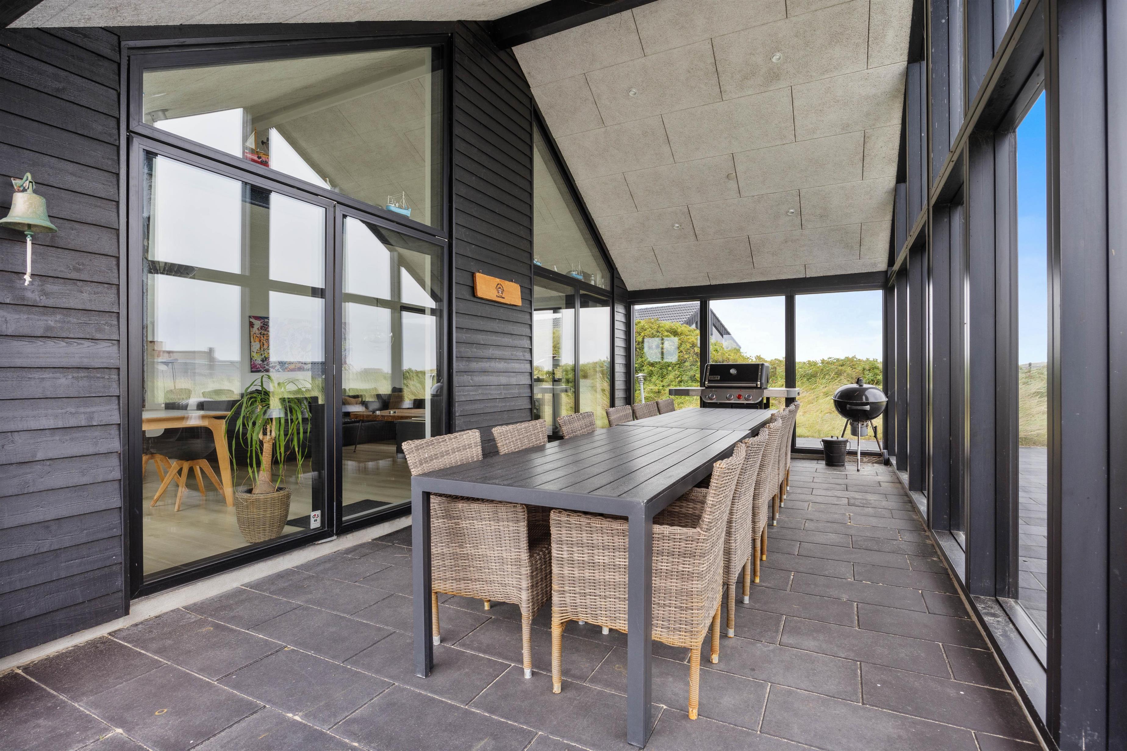 The glazed and covered section of the terrace is perfect for barbecues and long evenings outdoors. Around the holiday home, you'll find comfortable lounge furniture positioned to take advantage of different wind directions.
