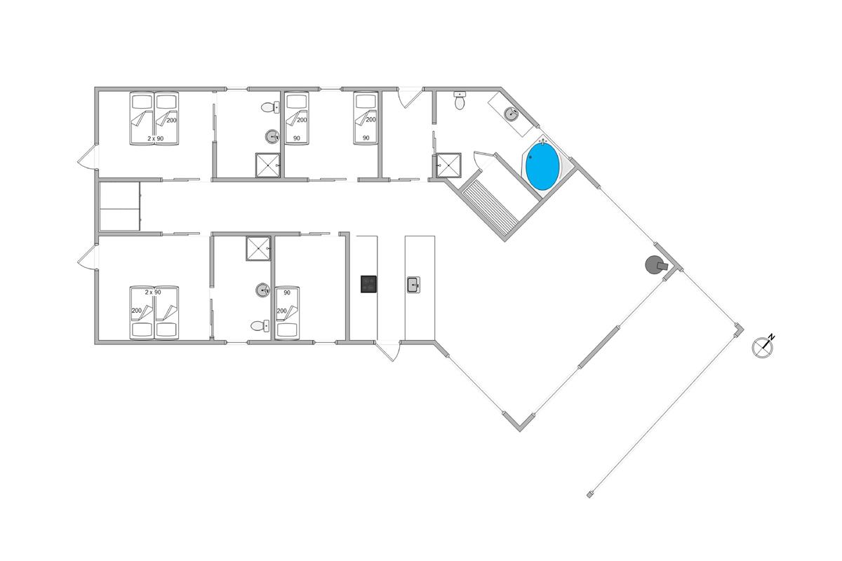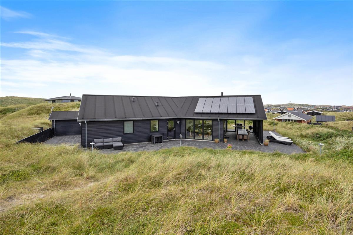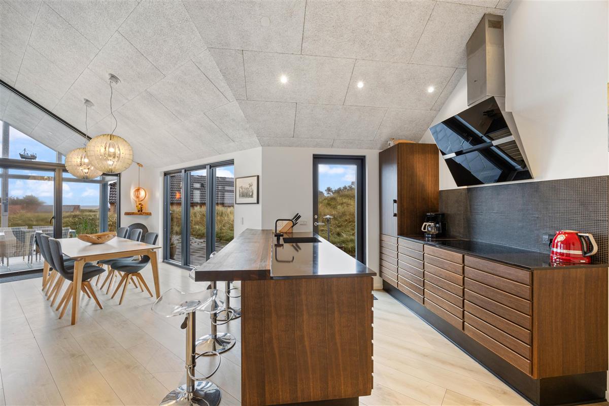 The expansive terrace wraps around the entire house, offering fantastic fjord views as a bonus. Here you can enjoy beautiful moments in natural surroundings whatever the weather. At just 150 metres from the wide sandy beach, you can hear the sea and breathe in the ocean breeze from your sun lounger.