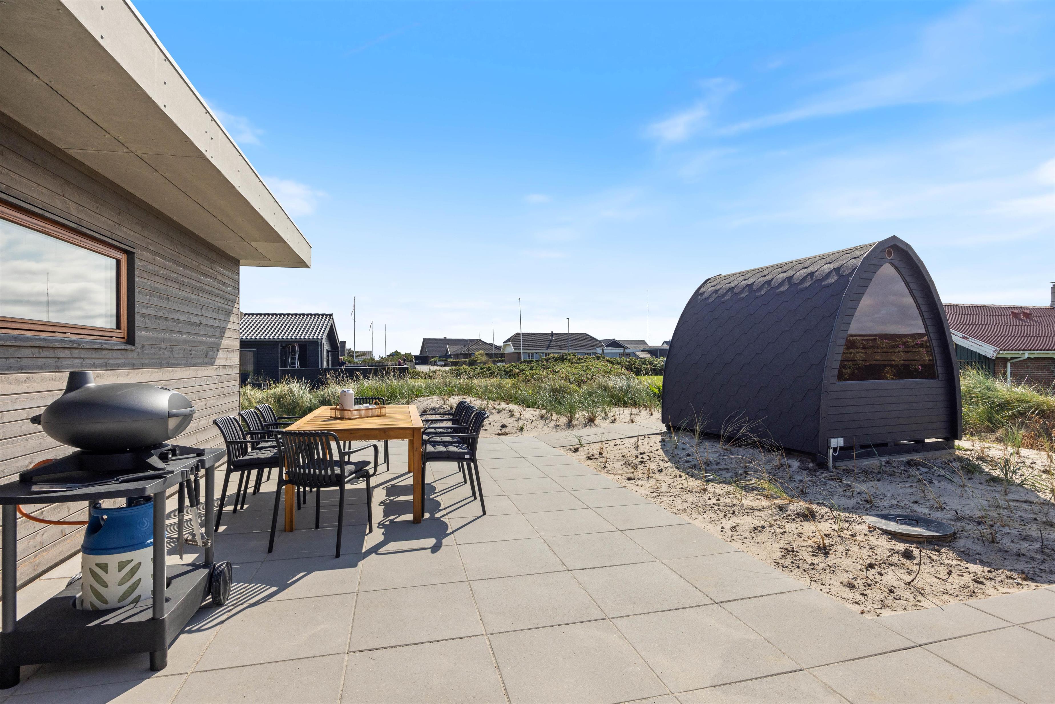 With 174 square metres of living space and four comfortable bedrooms, this ultra-modern holiday home offers plenty of room for multiple families or a large group of friends. There's also a sleeping nook in the living area with beautiful dune views, perfect for children or additional guests. Two stylishly designed bathrooms with underfloor heating ensure each day begins with comfort. To complete your wellness experience, the 1,478-square-metre outdoor area offers pure relaxation. You'll find an outdoor hot tub for up to 6 people and an outdoor sauna with beautiful views, which can be converted into a cosy relaxation area if you're not interested in using the sauna. During the warmer months from April to November, an outdoor shower is also available.