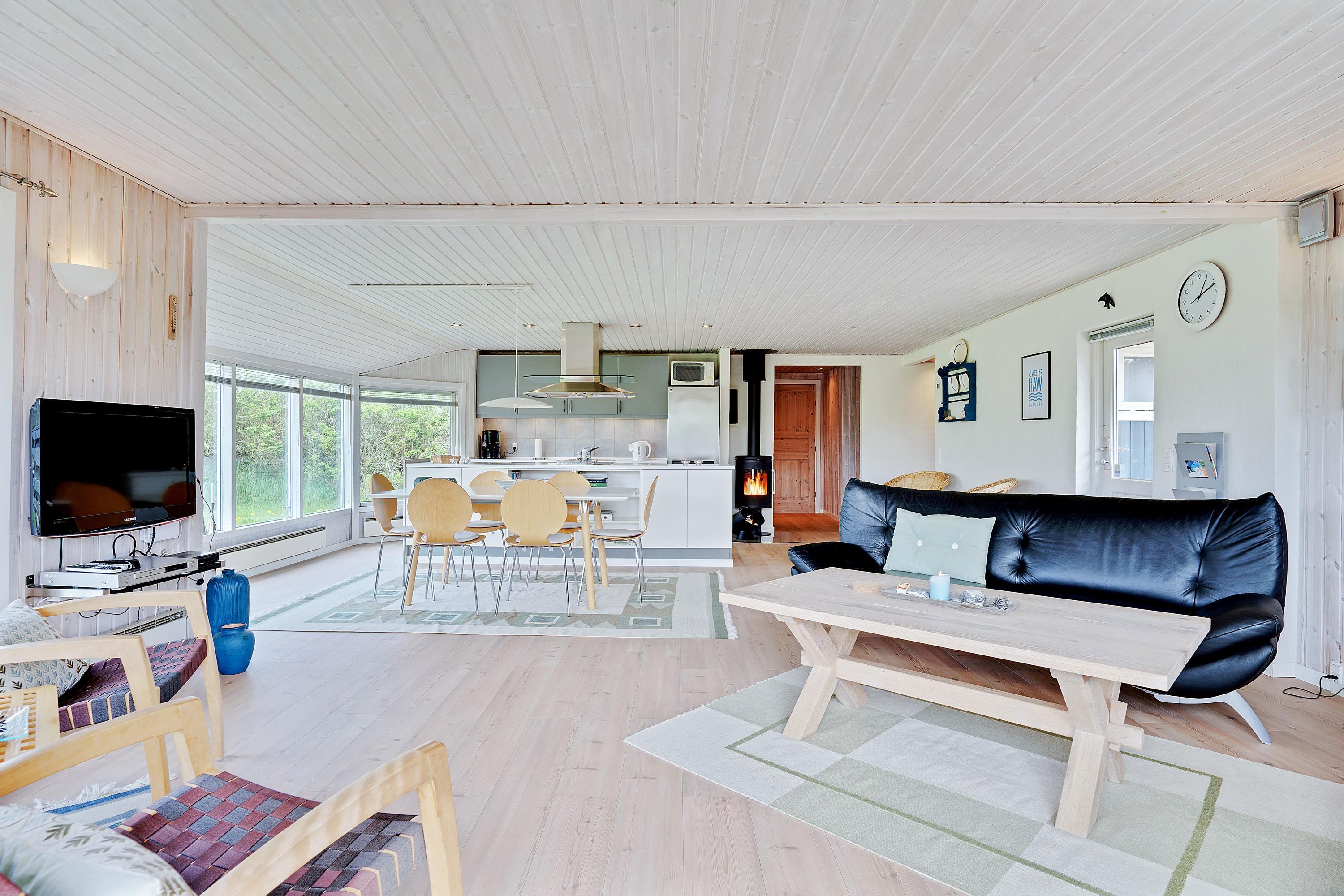This lovely holiday home is located in the beautiful holiday region of Årgab, Tinggodden 254, very close to the expansive beach. The large plot is nestled among bushes and small trees, with screened gardens and terraces offering complete privacy.