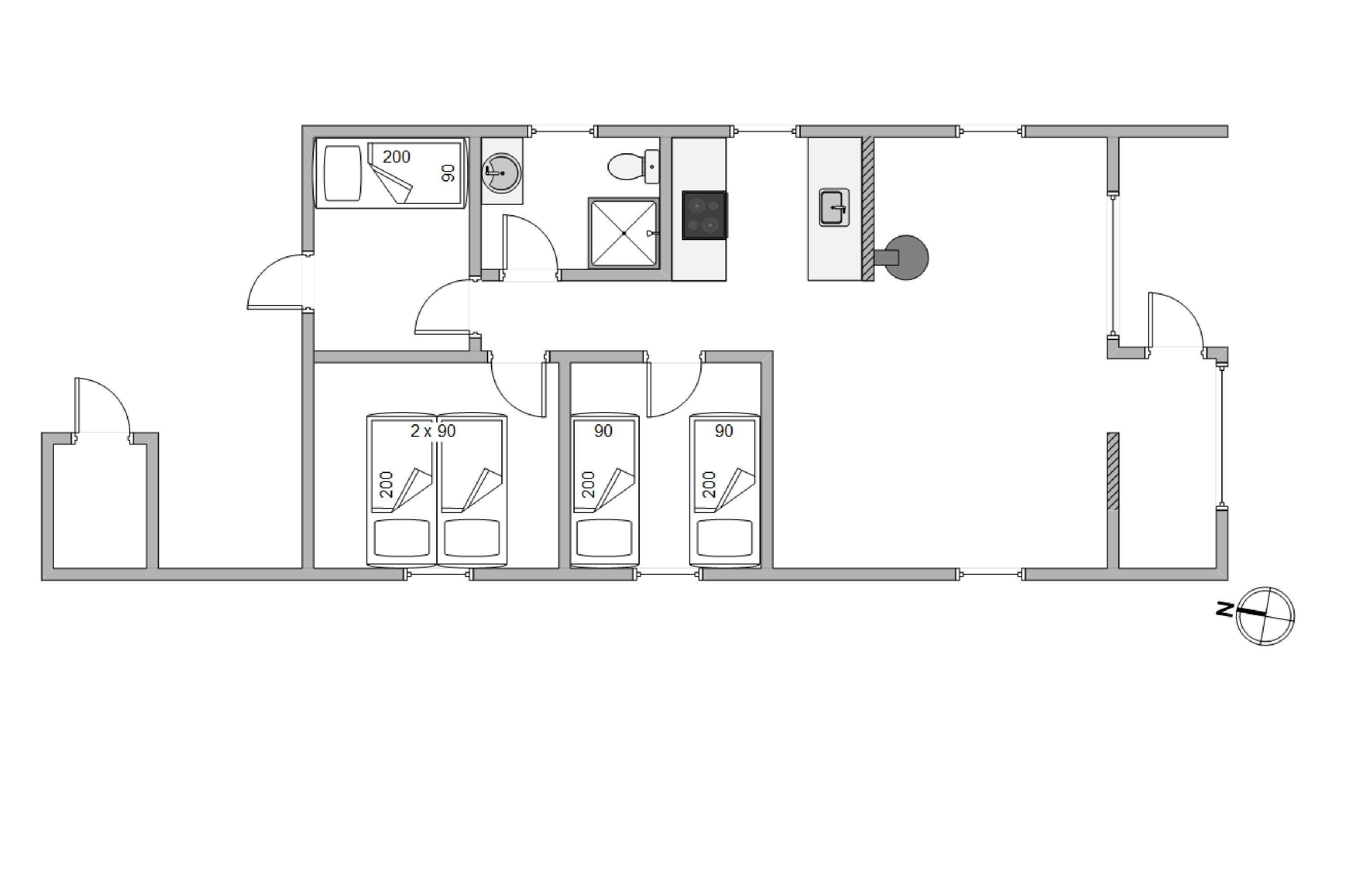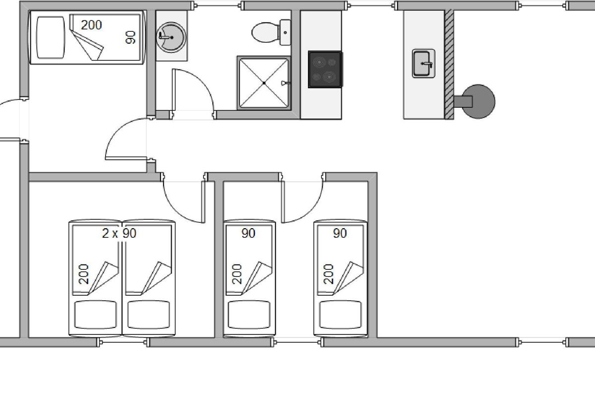 The well-maintained bathroom features underfloor heating. For a peaceful night's rest after an eventful day, there are three bedrooms furnished with one double bed and three single beds.