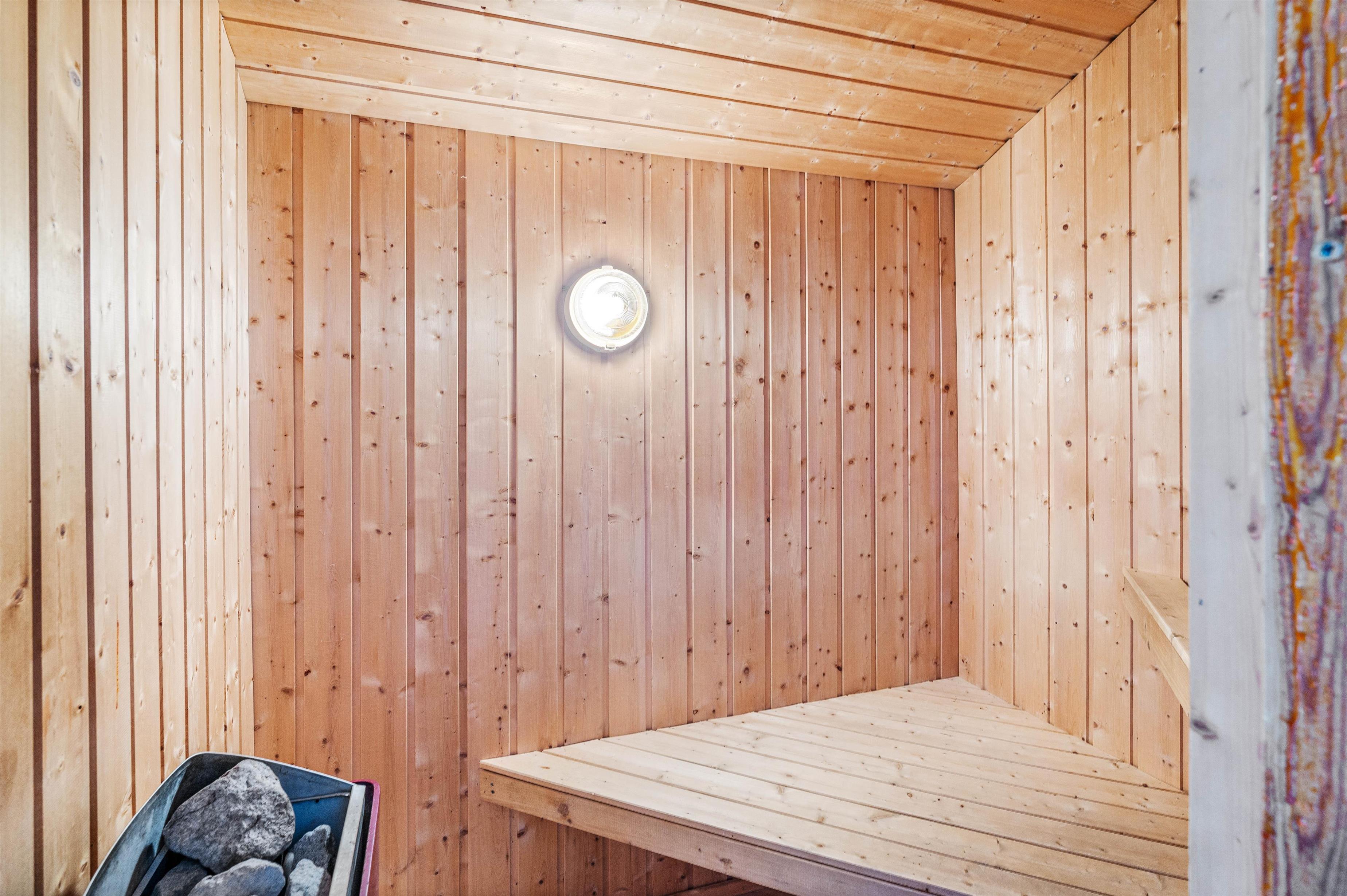 The bathroom is equipped with a sauna and whirlpool - perfect for a relaxing spa evening. The additional guest WC is particularly convenient, preventing any queues. In the living area, light the wood-burning stove and let the warmth spread through the holiday home while you read an engaging book or browse the internet.