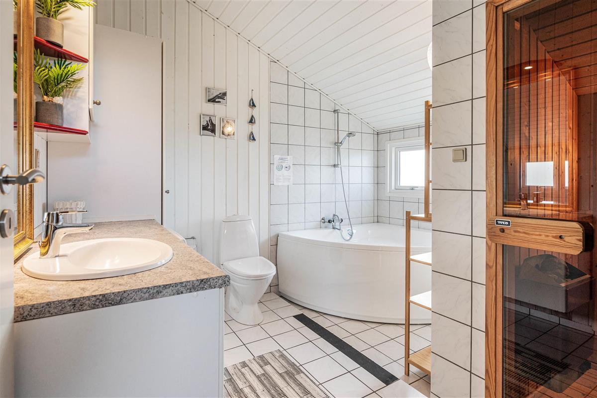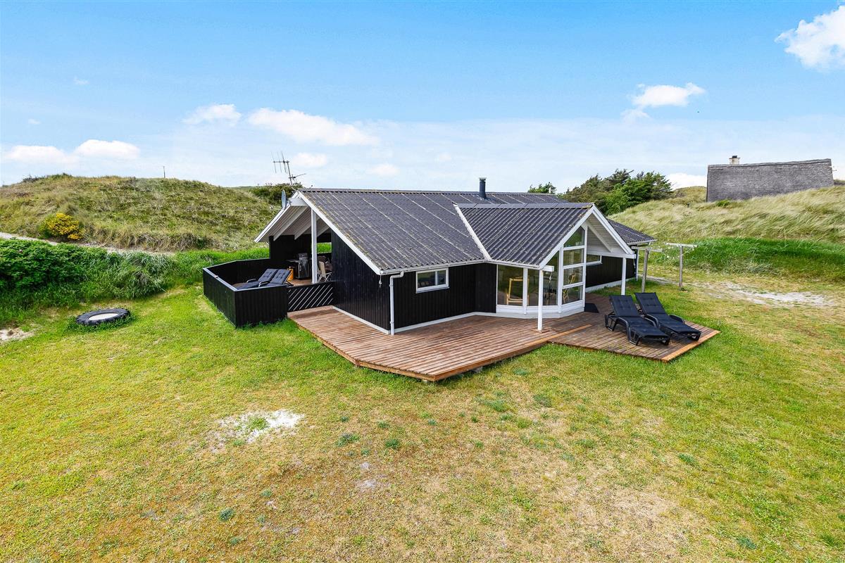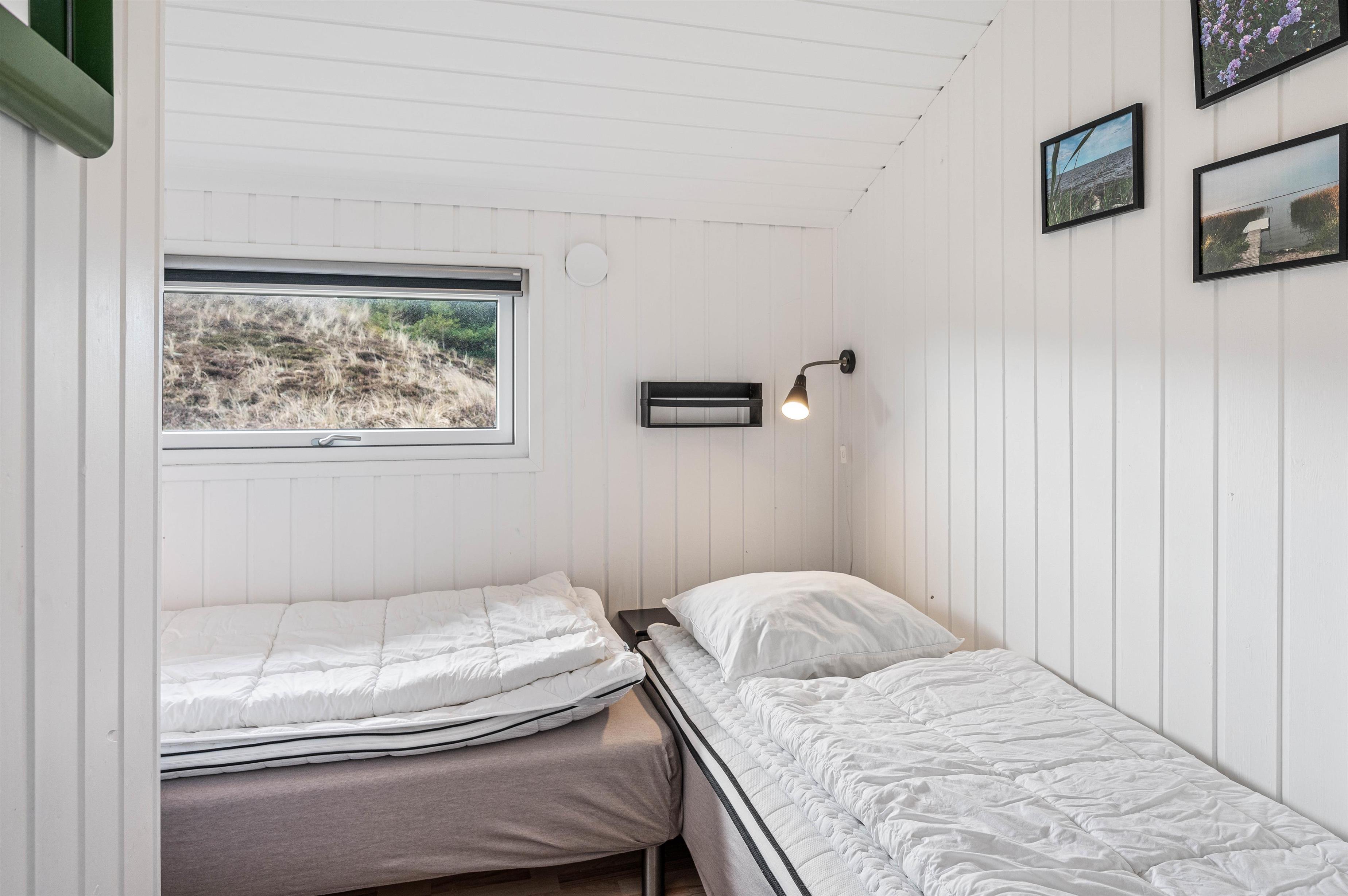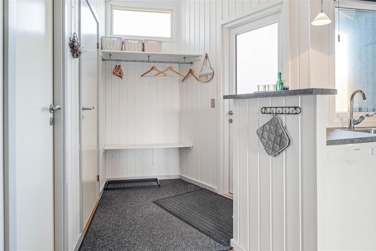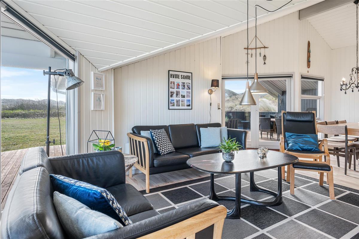 Your holiday home can be described as a beautifully appointed holiday home with excellent furnishings. The summer house features four bedrooms - three with double beds and one with two single beds - accommodating up to eight people in total. The bright and welcoming kitchen is open-plan, connecting to the living area and dining space.