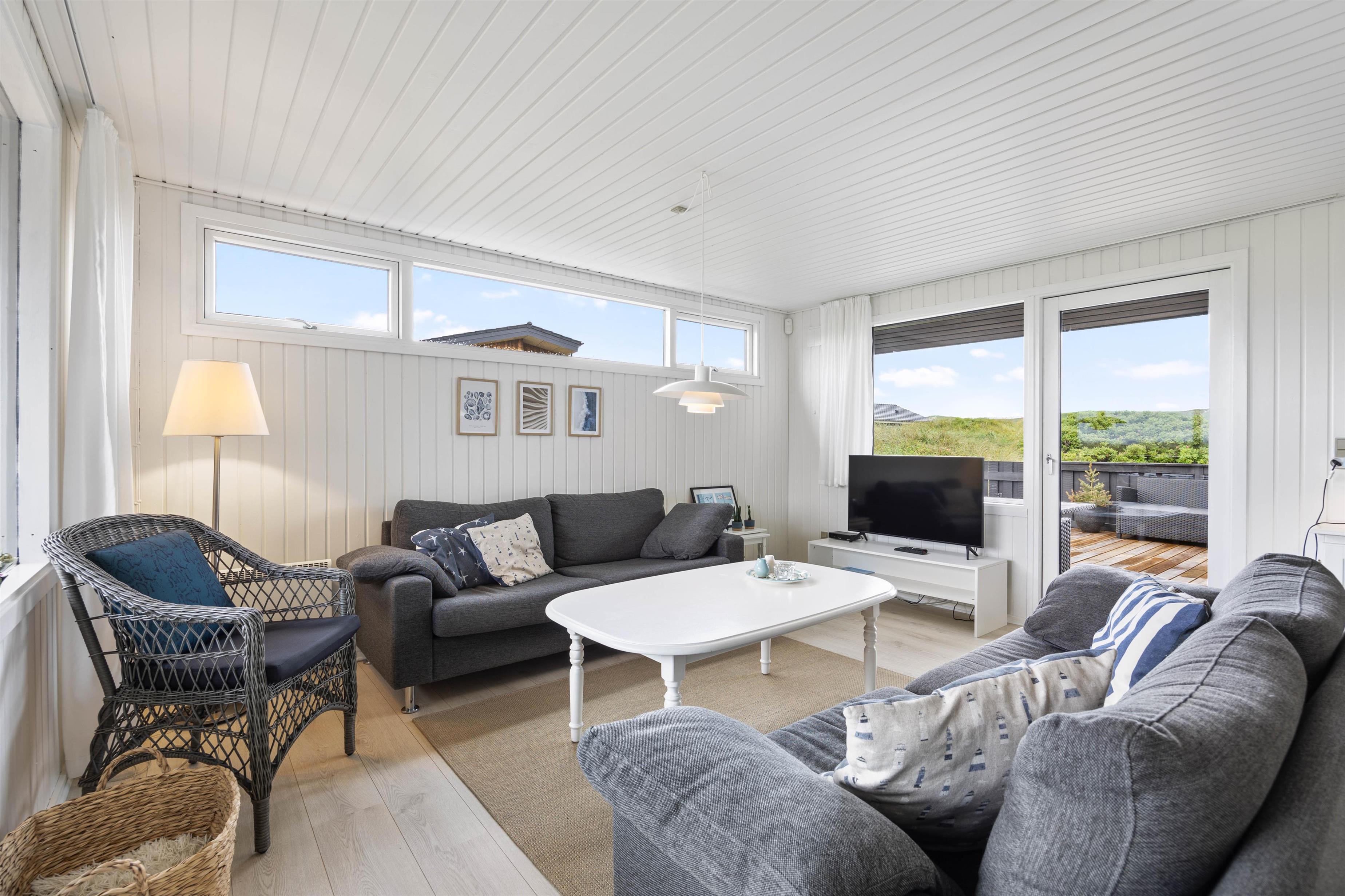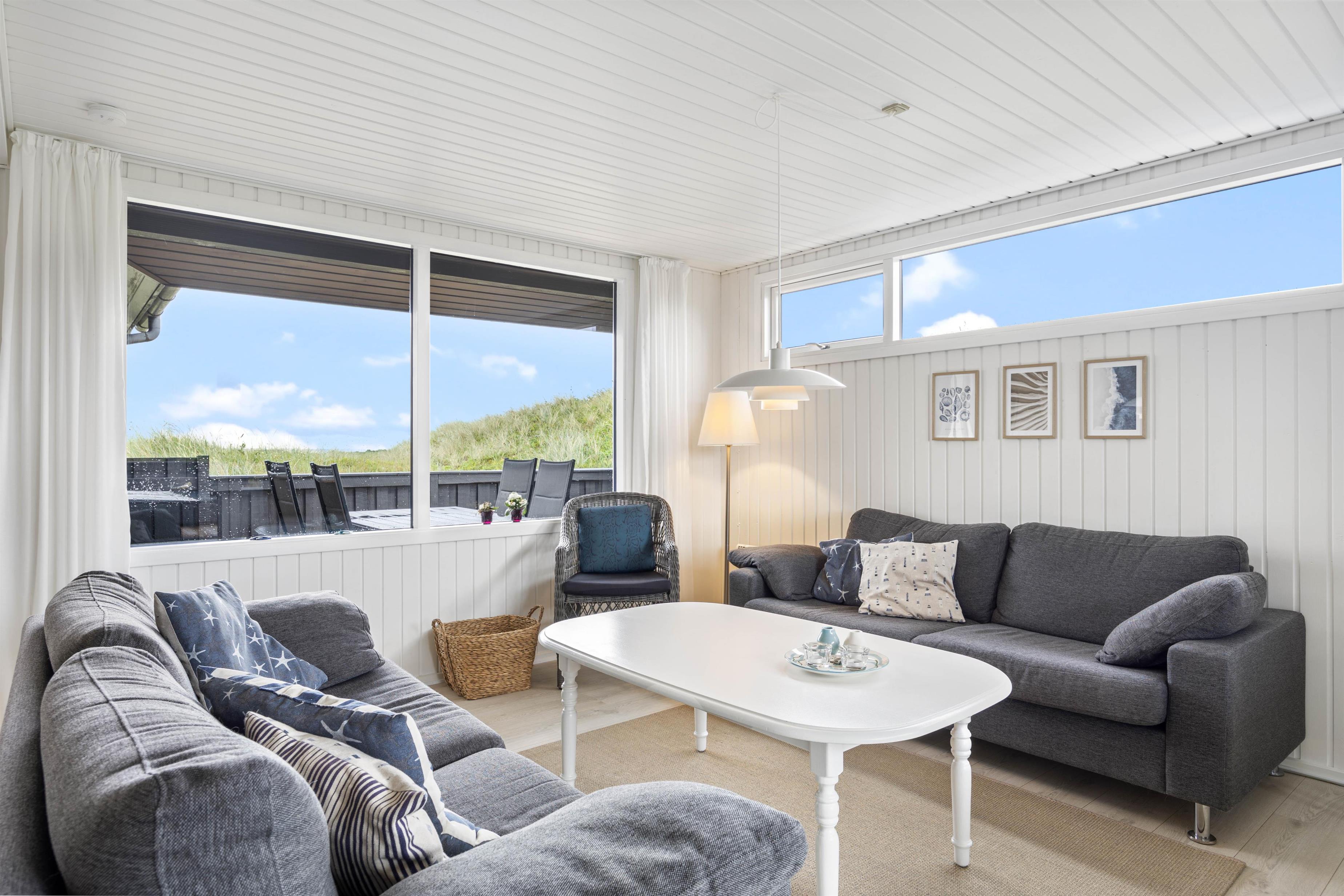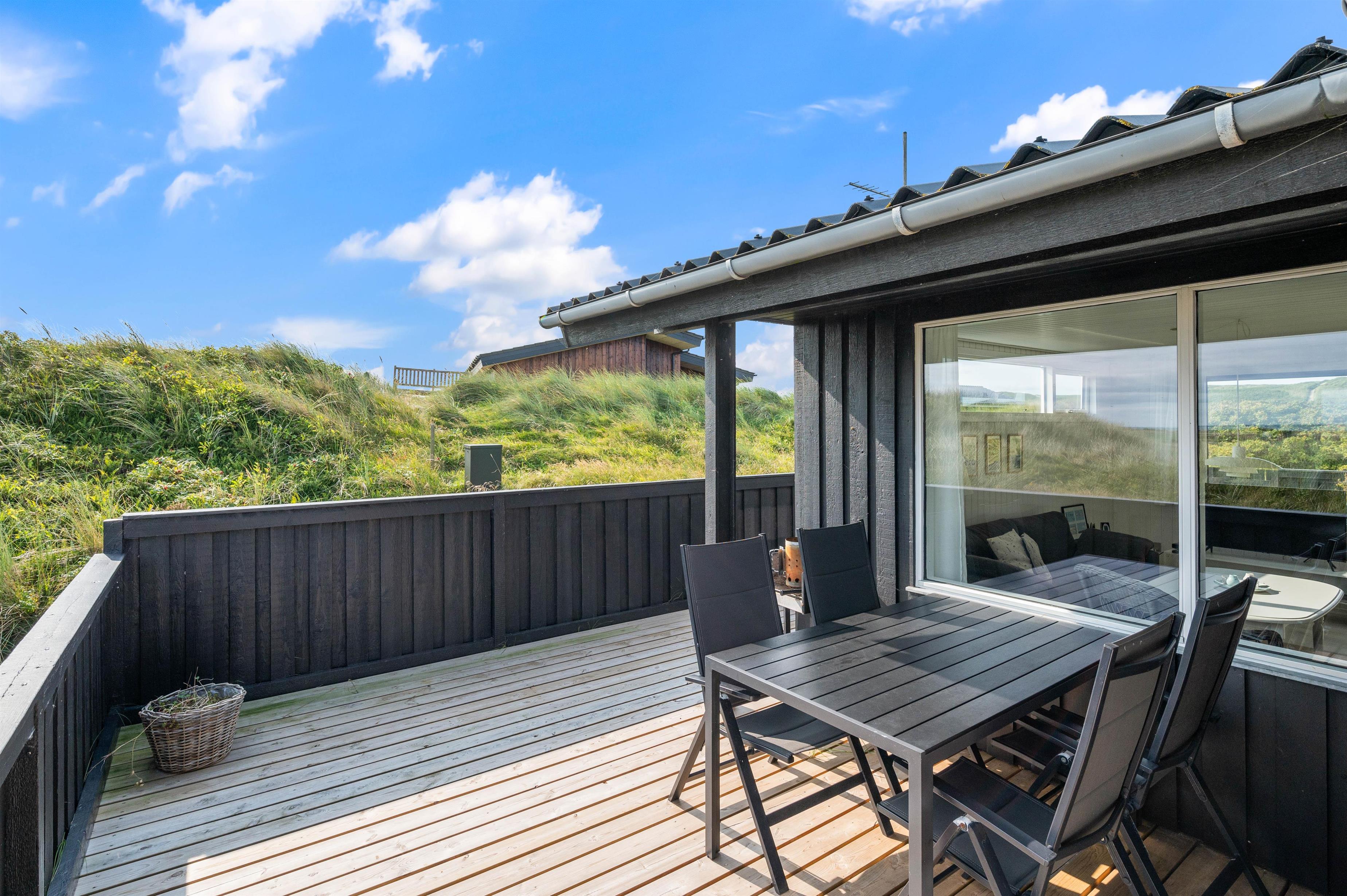 Welcome to this cosy holiday home accommodating up to 6 people, with beautiful views over Ringkøbing Fjord. The perfect spot for those seeking true relaxation. The beautiful enclosed terrace is ideal for the two dogs you're welcome to bring on holiday. The energy-efficient heat pump quickly warms the holiday home, even on cold days.