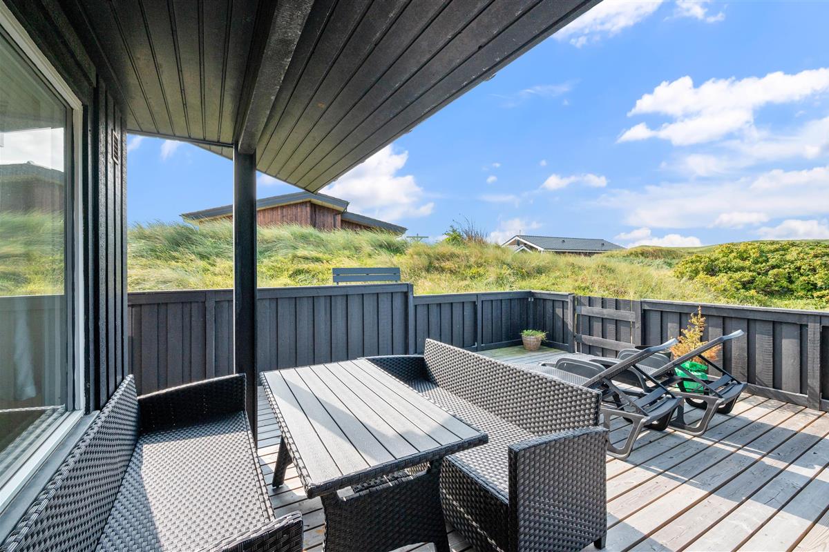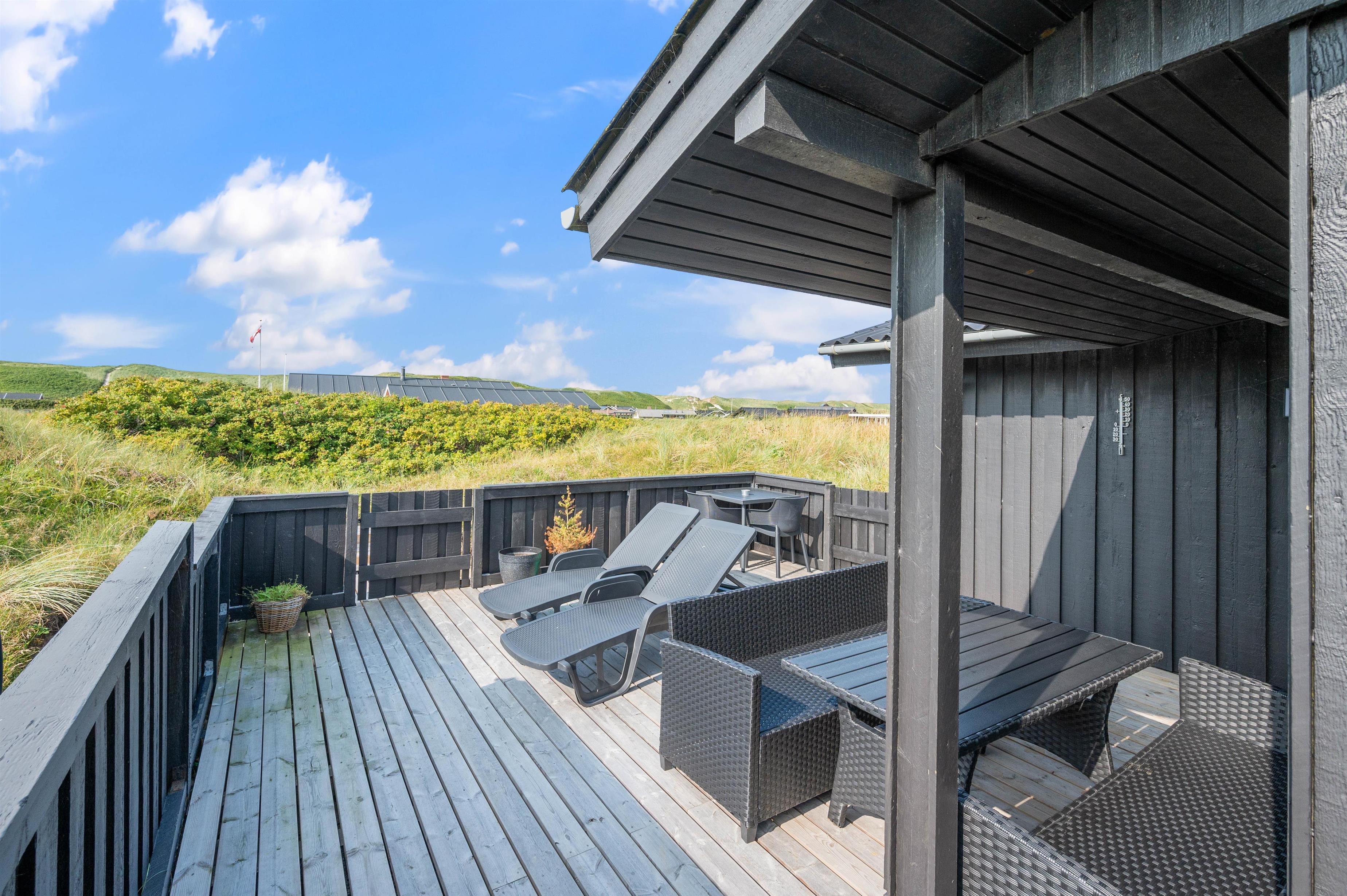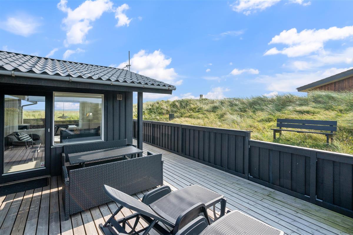 Welcome to this cosy holiday home accommodating up to 6 people, with beautiful views over Ringkøbing Fjord. The perfect spot for those seeking true relaxation. The beautiful enclosed terrace is ideal for the two dogs you're welcome to bring on holiday. The energy-efficient heat pump quickly warms the holiday home, even on cold days.