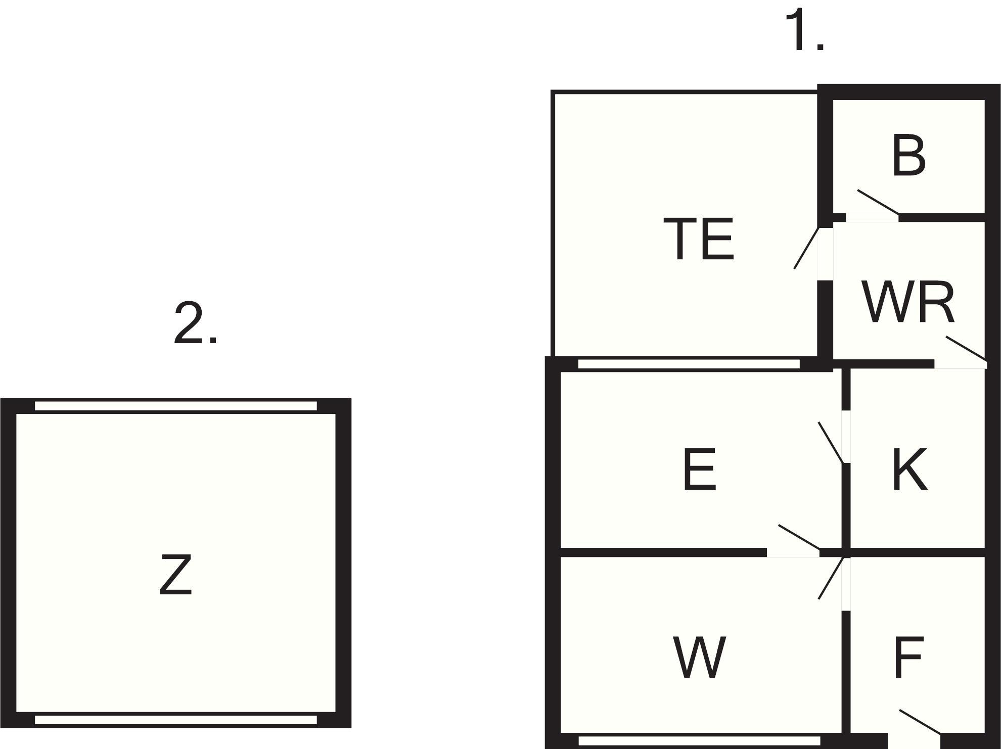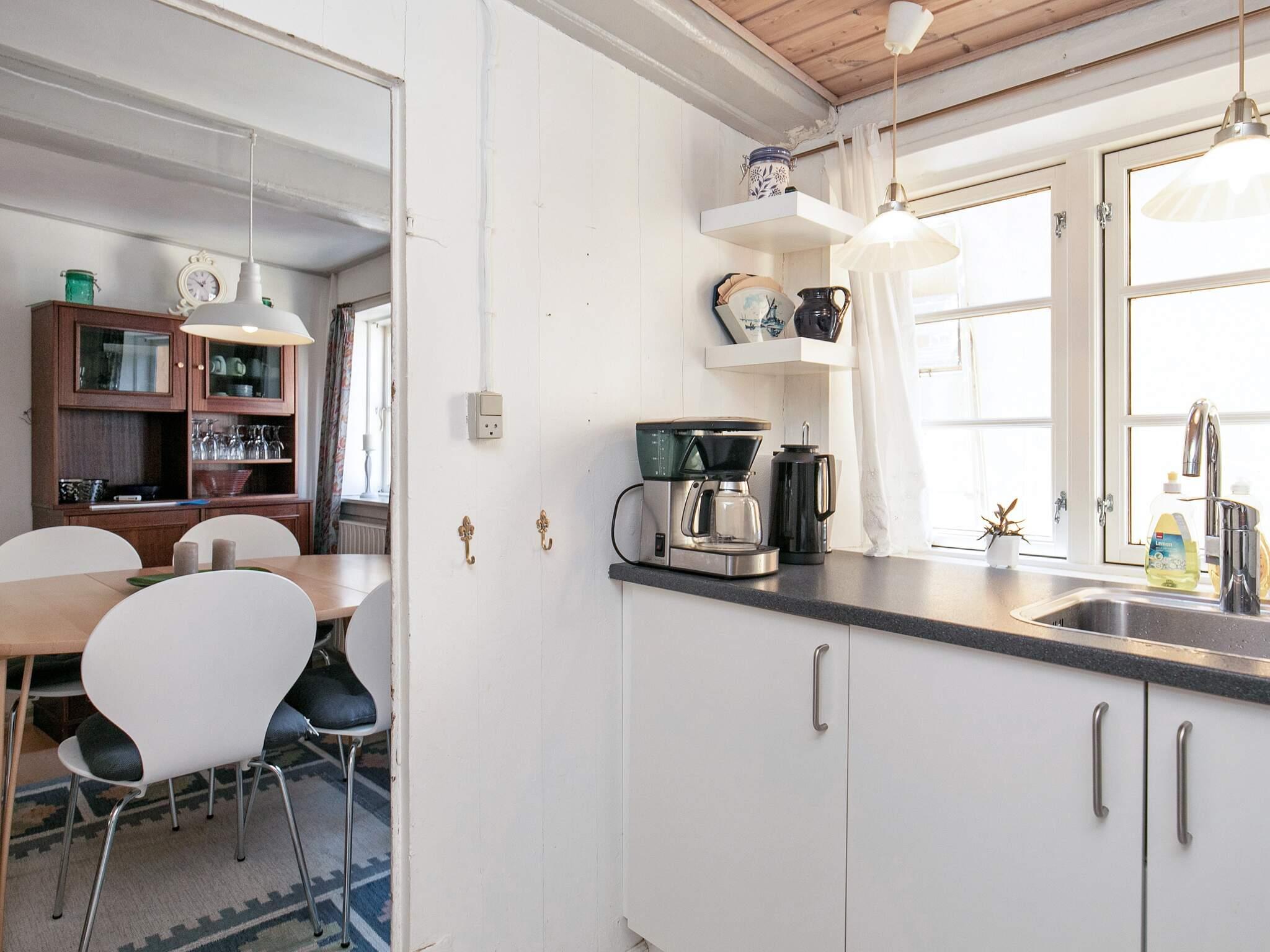Das Ferienhäuschen bietet zwei Etagen und eine wohnliche Einrichtung mit einigen nostalgischen Details. Es stehen drei Schlafplätze im Schlafzimmer zur Verfügung, das sich oben im Dachgeschoss befindet. Die Treppe zum 1. Stock ist sehr steil. Offener Küchen-/Essbereich mit u.a. Ceranfeld und Abzugshaube. Vom praktischen Hauswirtschaftsraum aus haben Sie Zugang zu einem kleinen, gemütlichen Innenhof.