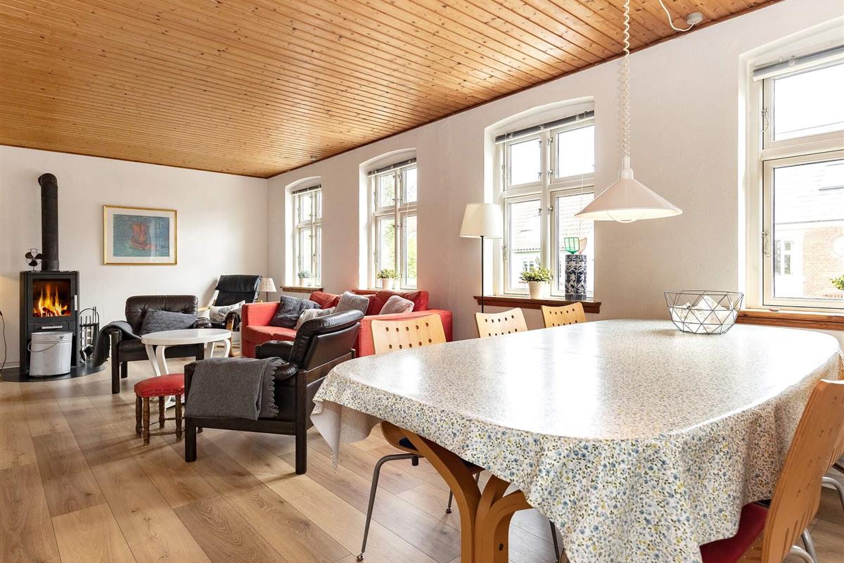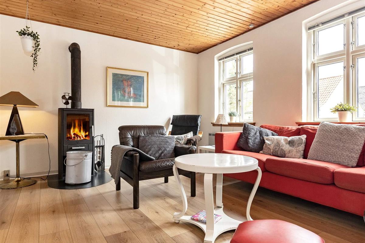In Marstal steht dieses gut instand gehaltene Ferienhaus mit offenem Ess-/Wohnbereich für das Familienleben. Gemütlicher Holzofen für kühlere Tage im Haus. Zur Küchenausstattung gehören auch Mikrowelle und Waschmaschine. Die Schlafplätze verteilen sich auf ein Schlafzimmer im Parterre mit Einzelbett sowie zwei Schlafzimmer oben im Dachgeschoss mit weiteren Einzelbetten. Zugang vom Hauswirtschaftsraum zur Terrassenfläche mit Grill und Gartenmöbeln.