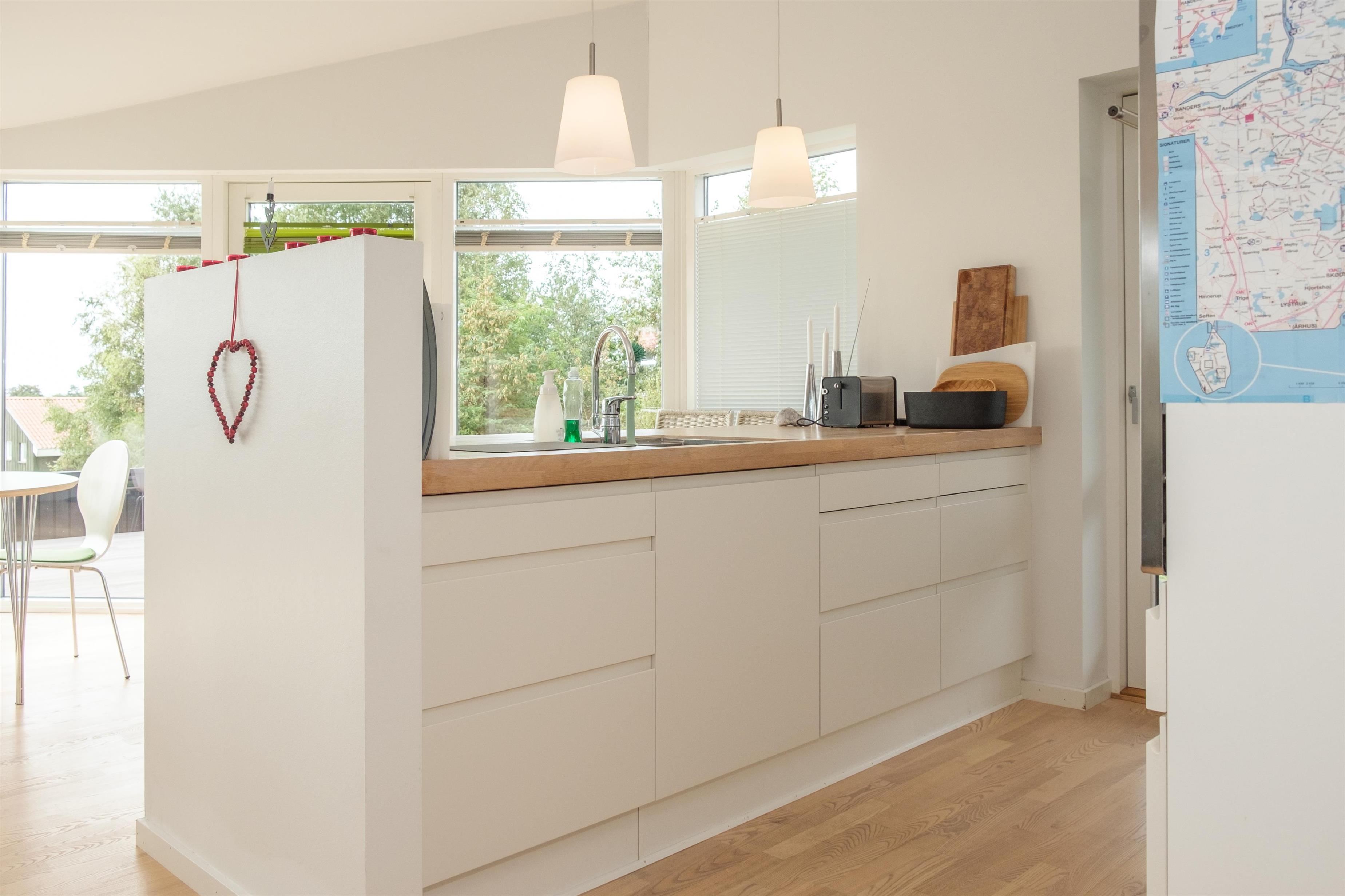 Only a short distance to the charming streets of Ebeltoft and good shopping opportunities to the north, and to the south to the child-friendly Øer Strand, characterized by shallow water, large sandbanks, and rich bird life. Good opportunities for fishing as well as lovely bike and hiking trails.