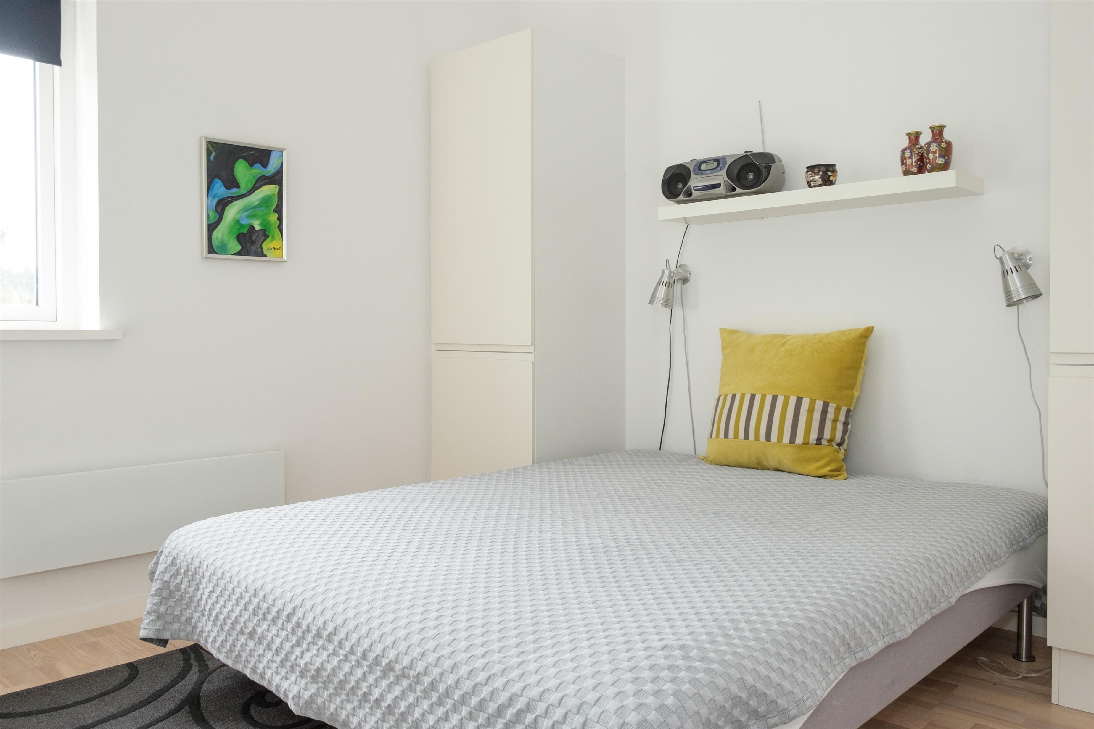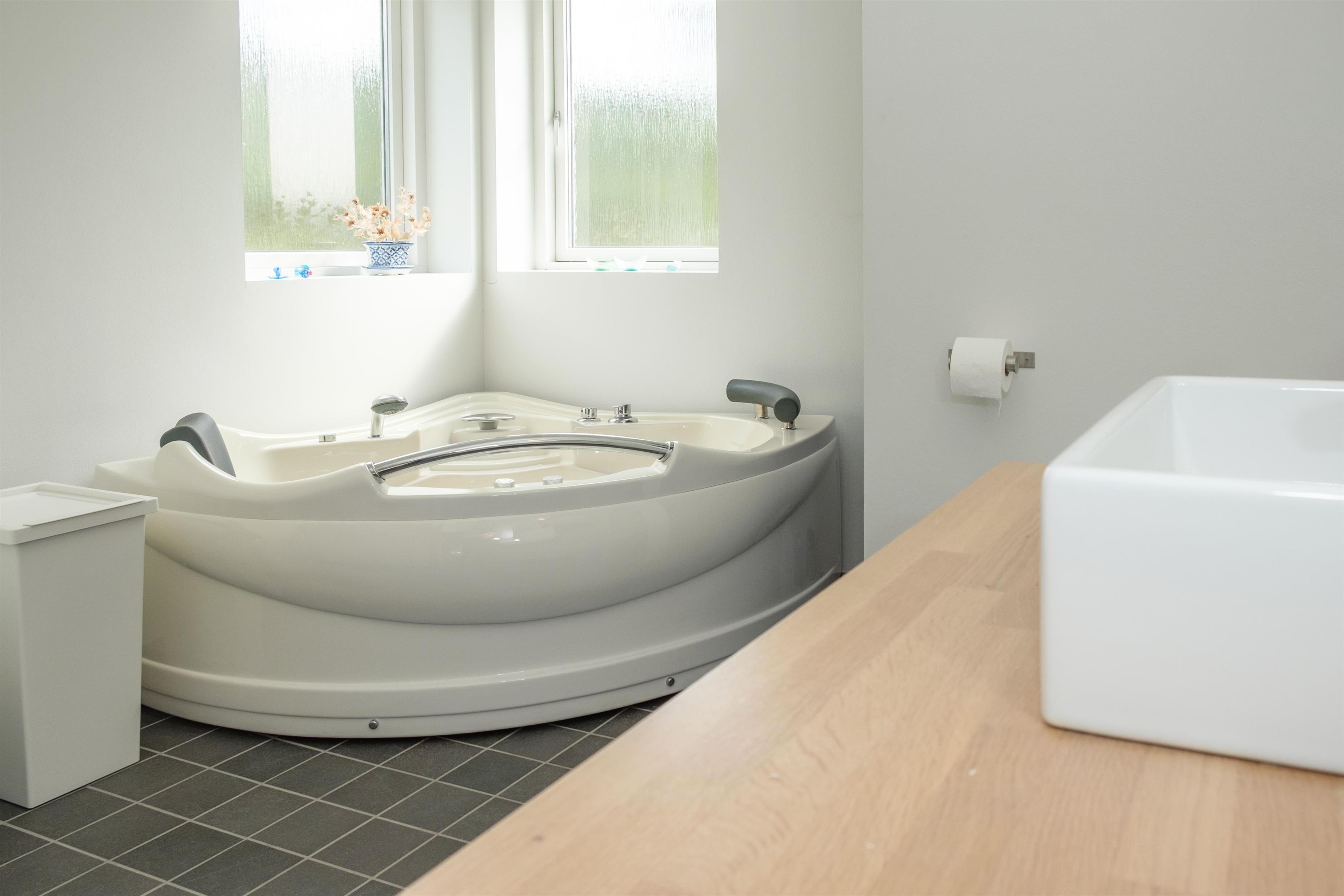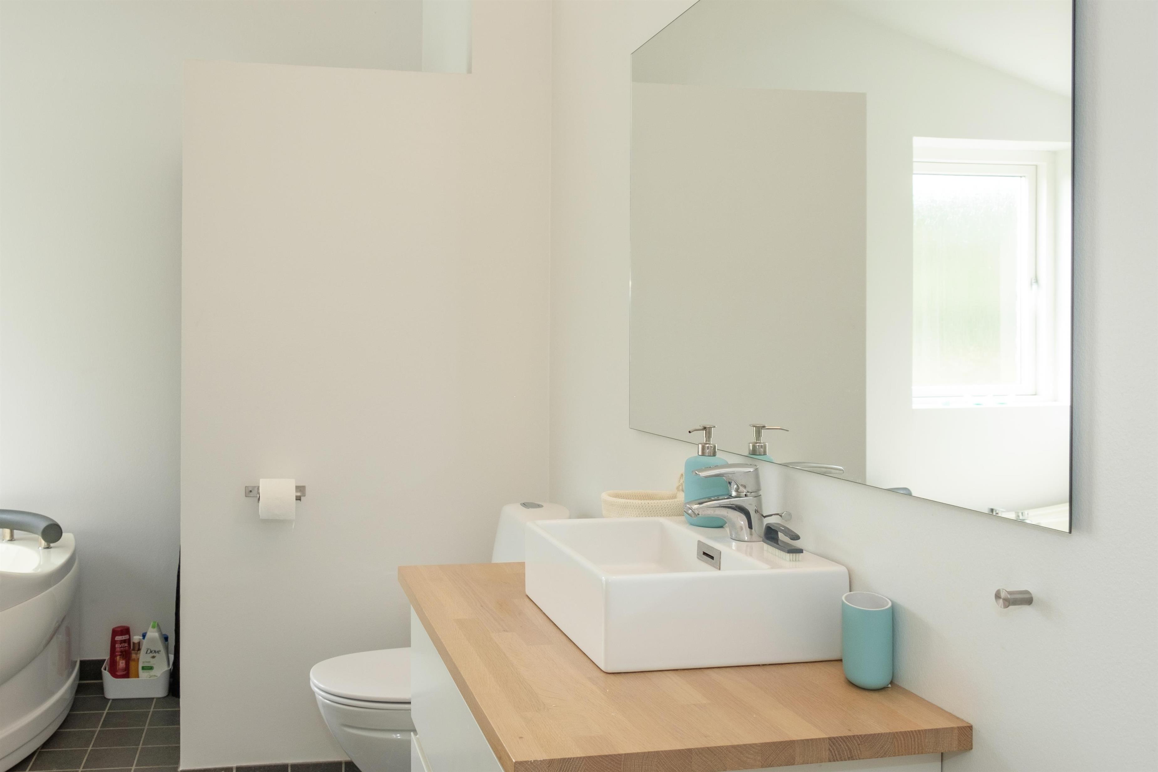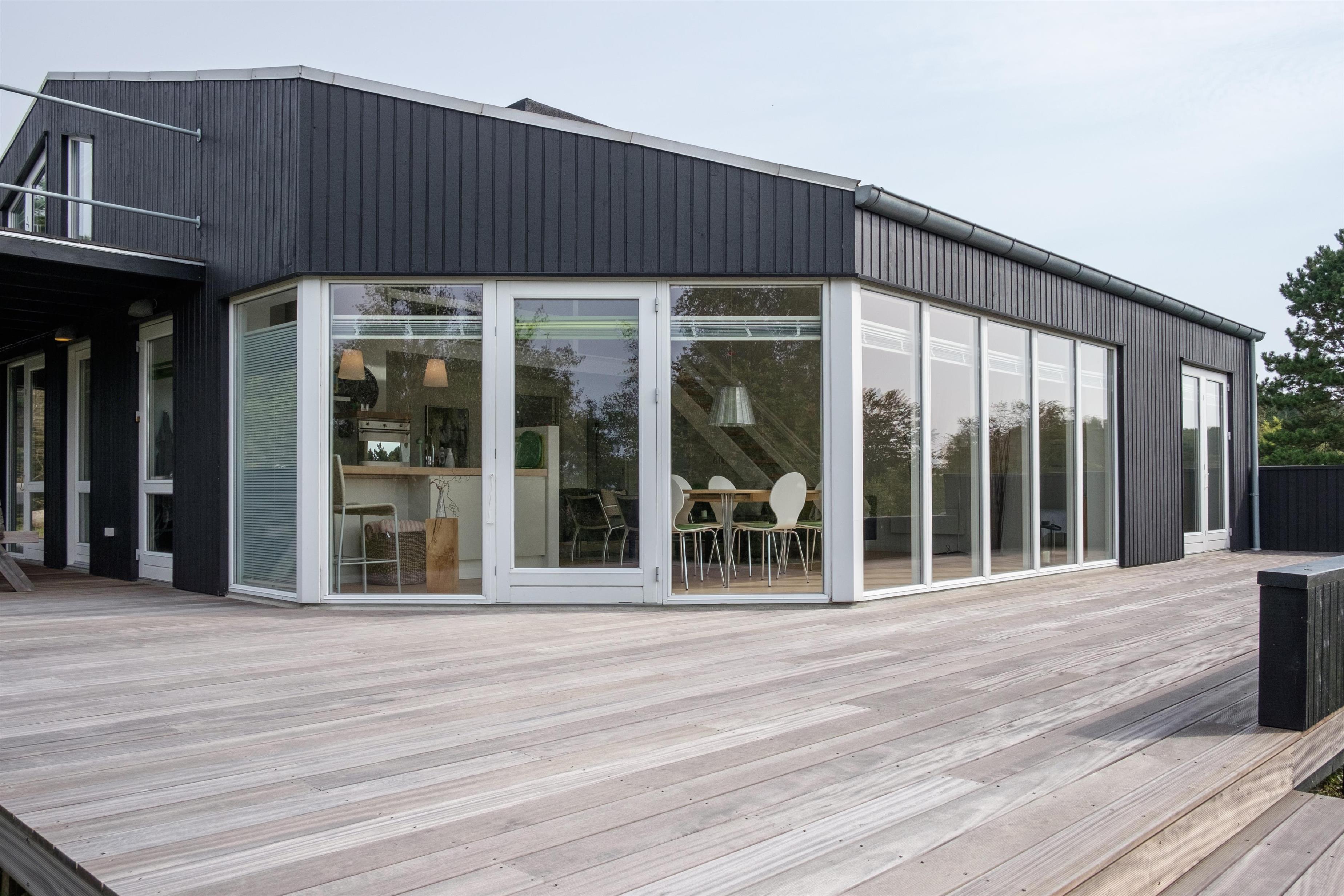 The large, bright, and inviting living room with panoramic windows is in open connection with the kitchen and has access to the terrace. Comfortable and spacious sofa seating as well as a dining area for 6 people, TV with Danish (including TV2) and German channels, and a radio. Lovely, new, and well-appointed kitchen with ceramic hobs, built-in oven, fridge/freezer, and dishwasher. From the living room, a staircase leads up to the 1st floor with a cozy and bright living area with a view balcony. The 6 sleeping spaces are distributed among 3 lovely, bright bedrooms on the ground floor with double beds. Large, nice bathroom with a spa bath and shower cabin, as well as a smaller bathroom with a shower. Internet access is available.