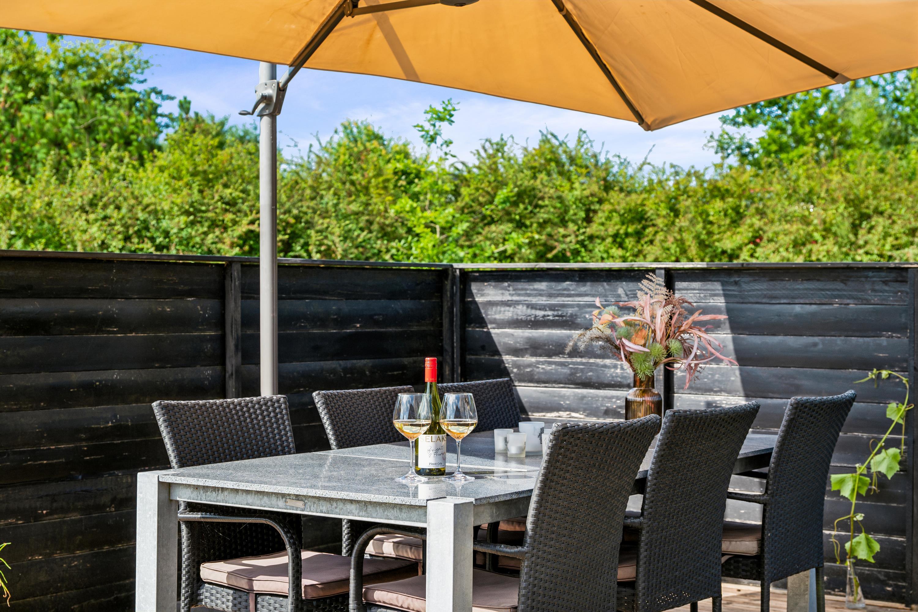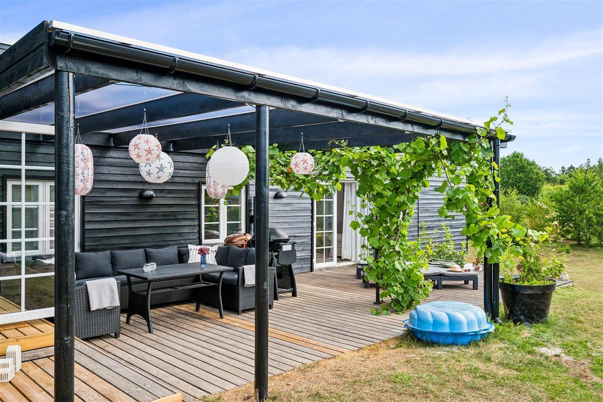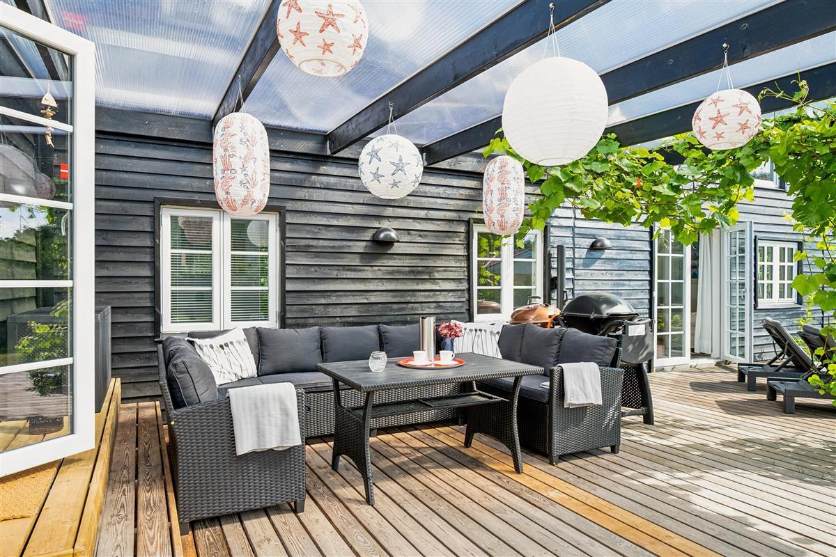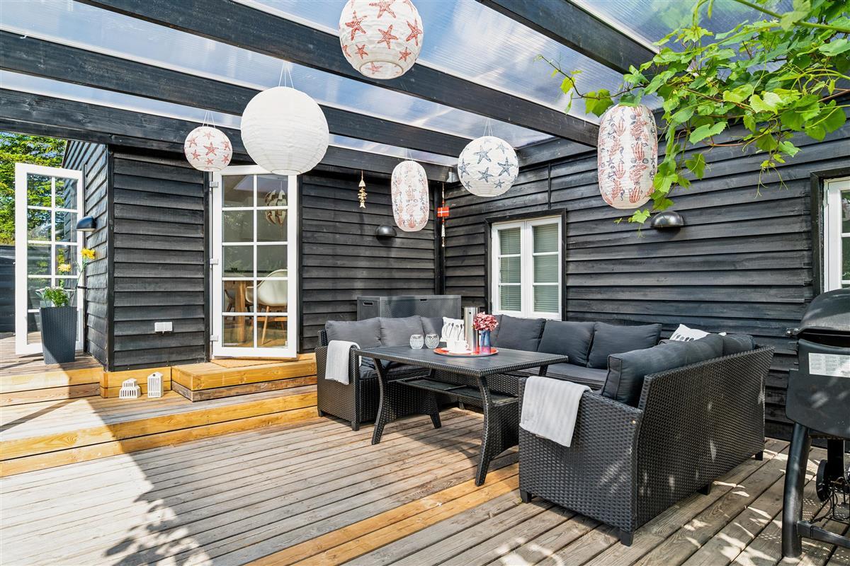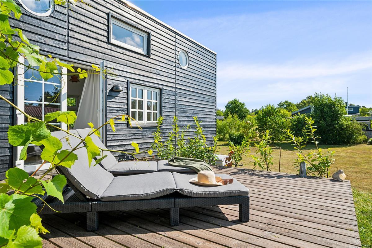 "Ombord" is a newly modernized and very well-equipped holiday home situated on a hilly and beautifully wooded natural plot with space for play close to both the beach and mountain bike trail. On the large, covered terrace with thermo glass roof and lounge sofa, you can enjoy the warmth and barbecue, even in rainy weather. The rest of the large terrace offers ample space to bask in the sun. Despite its thoroughly modern maritime appearance, the quirky walls from the original 1963 house have been preserved.