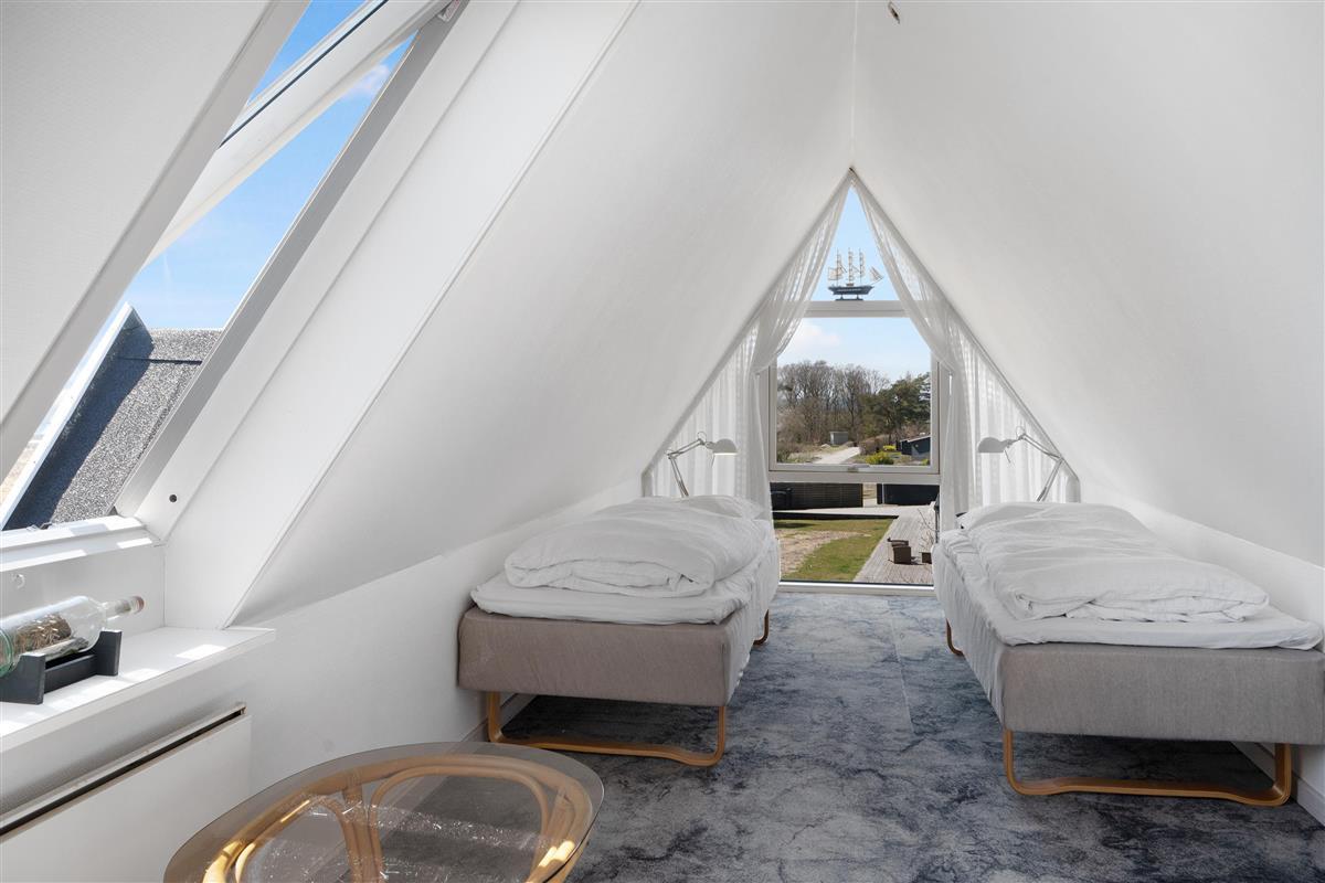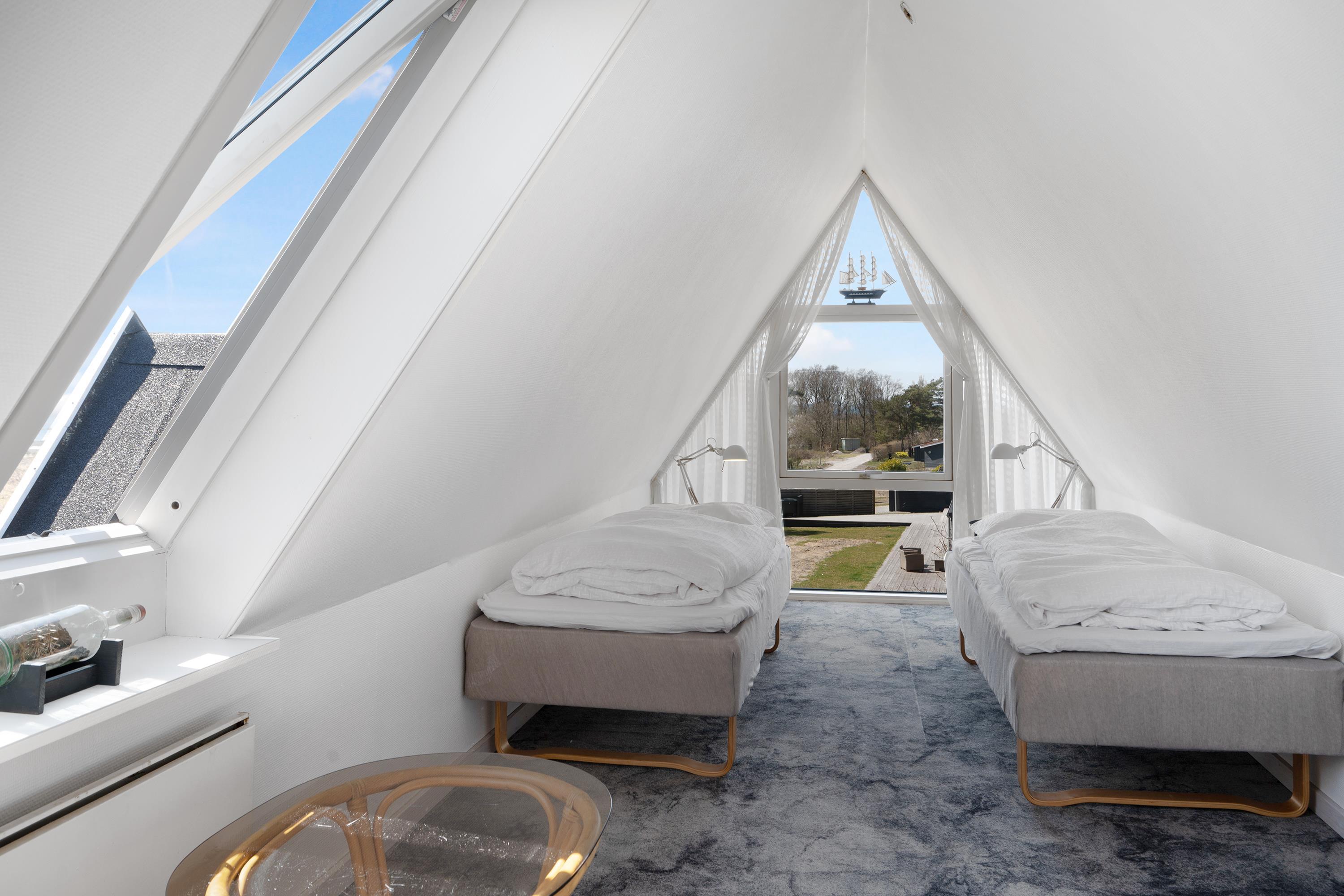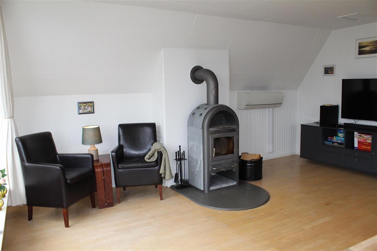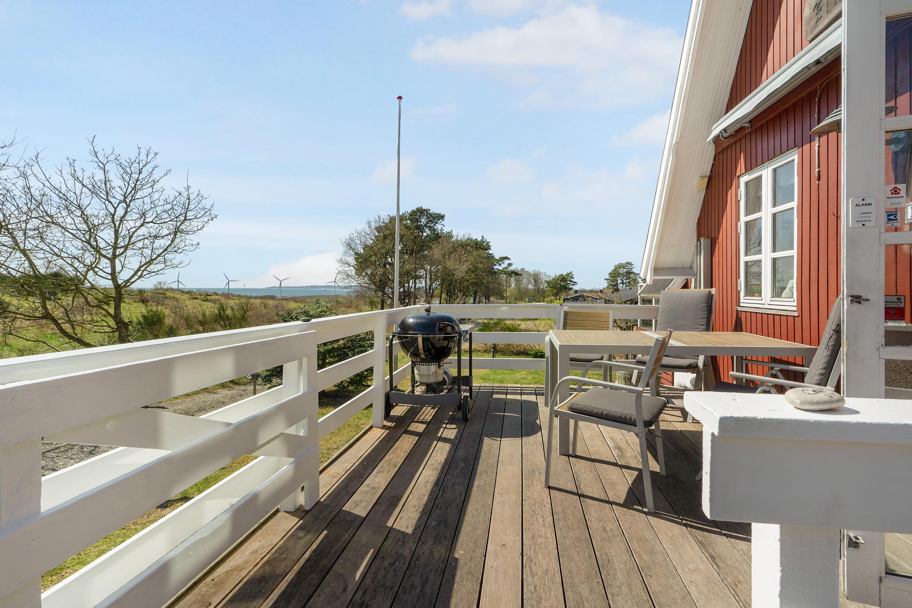 Older, well-maintained, and spacious holiday home on 2 levels, situated on a quiet road close to both Ebeltoft and Øer, with a lovely view of the Kattegat. Two beautiful, sheltered wooden terraces facing south and west, as well as a large, central, and fenced wooden terrace with a hot tub. There are garden furniture, loungers, a grill, and a parasol, as well as a delightful outdoor kitchen. The house has a carport. Large, bright, and well-furnished living room with access to the terrace. Cozy sofa furniture, wood stove, TV with Danish (including TV2) and German channels, and a radio. The spacious and well-equipped kitchen with visible ceiling beams has good dining space for 6 people, ceramic hobs and oven, refrigerator, dishwasher, and microwave, as well as access to a large, elevated terrace. On the ground floor, there is also 1 spacious bedroom with a double bed, while the 1st floor has 2 rooms with sloping ceilings (note: an extra room is locked for the owner), both with 2 single beds, making a total of 6 sleeping places. Newer, bright, and well-appointed bathroom with shower, cabinet arrangement, and washing machine, as well as a guest toilet, both on the ground floor. There is internet access.