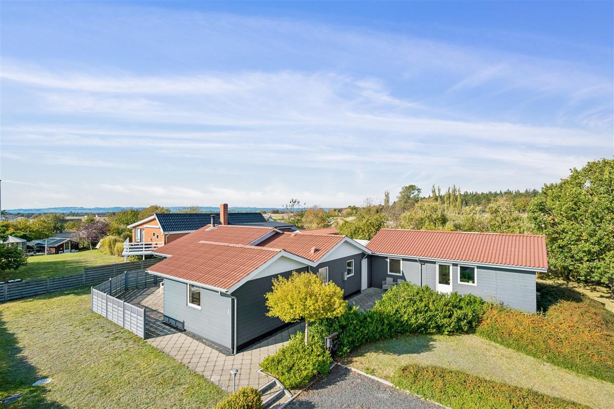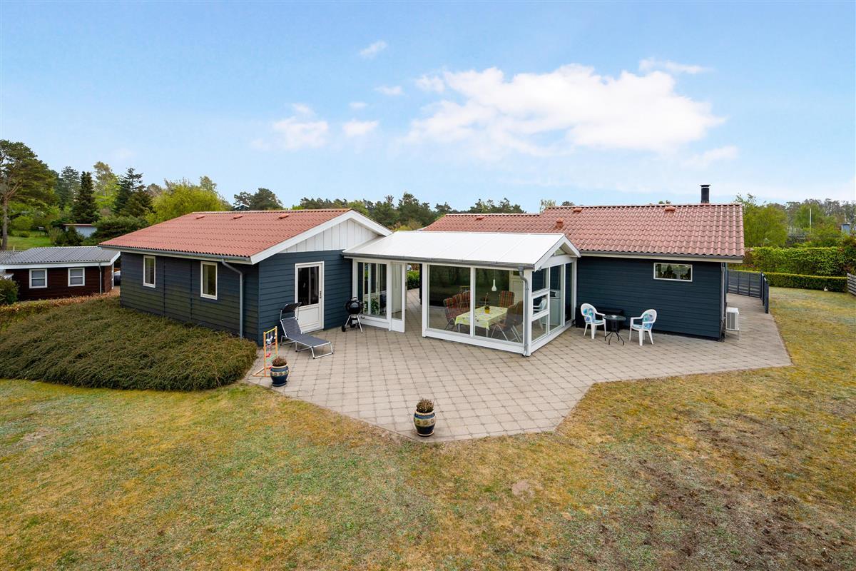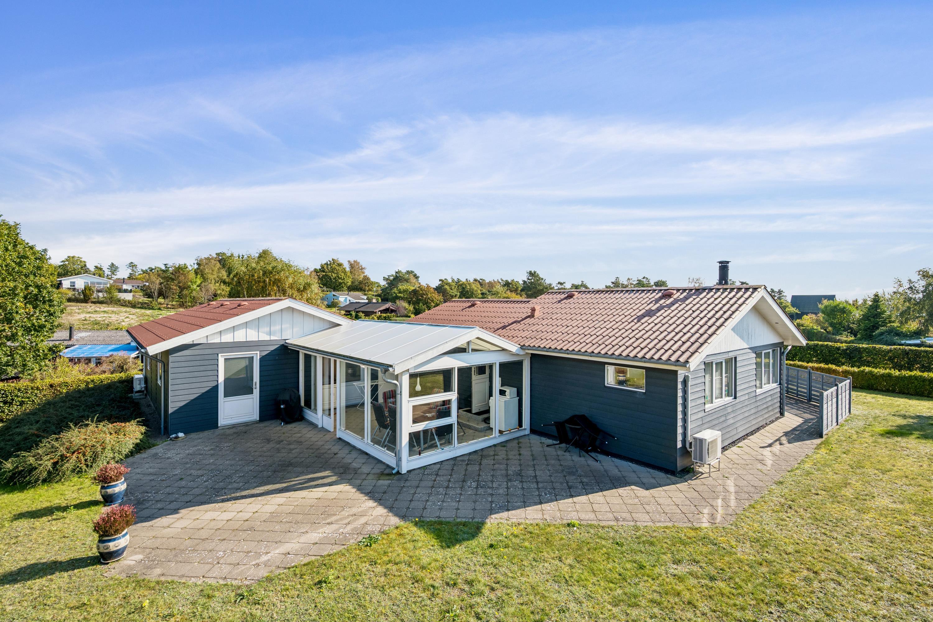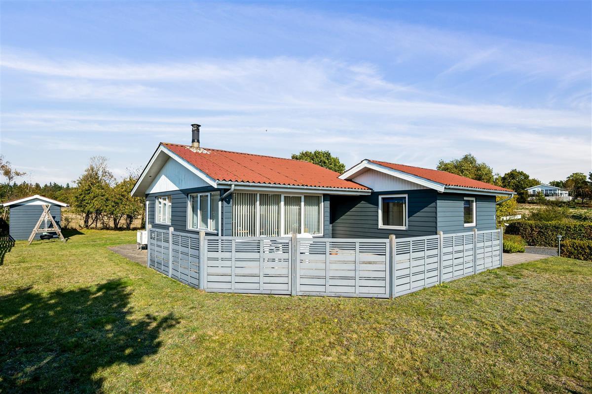 Close to Ebeltoft town and near the beach, you will find this spacious, well-maintained, and continuously modernized holiday home. The house is elevated in the northern part of the large holiday home area between Ebeltoft and Øer. Large, northwest-facing tiled terrace with a lovely conservatory where you can enjoy lunch and the view regardless of the weather, as well as a delightful, secluded, south-facing tiled terrace. Here, there are garden furniture and a grill.