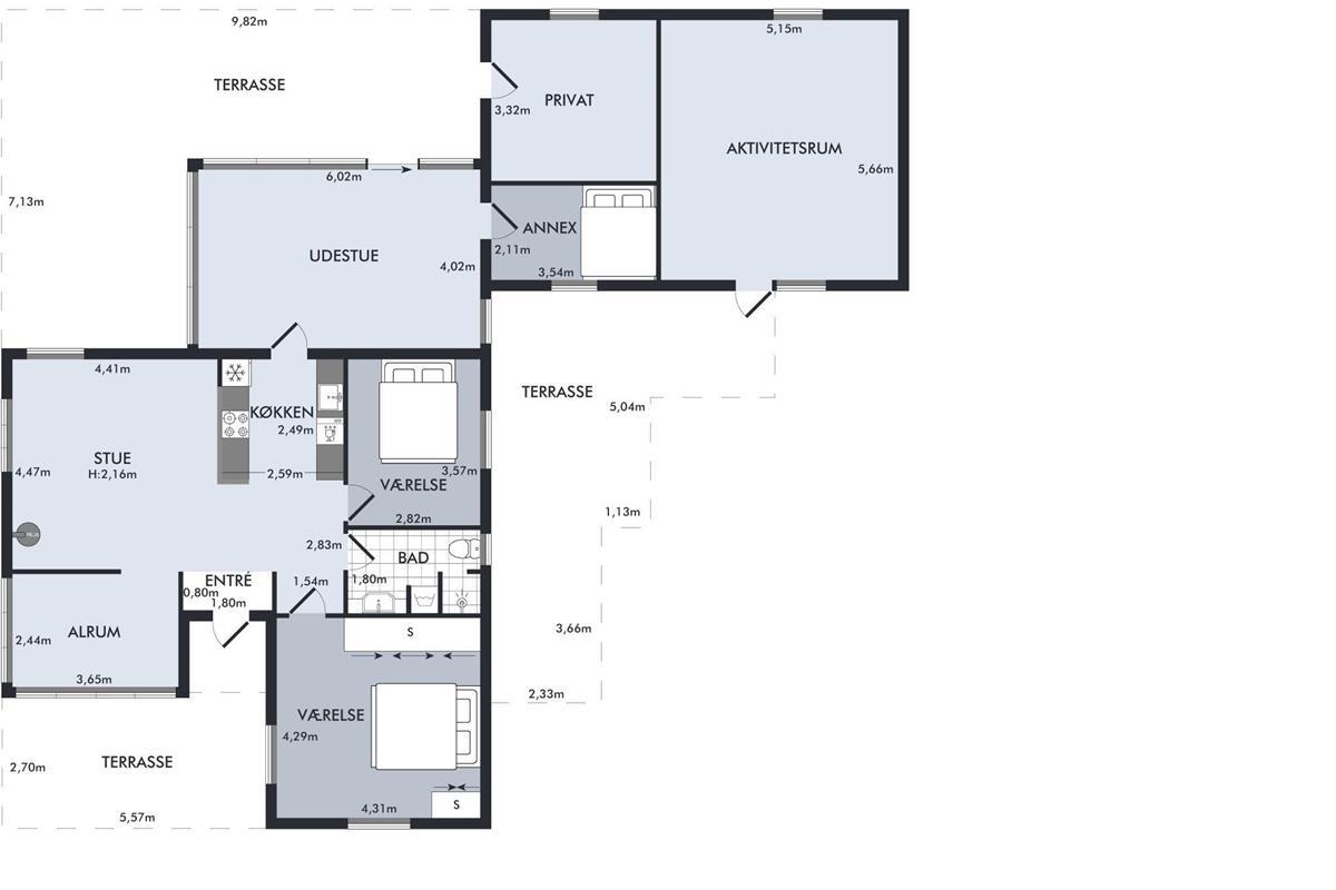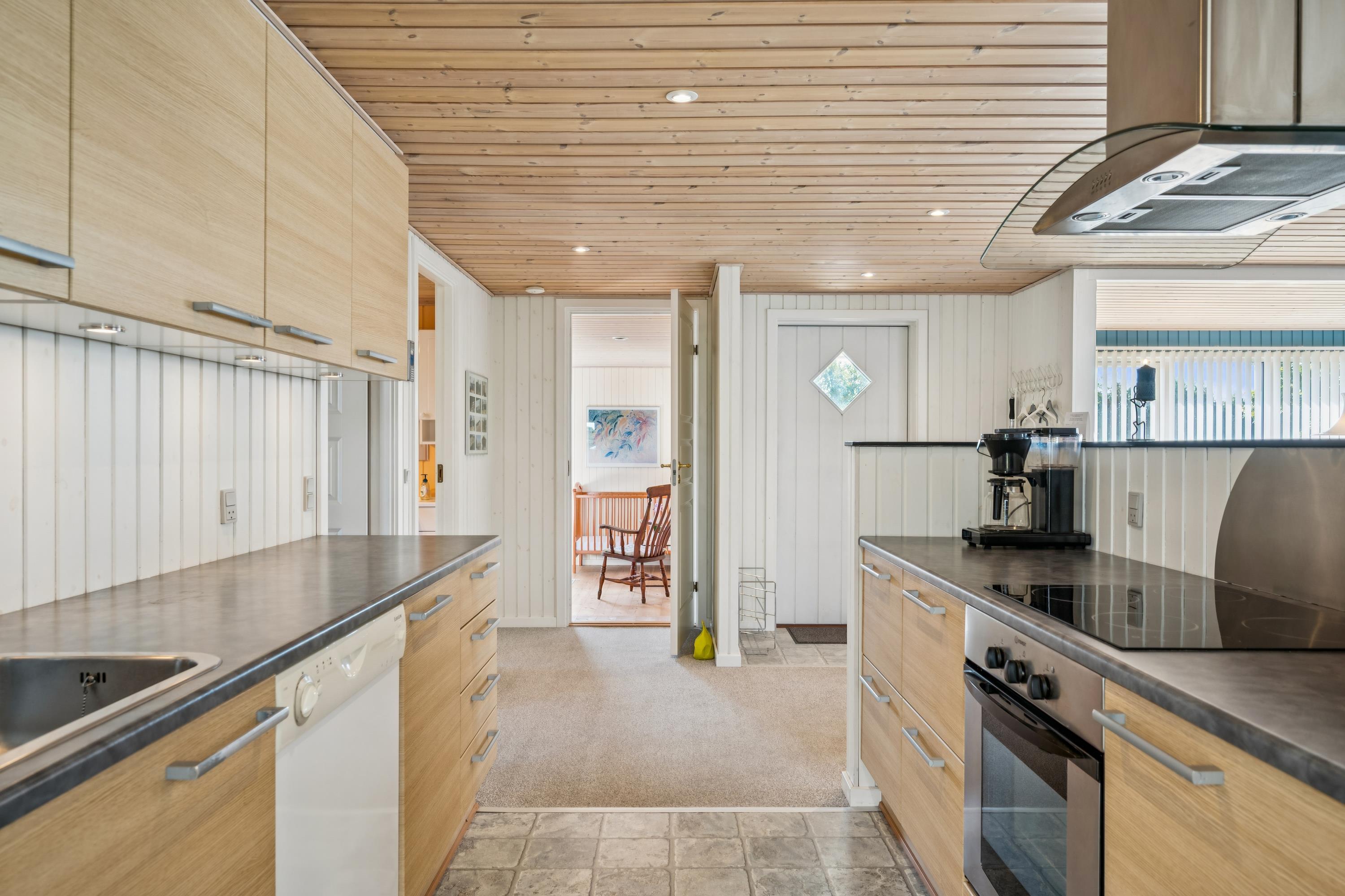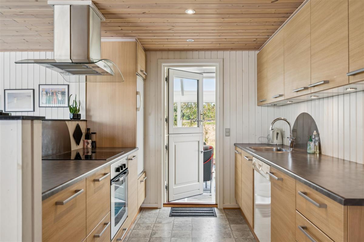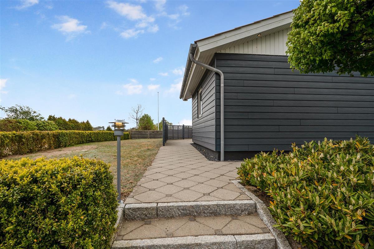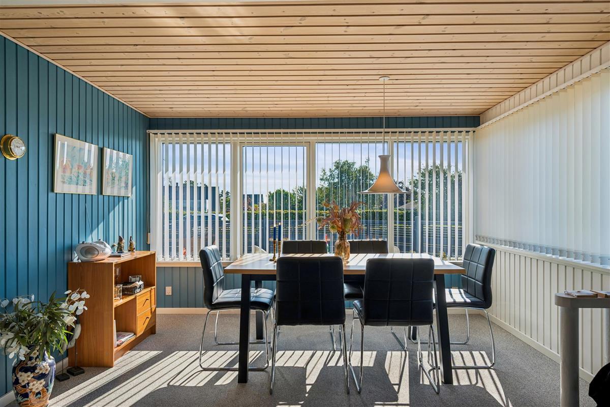 Close to Ebeltoft town and near the beach, you will find this spacious, well-maintained, and continuously modernized holiday home. The house is elevated in the northern part of the large holiday home area between Ebeltoft and Øer. Large, northwest-facing tiled terrace with a lovely conservatory where you can enjoy lunch and the view regardless of the weather, as well as a delightful, secluded, south-facing tiled terrace. Here, there are garden furniture and a grill.