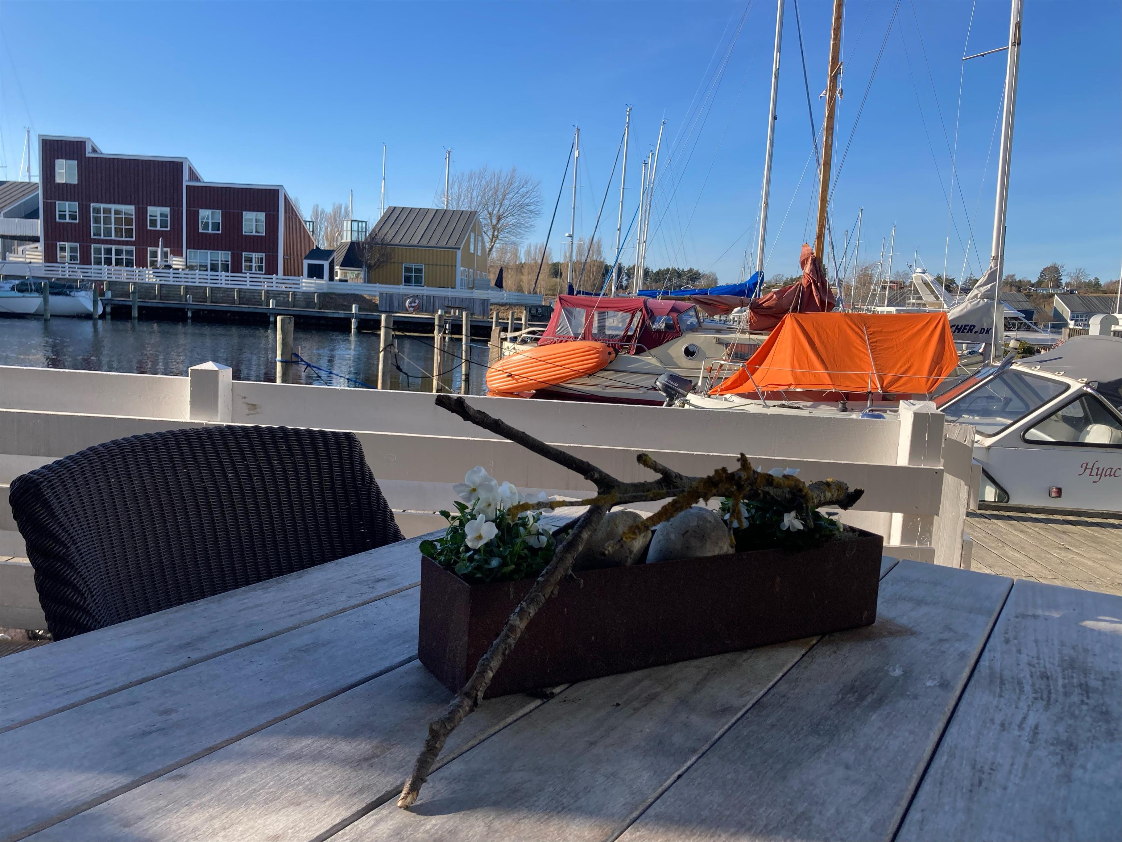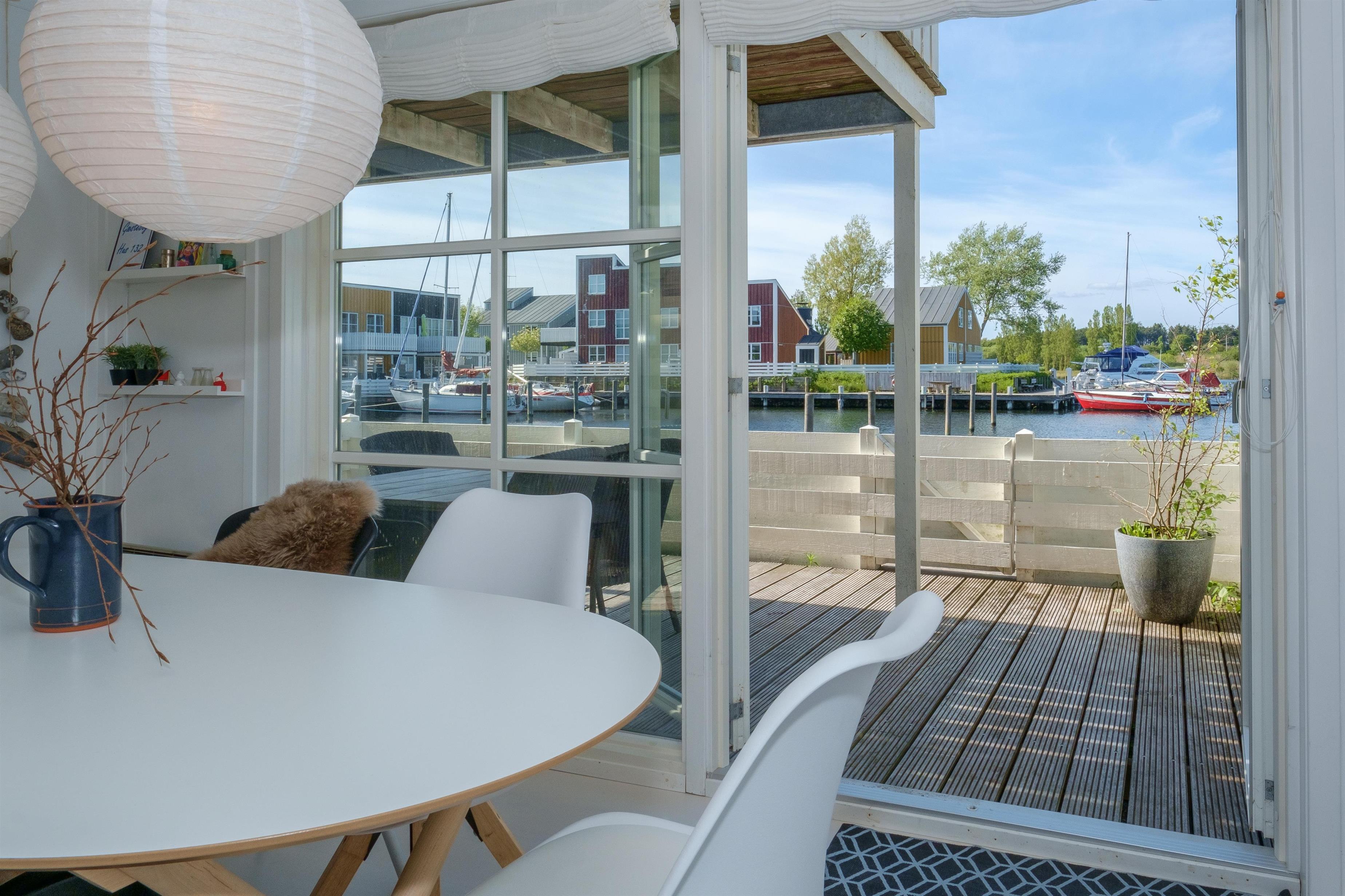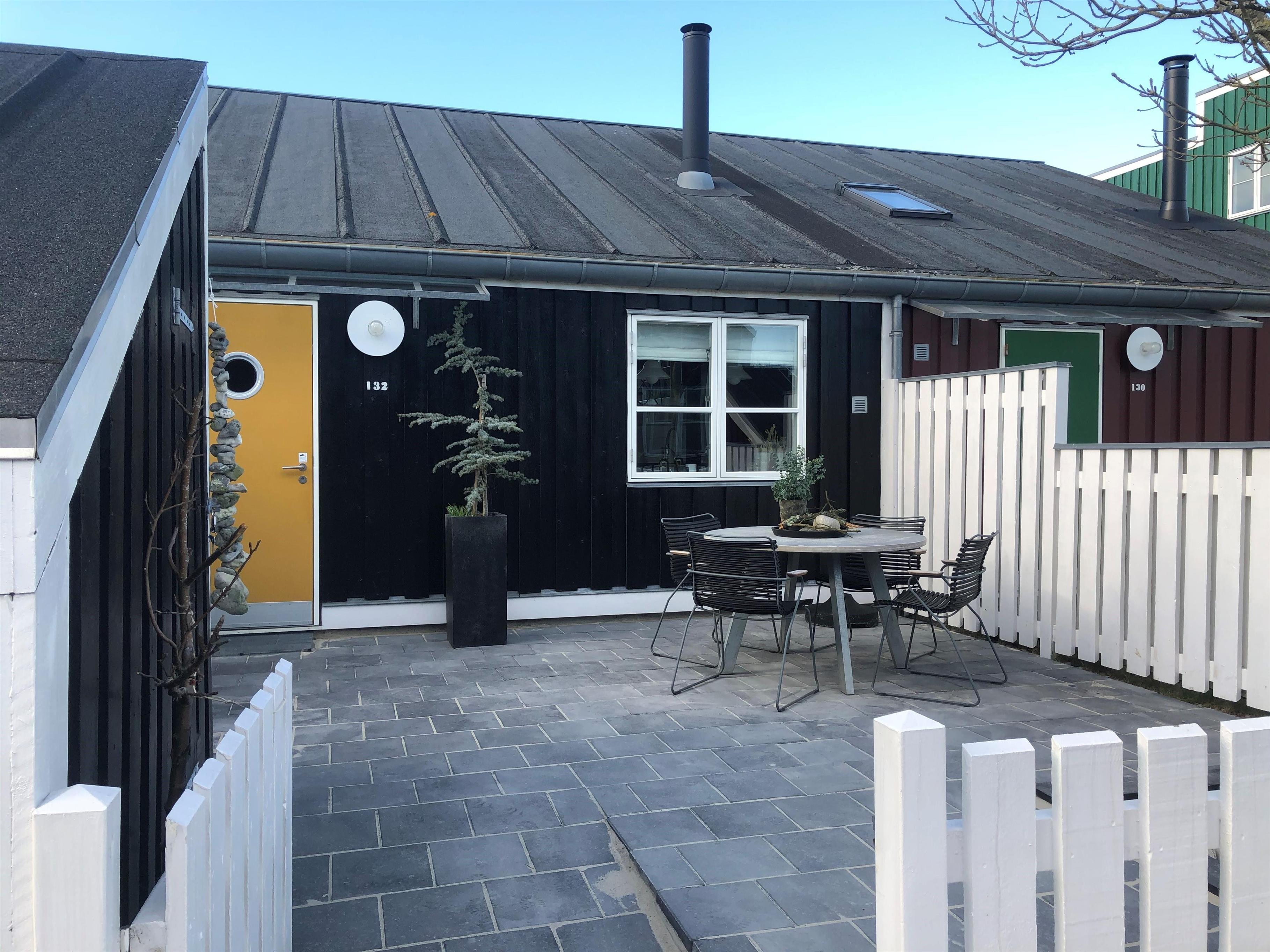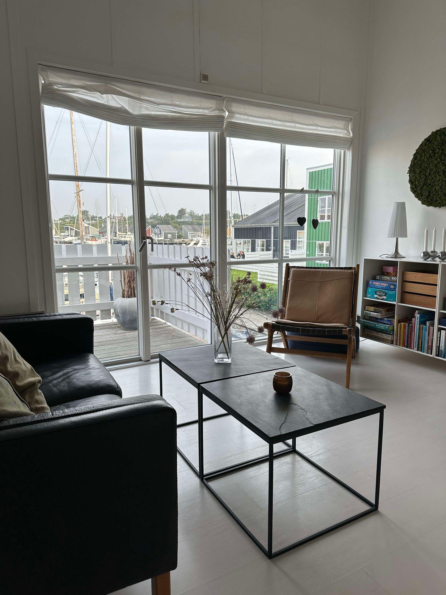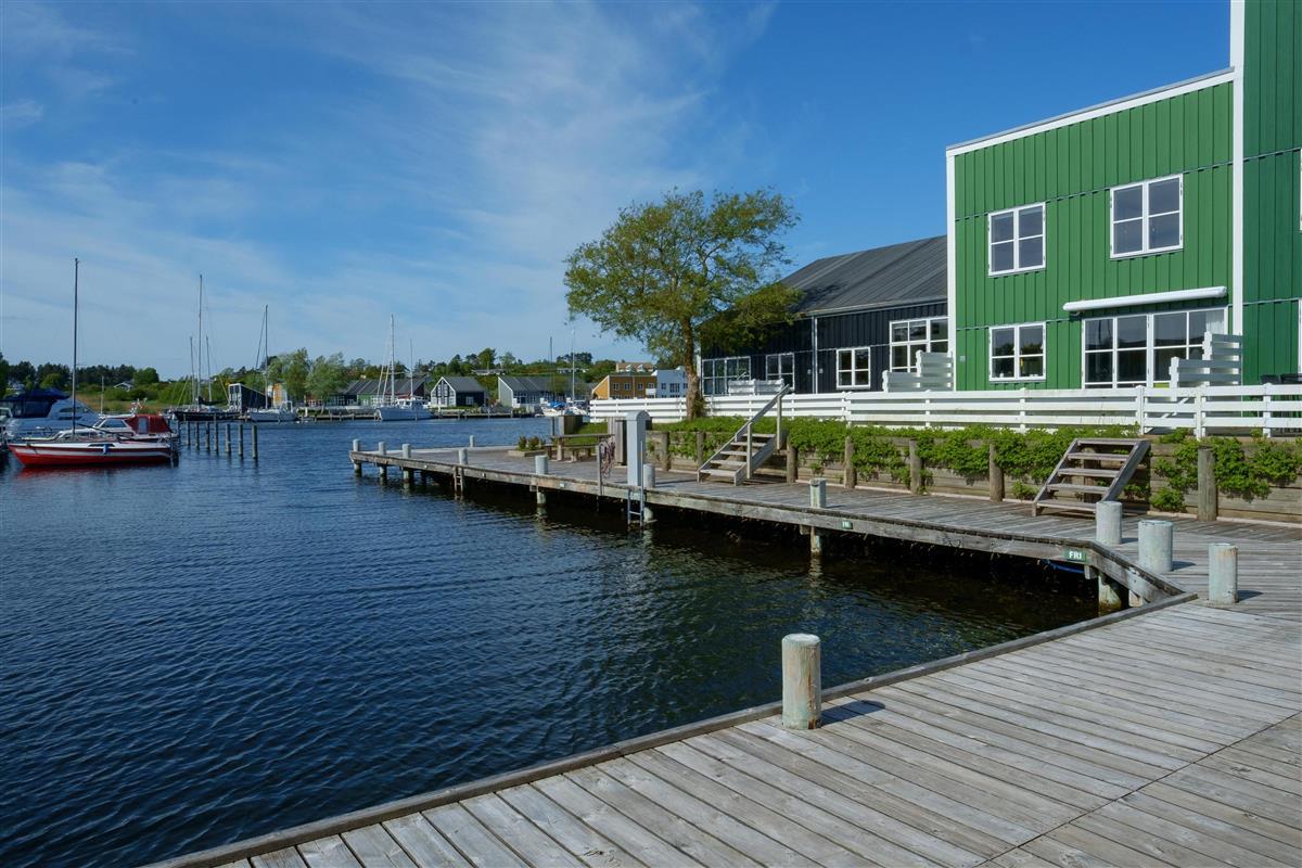 Renovated and exceptionally well-appointed holiday apartment on 2 levels located in the scenic Øer Maritime Holiday Village, with a delightful view of the boat moorings from the east-facing wooden terrace and common area, as well as from the balcony and living room on the 1st floor. The house is equipped with garden furniture, sun loungers, a parasol, and a grill. Additionally, the house features a lovely, tiled courtyard by the entrance door to the west.
