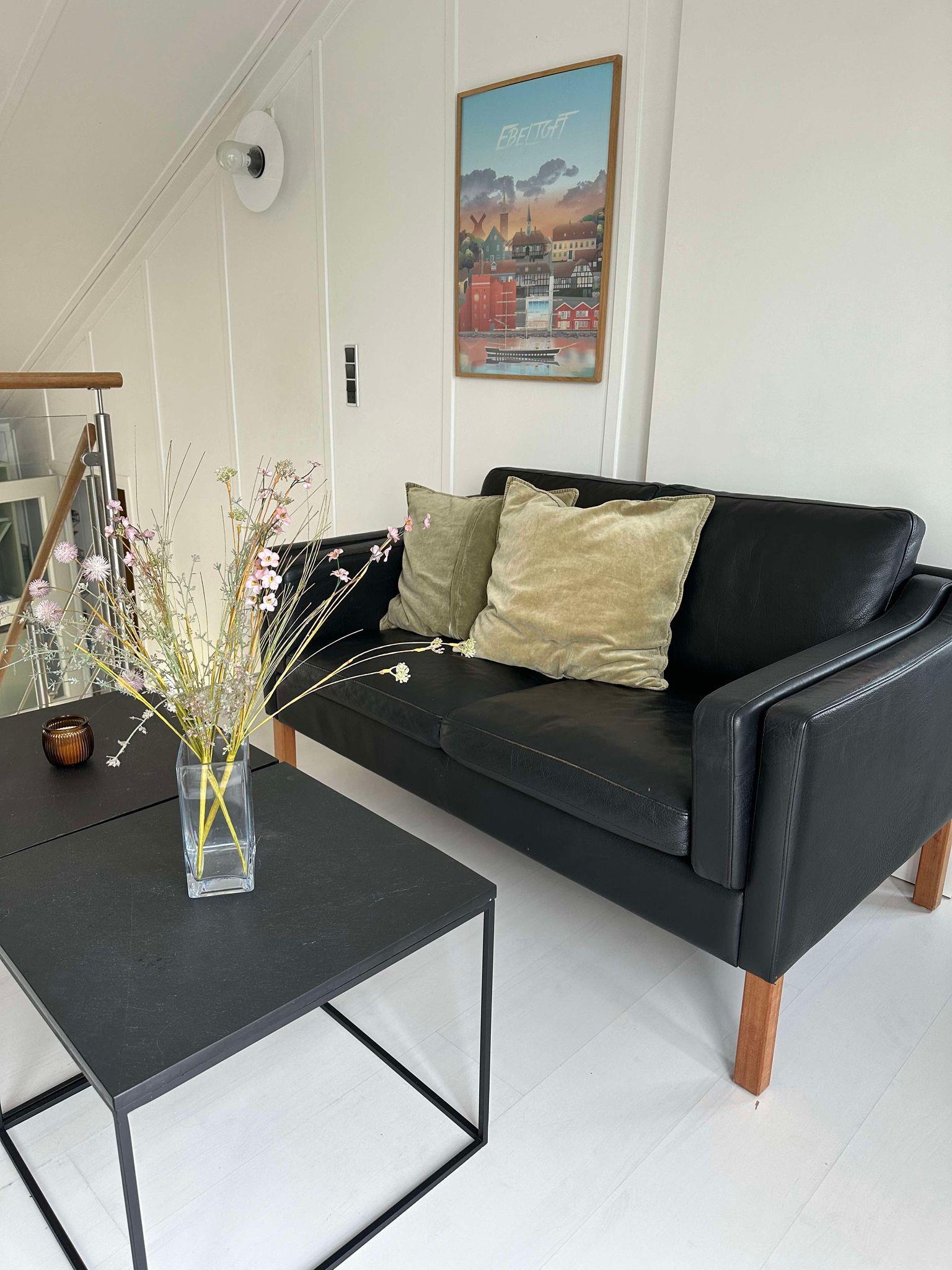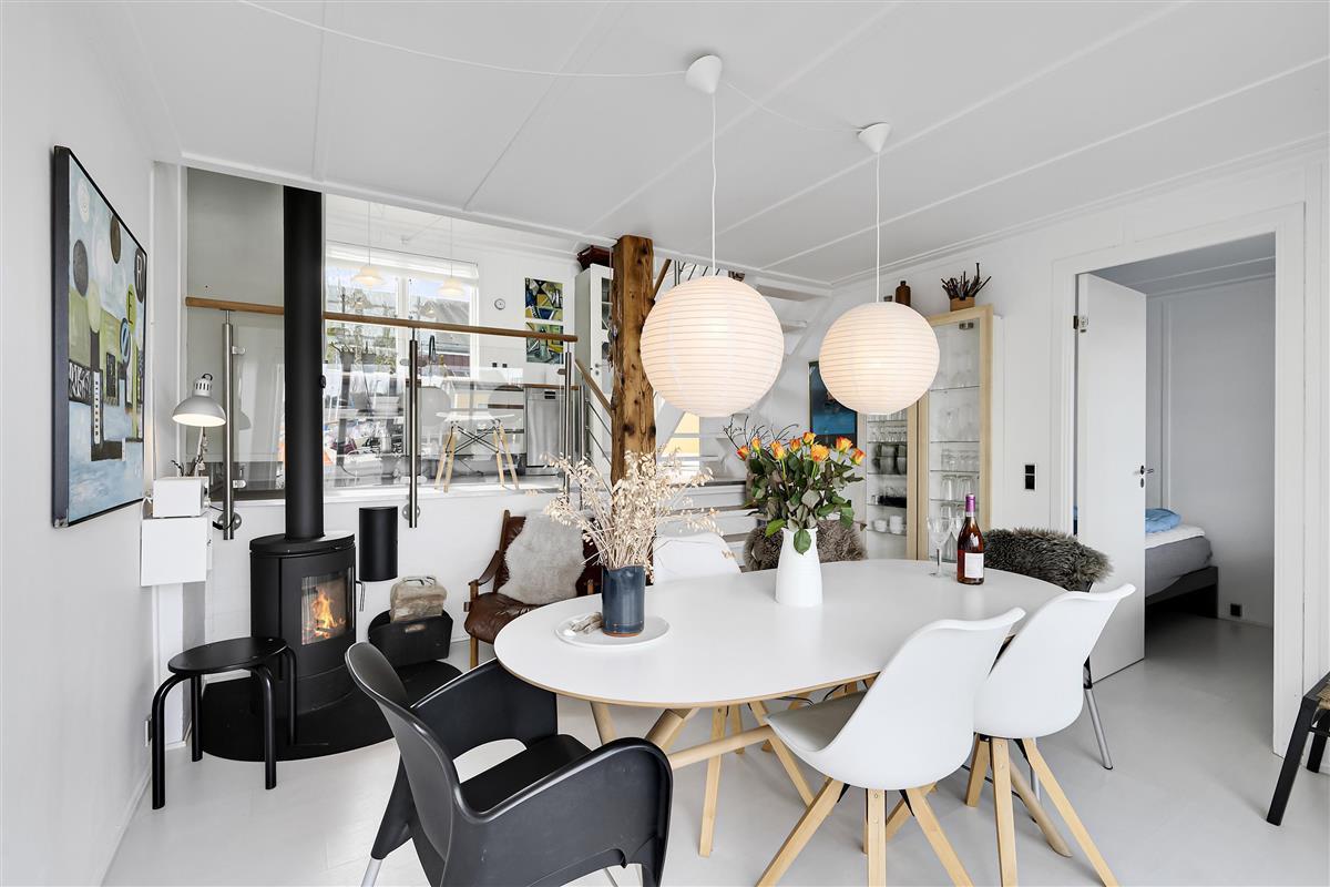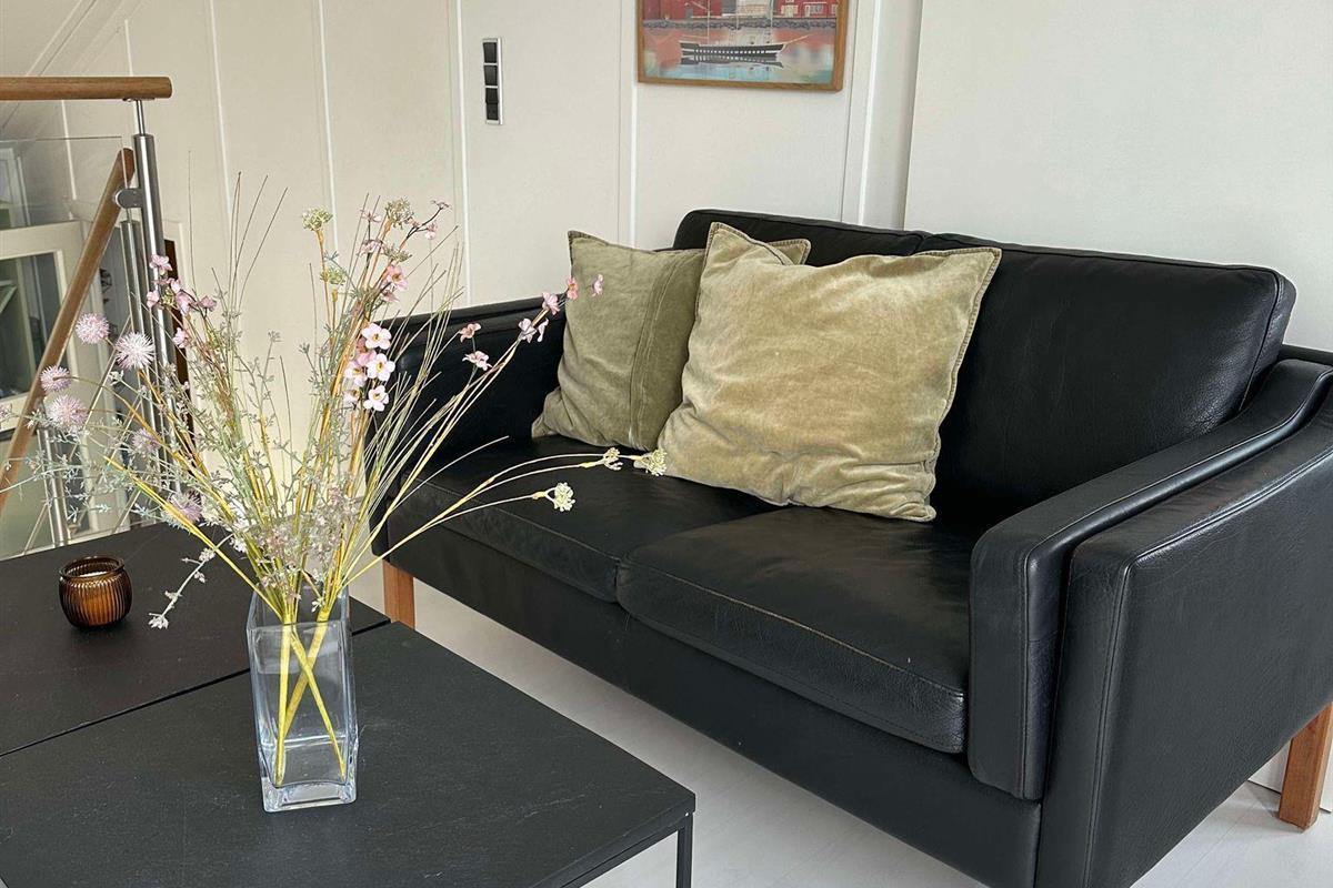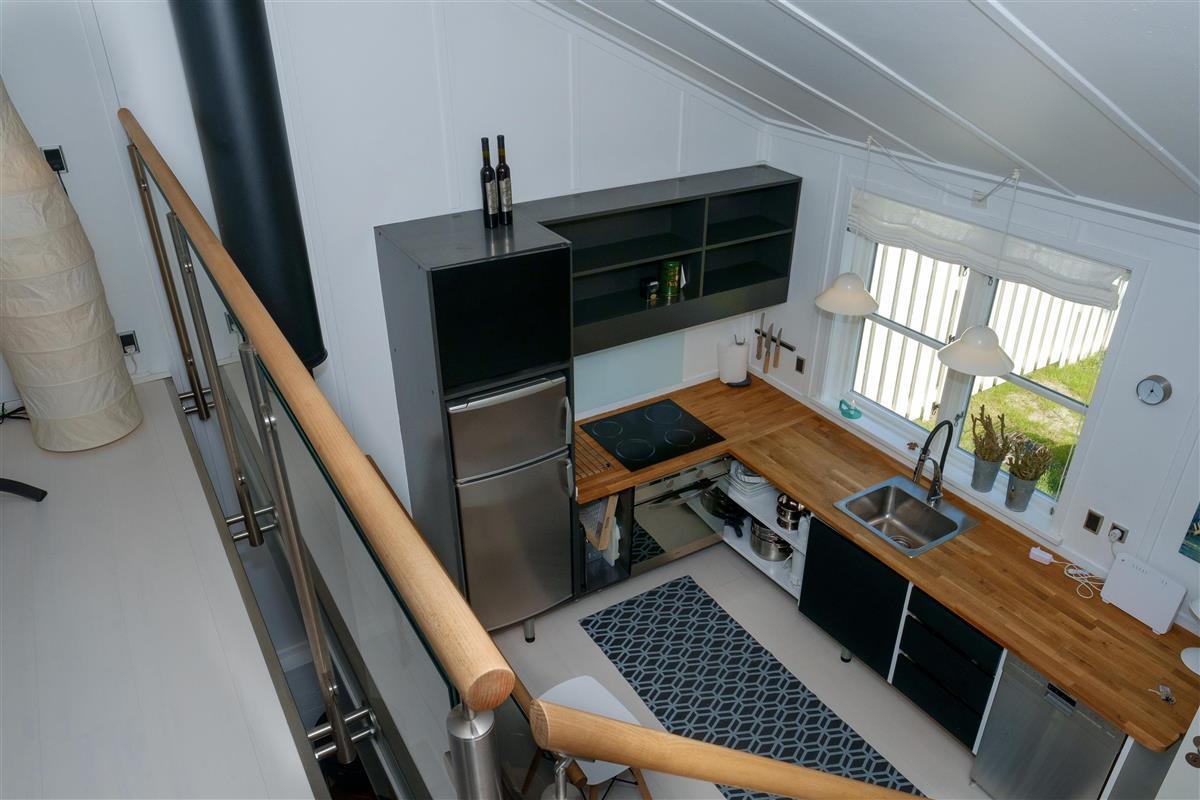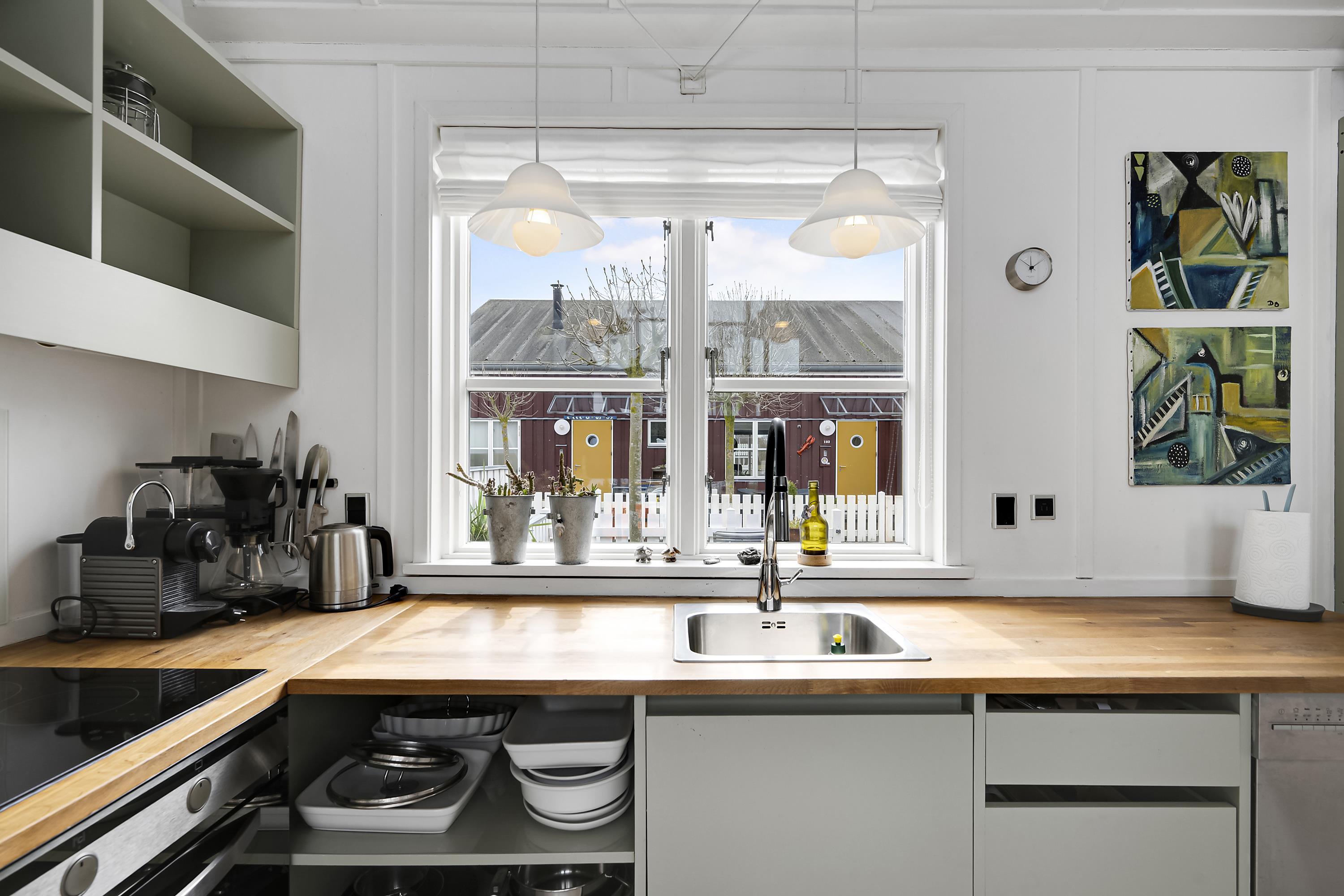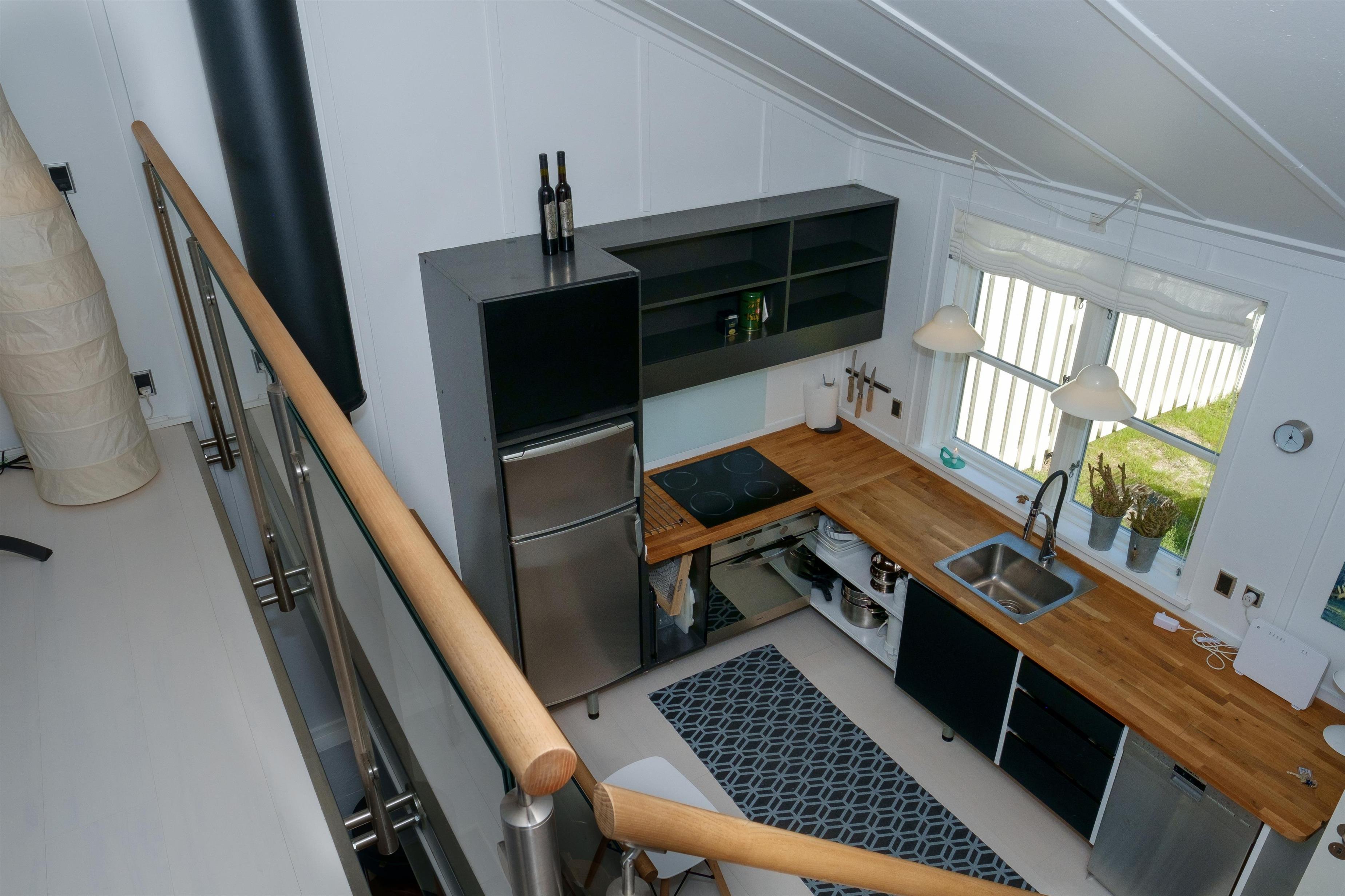 Renovated and exceptionally well-appointed holiday apartment on 2 levels located in the scenic Øer Maritime Holiday Village, with a delightful view of the boat moorings from the east-facing wooden terrace and common area, as well as from the balcony and living room on the 1st floor. The house is equipped with garden furniture, sun loungers, a parasol, and a grill. Additionally, the house features a lovely, tiled courtyard by the entrance door to the west.