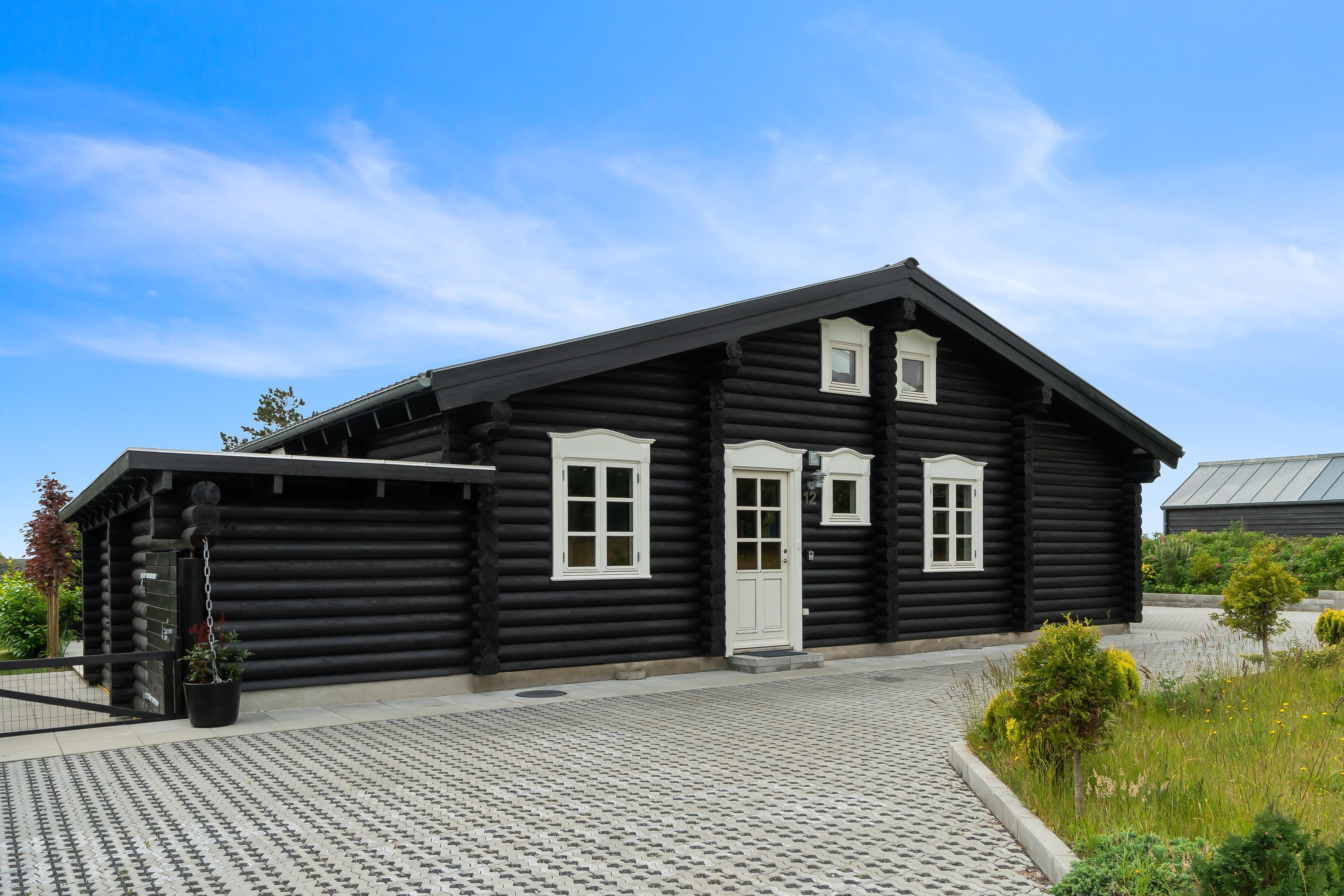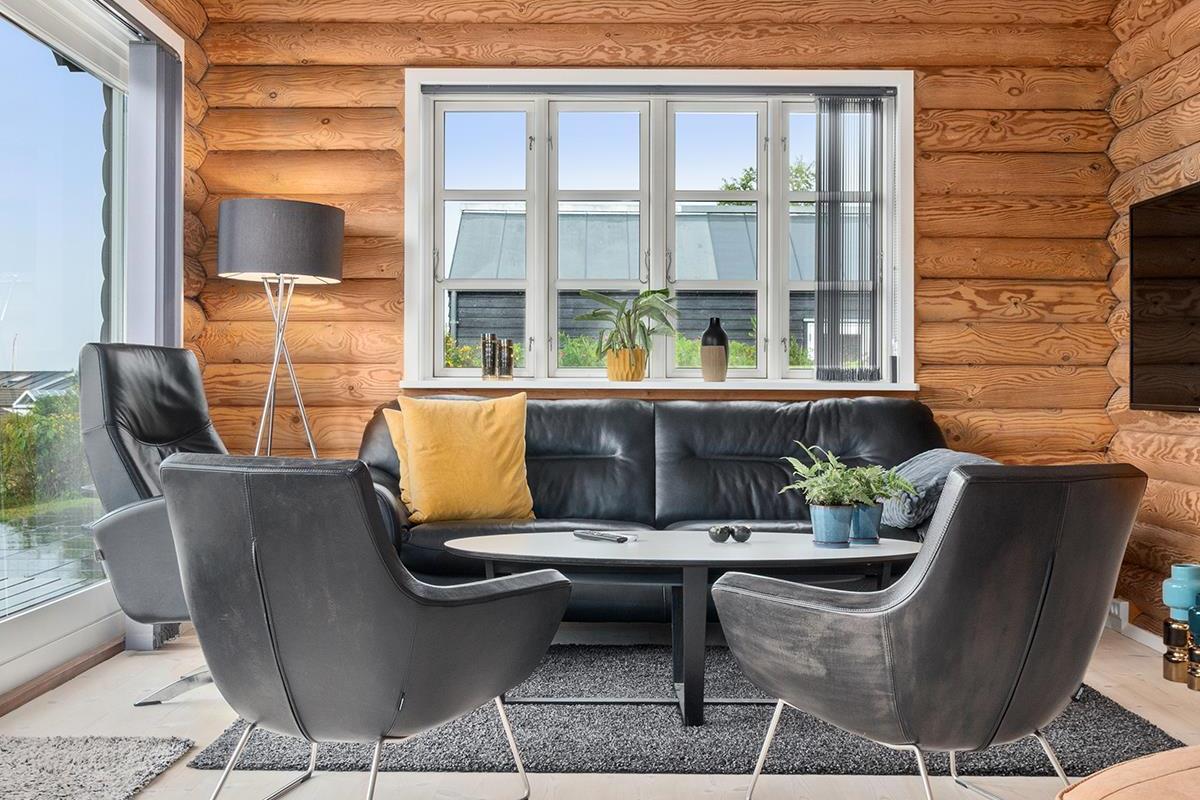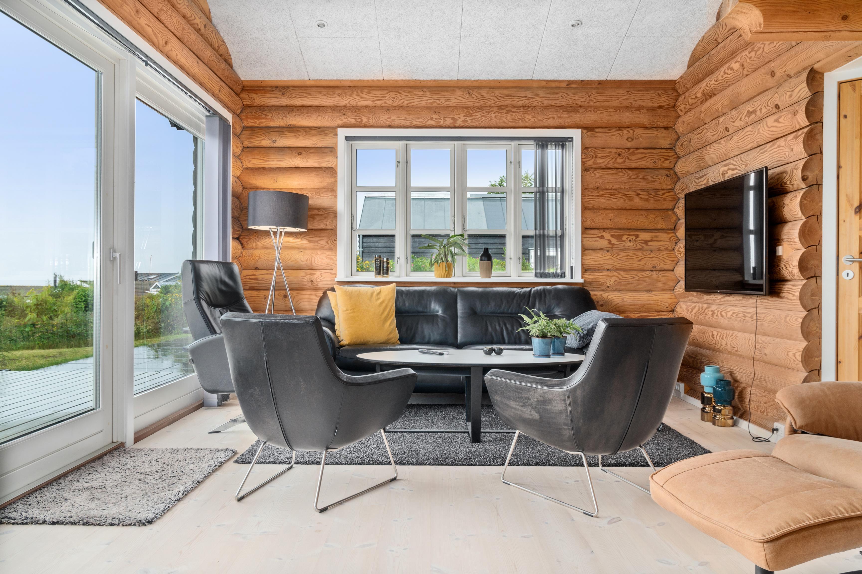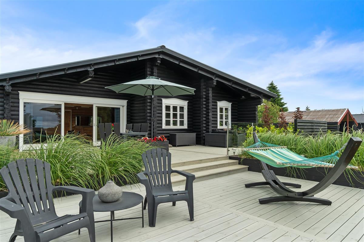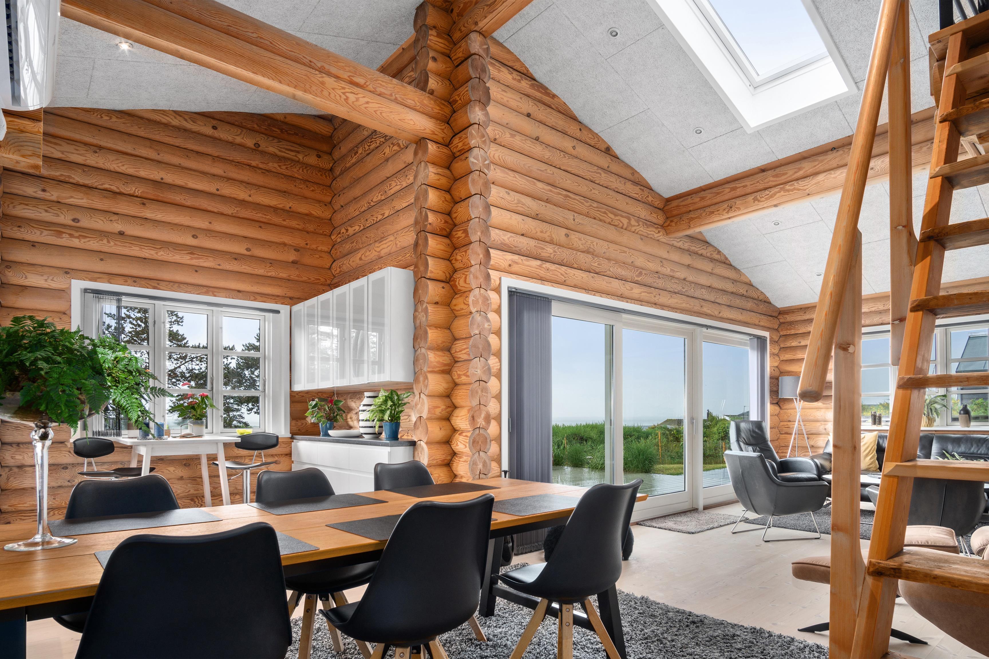 Only 5 minutes drive from Ebeltoft, you will find this completely unique and beautiful log cabin, and already when you step into the entrance, you sense the very special atmosphere that you find in this house. Here, you will find a really lovely, cozy, and tastefully furnished living room with an exit to a fantastic terrace with the most beautiful view of the water and plenty of garden furniture.