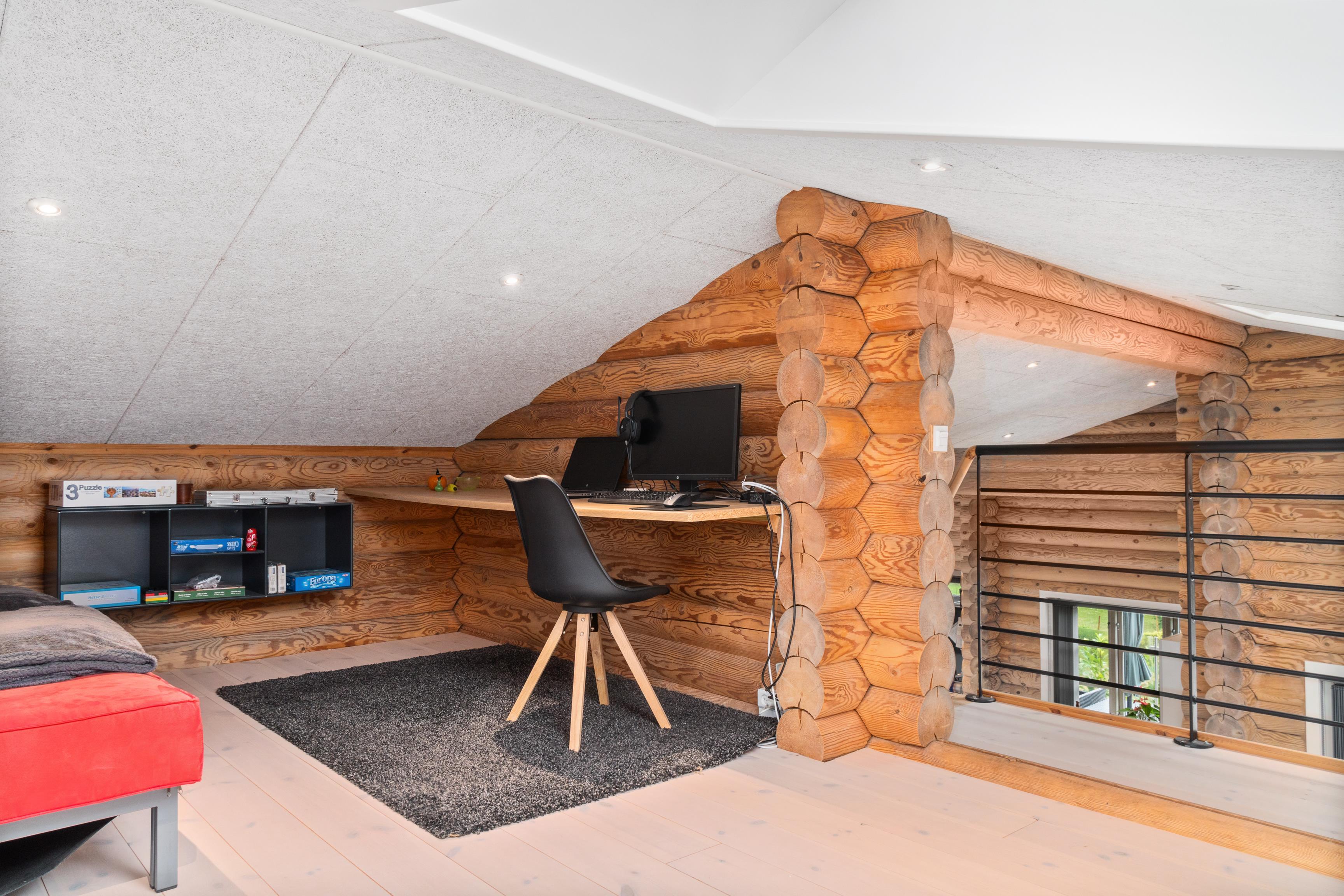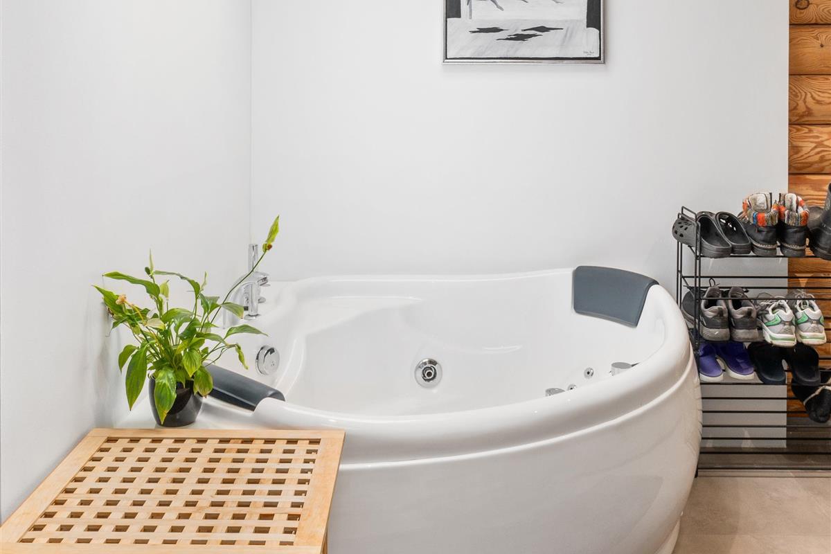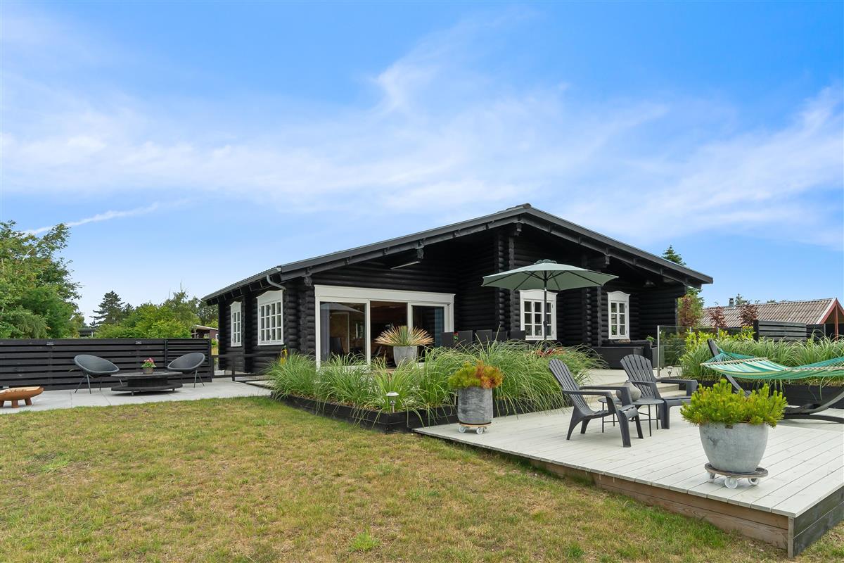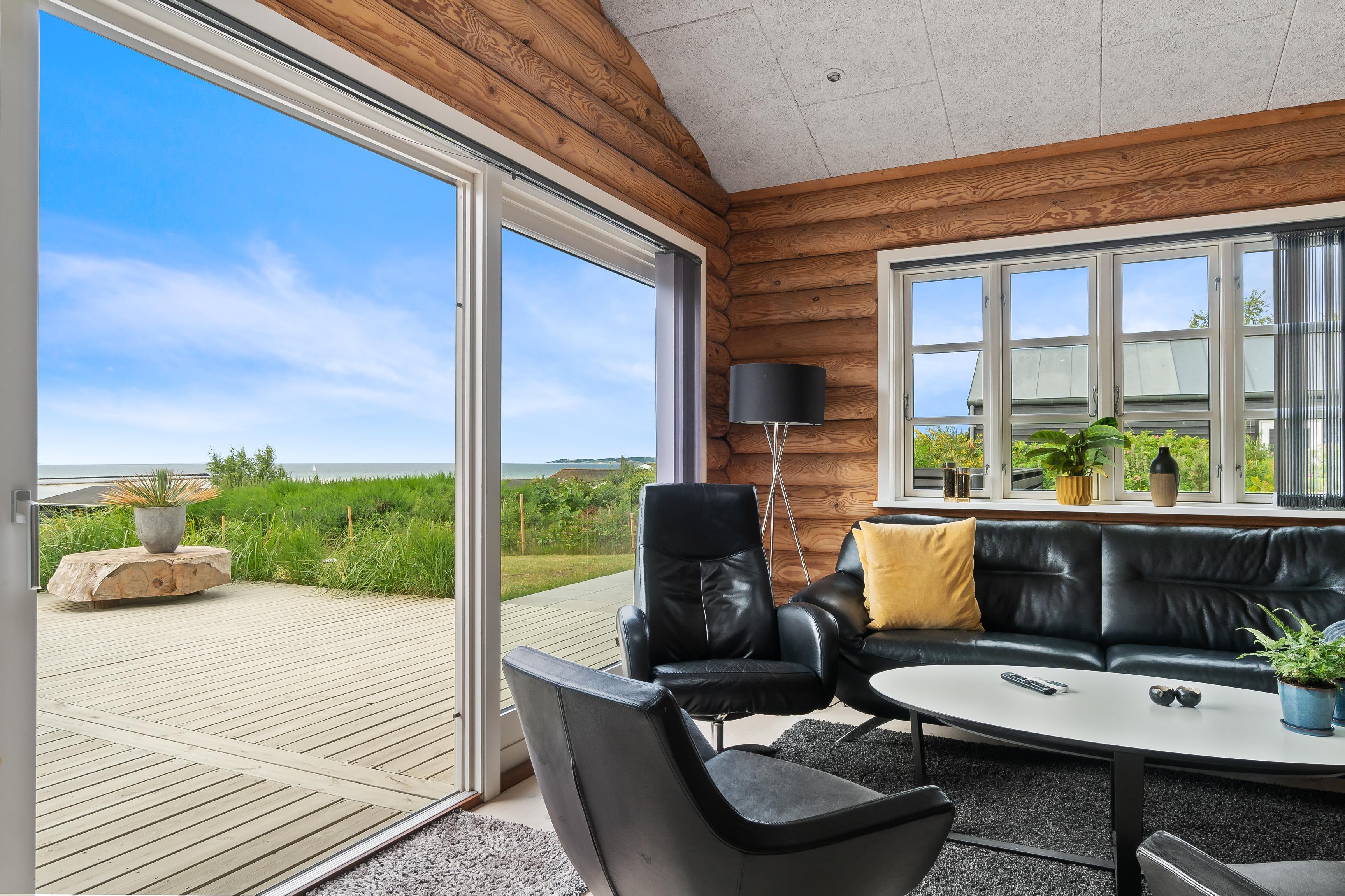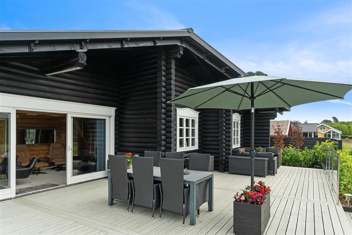 Only 5 minutes drive from Ebeltoft, you will find this completely unique and beautiful log cabin, and already when you step into the entrance, you sense the very special atmosphere that you find in this house. Here, you will find a really lovely, cozy, and tastefully furnished living room with an exit to a fantastic terrace with the most beautiful view of the water and plenty of garden furniture.