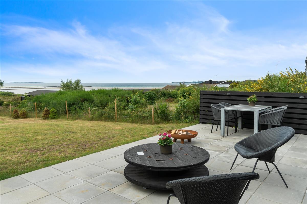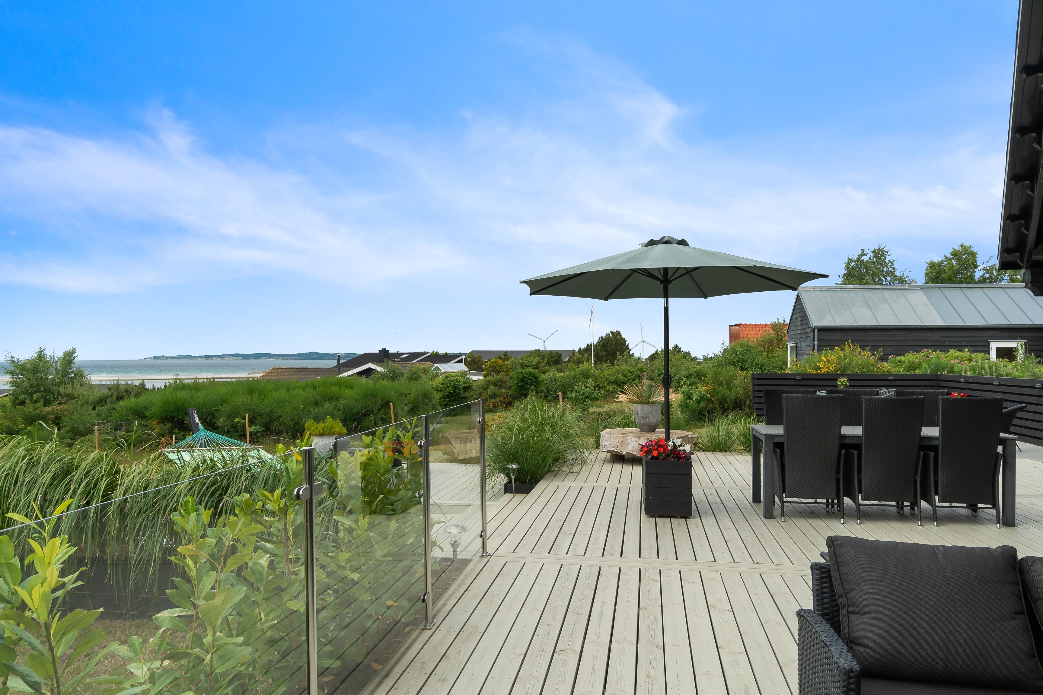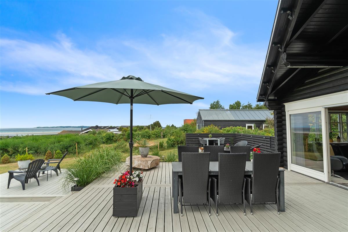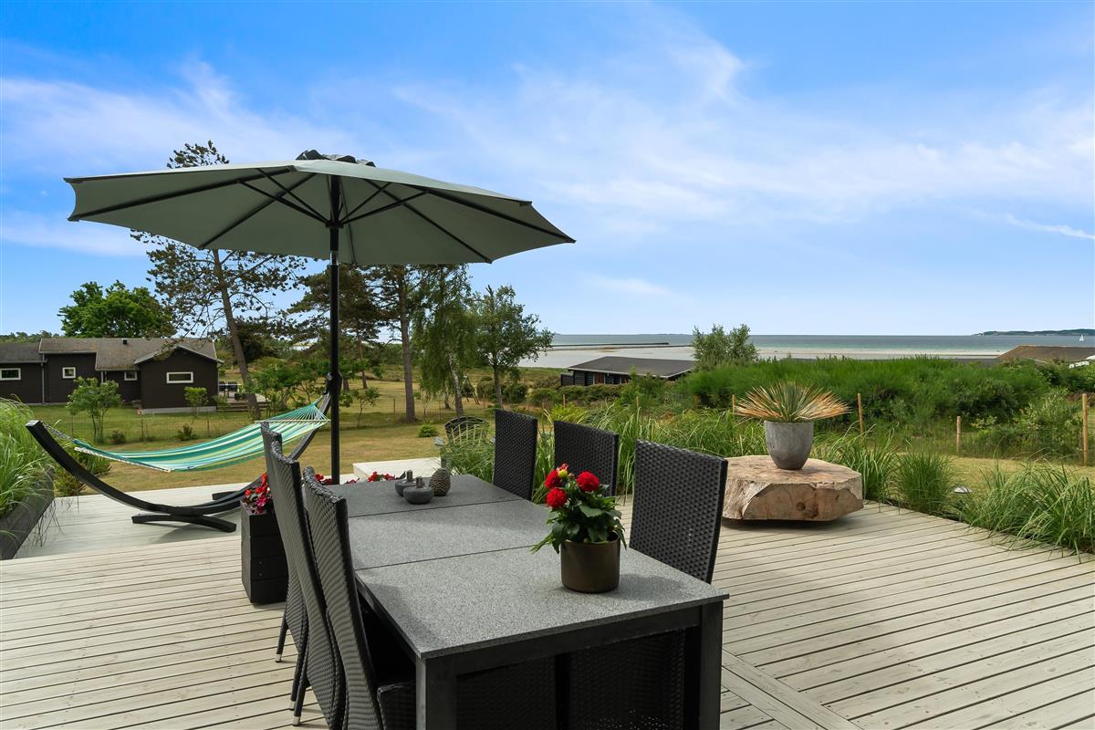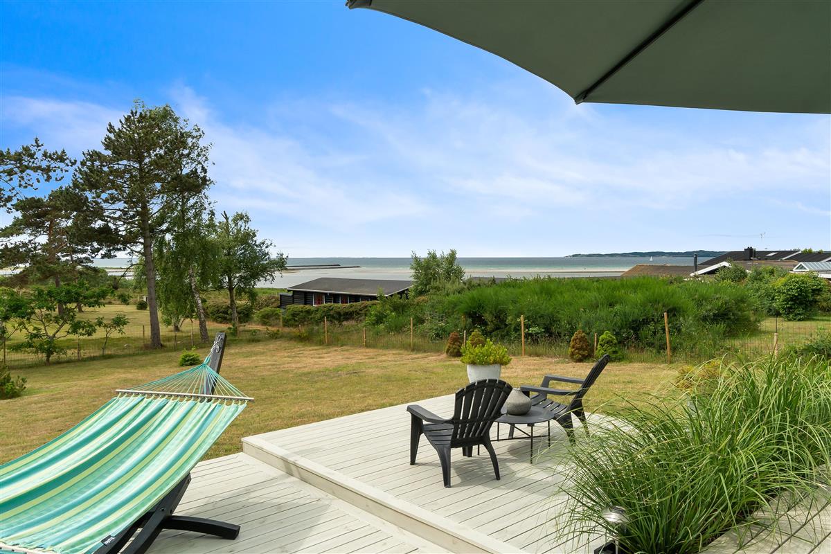 In connection with the living room, you will find the beautiful and well-equipped kitchen, from where there is an exit to another terrace with garden furniture. The sleeping places in the house are distributed in three beautiful bedrooms - all with double beds, and from one of the bedrooms, there is direct access to a beautiful bathroom where there is a separate toilet, and a few steps down, you will find the house's spa bath. Here, there is also access to both a washing machine and a dryer. The last two sleeping places are on a large loft with a good double sofa bed. There is another bathroom with a shower. A truly beautiful holiday home for the large family or for two smaller families.The house is located on a lovely lot with the most wonderful sea view and invites to outdoor play and coziness. There are large terraces with good garden furniture and a grill.