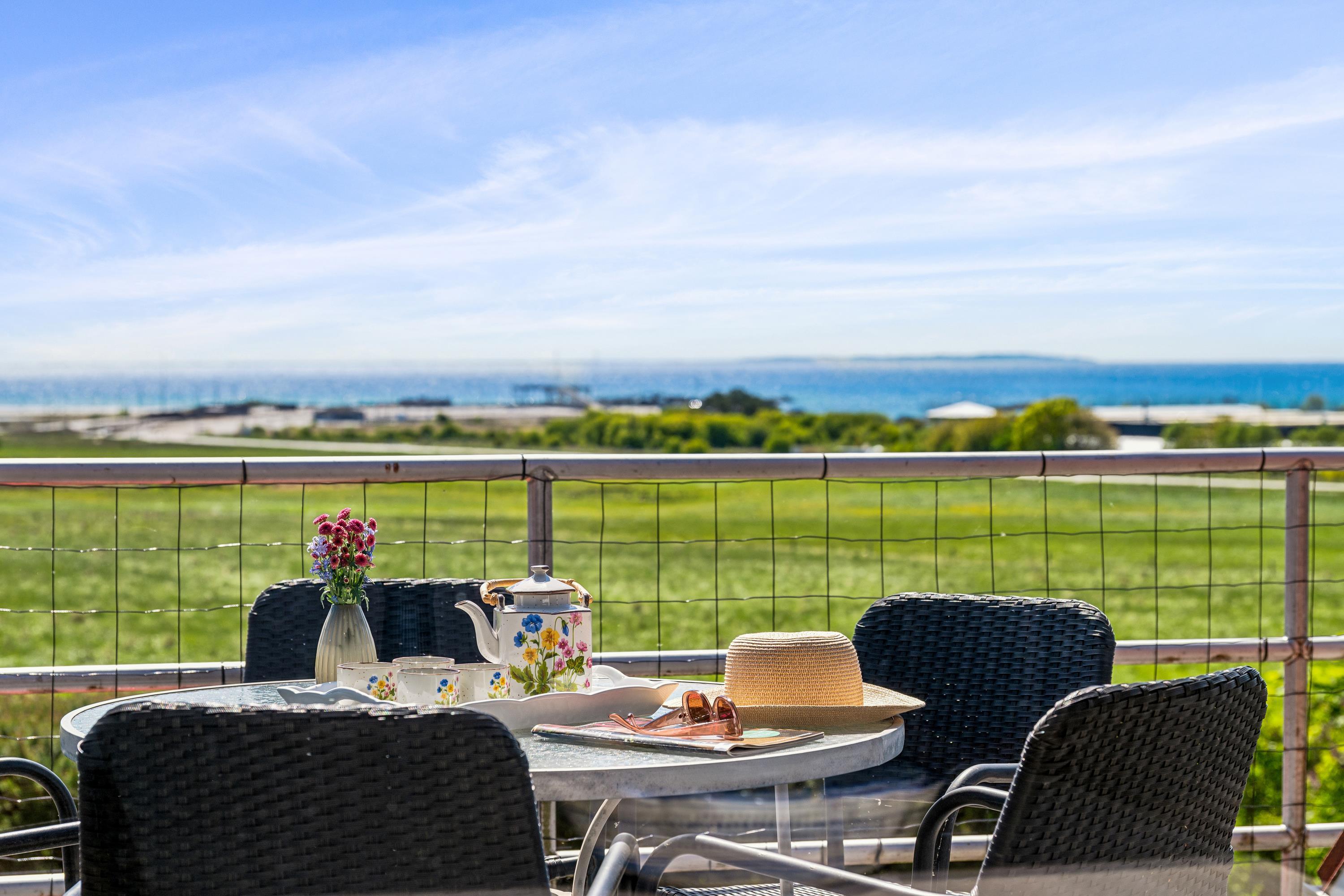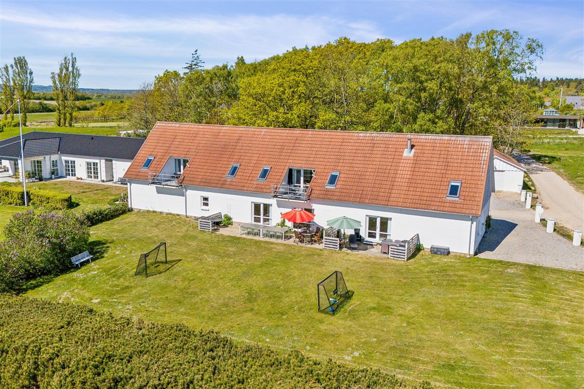 If you want to stay with multiple families or generations together, these four lovely holiday apartments in a well-renovated former stable building are a good choice. The apartments are well-maintained, bright, and inviting, situated high on an open natural plot with panoramic views of the Kattegat Sea and the hilly landscape south of Ebeltoft. Each apartment has either a terrace or balcony with garden furniture and a grill, and ground-floor apartments also have sun loungers. On the large, shared plot, there is a bonfire area, a swing set, and a sandbox for children.