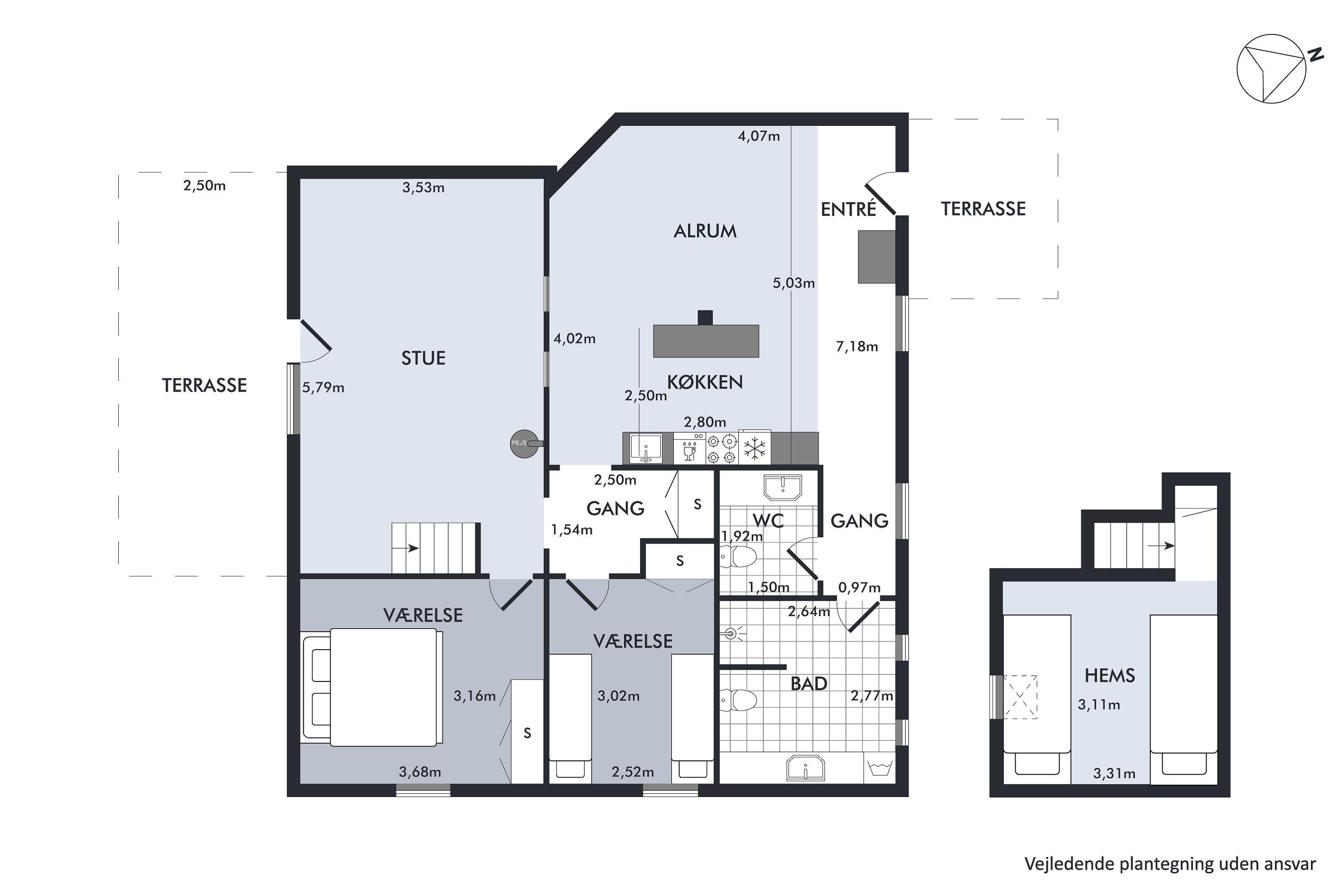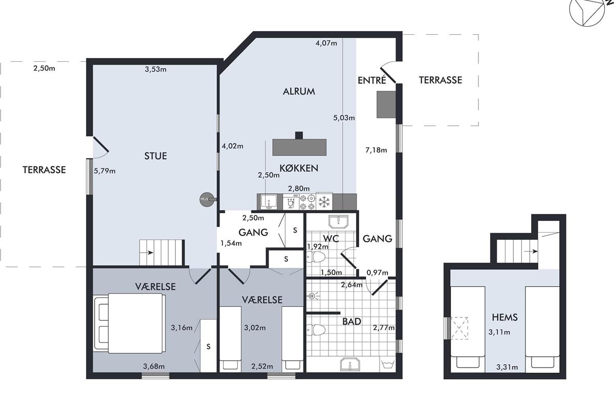 The two largest apartments both accommodate 7 people, and the two slightly smaller ones can each accommodate 6 people, for a total of 26 sleeping places. All four holiday apartments have spacious living rooms with TV with Danish (including TV2) and German channels, internet access, well-equipped kitchens, and bathrooms, as well as good, bright bedrooms. Additionally, there is a crib and a high chair for the youngest guests.