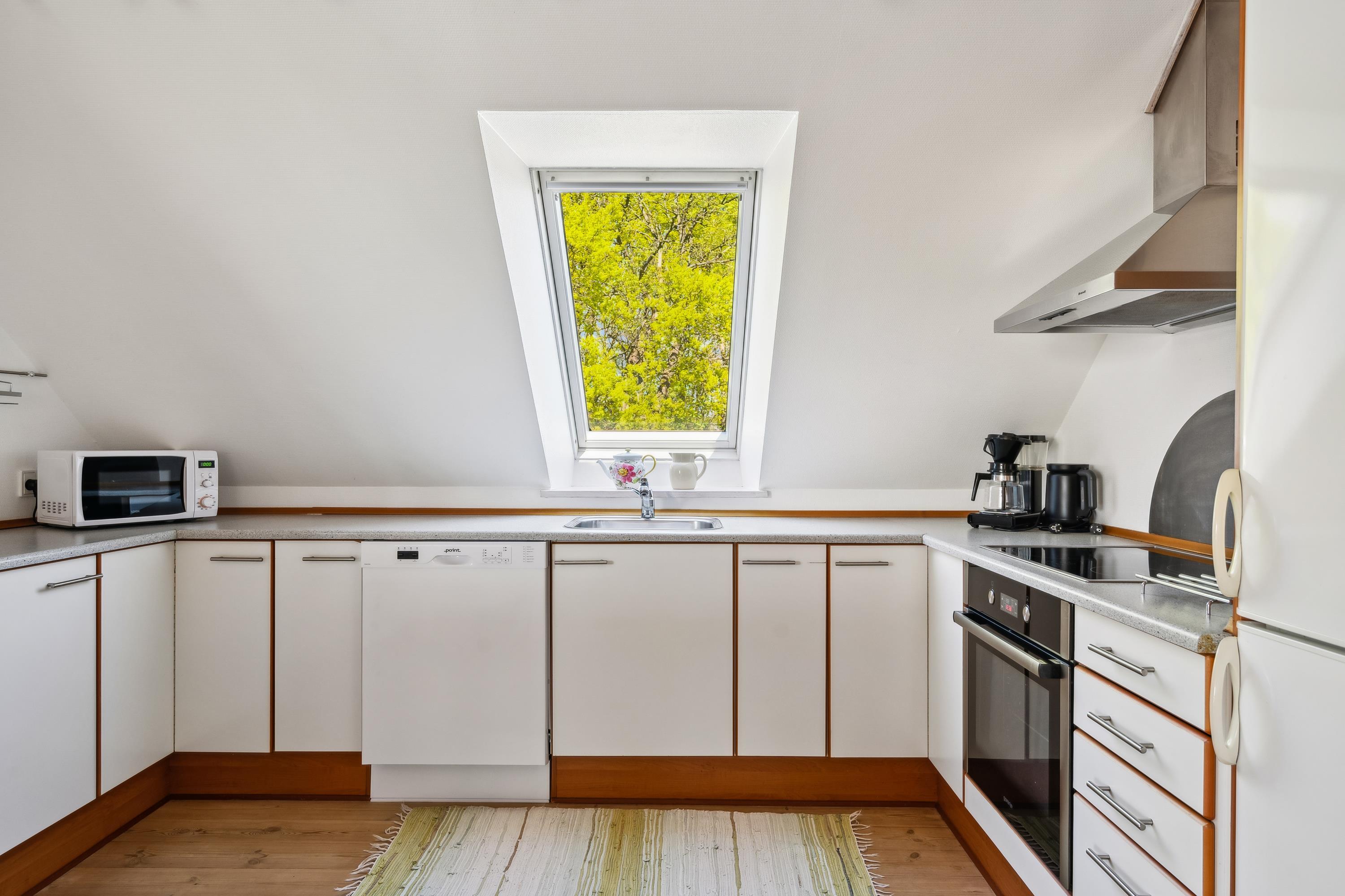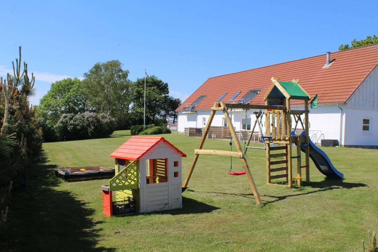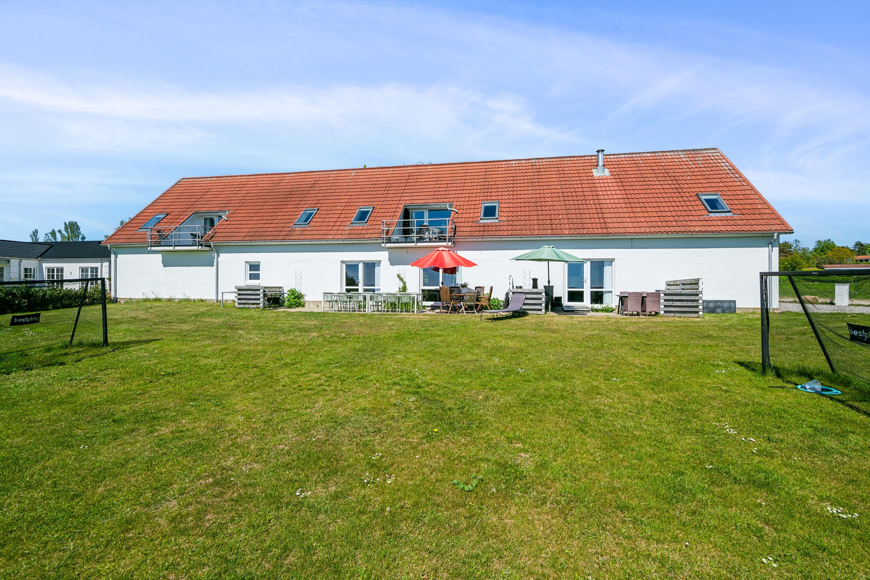 Well-maintained, bright, and inviting holiday apartment on an elevated, open natural plot with panoramic views of the Kattegat Sea and the hilly landscape south of Ebeltoft. The apartment is on the 1st floor and has a southwest-facing balcony with garden furniture and a grill. On the large lot, shared with three other holiday apartments, there is a bonfire area as well as a swing set and sandbox for the children.