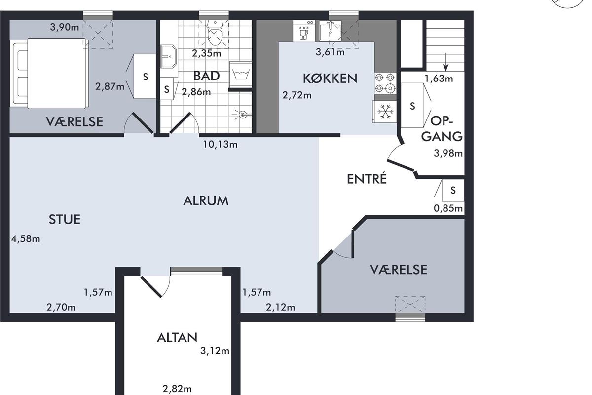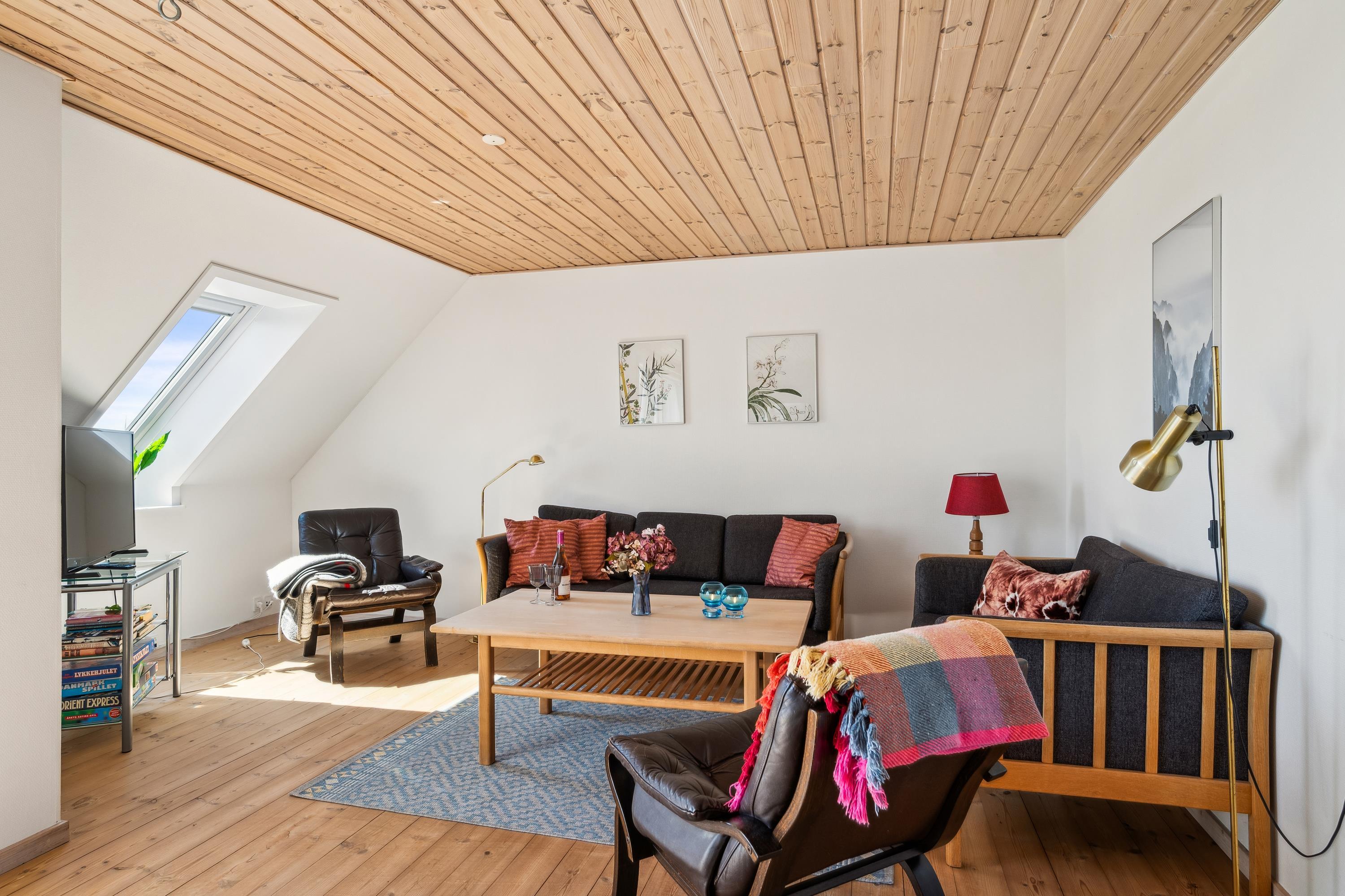 The apartment shares the main door with the ground floor apartment, and from the entrance, you ascend the stairs to your own entrance door, where you enter directly into the cozy living room in a semi-open connection with the kitchen. The living room has access to the balcony and accommodates a dining area for 6 people, a sofa corner with armchairs, and a TV with Danish free channels. Large kitchen with ample workspace, stove with ceramic hobs and oven, fridge/freezer, dishwasher, and microwave. The total of 6 sleeping places are distributed in 1 good, bright bedroom with a double bed, a slightly smaller room with 2 single beds, in addition to 2 sleeping places on a sofa bed in the living room. Nice, well-furnished bathroom with underfloor heating, shower, and washing machine. Internet access.