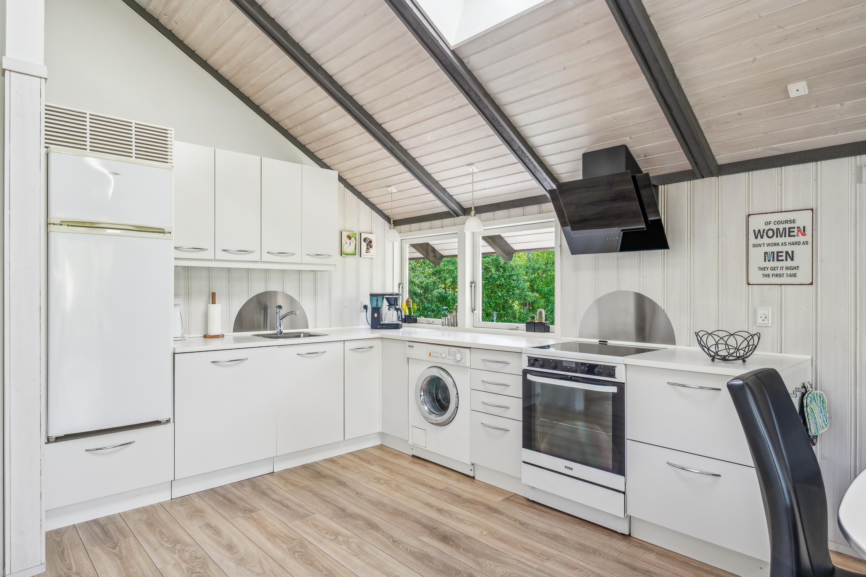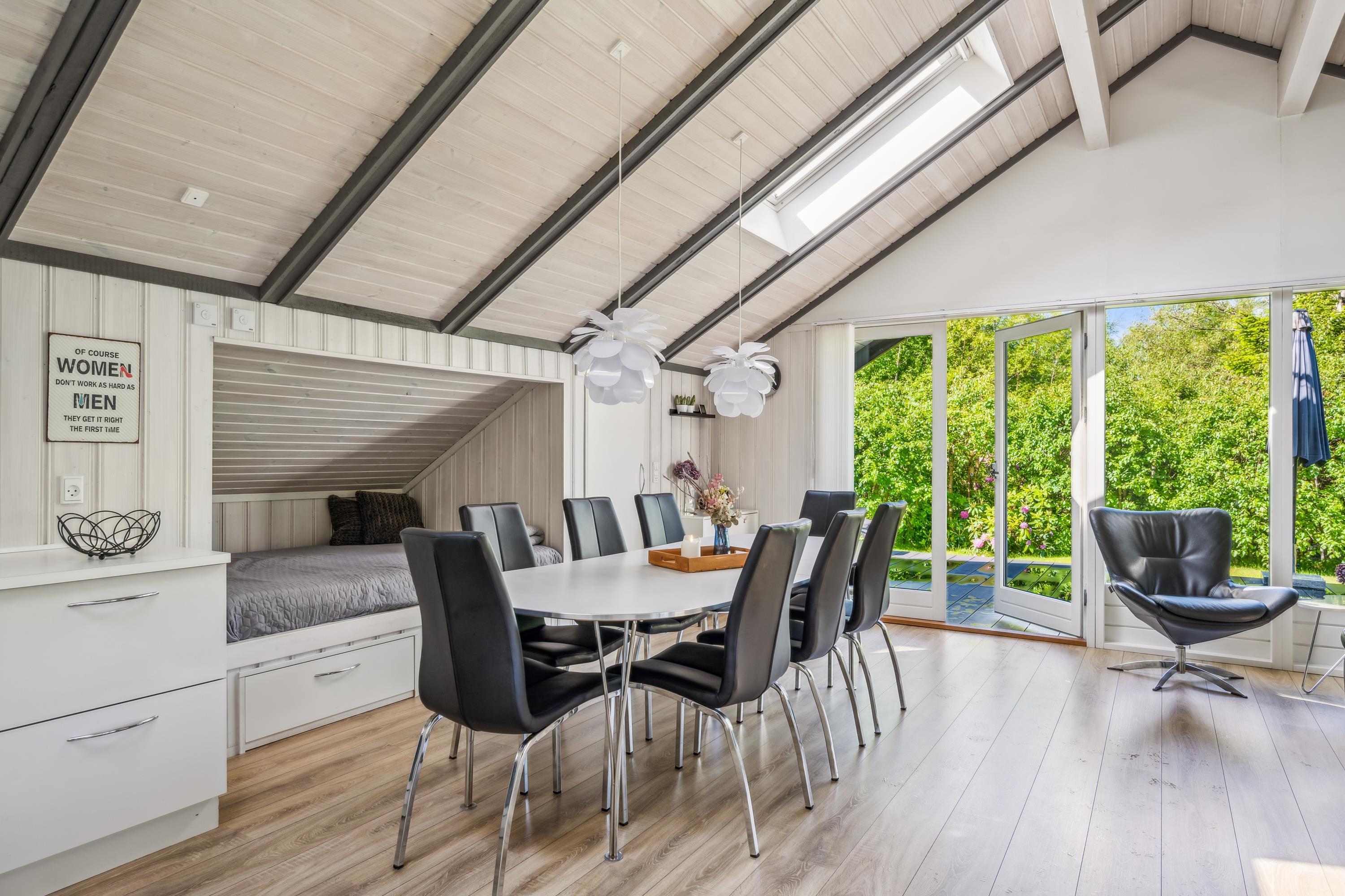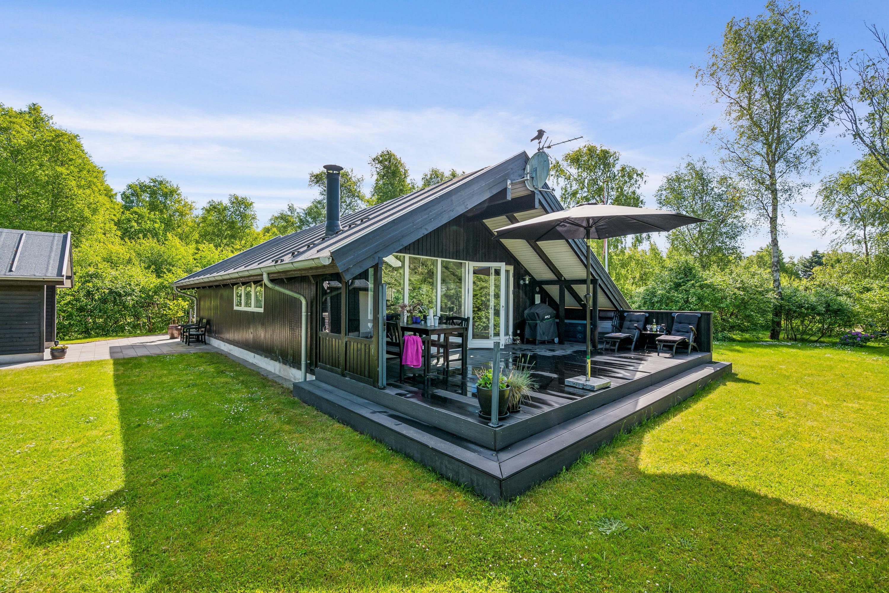 Not far from Ebeltoft, you’ll find this incredibly charming and well-maintained holiday home. It offers a bright and tastefully decorated living room with quality furniture and a wood-burning stove. From here, you have access to a lovely covered terrace with garden furniture and a barbecue.