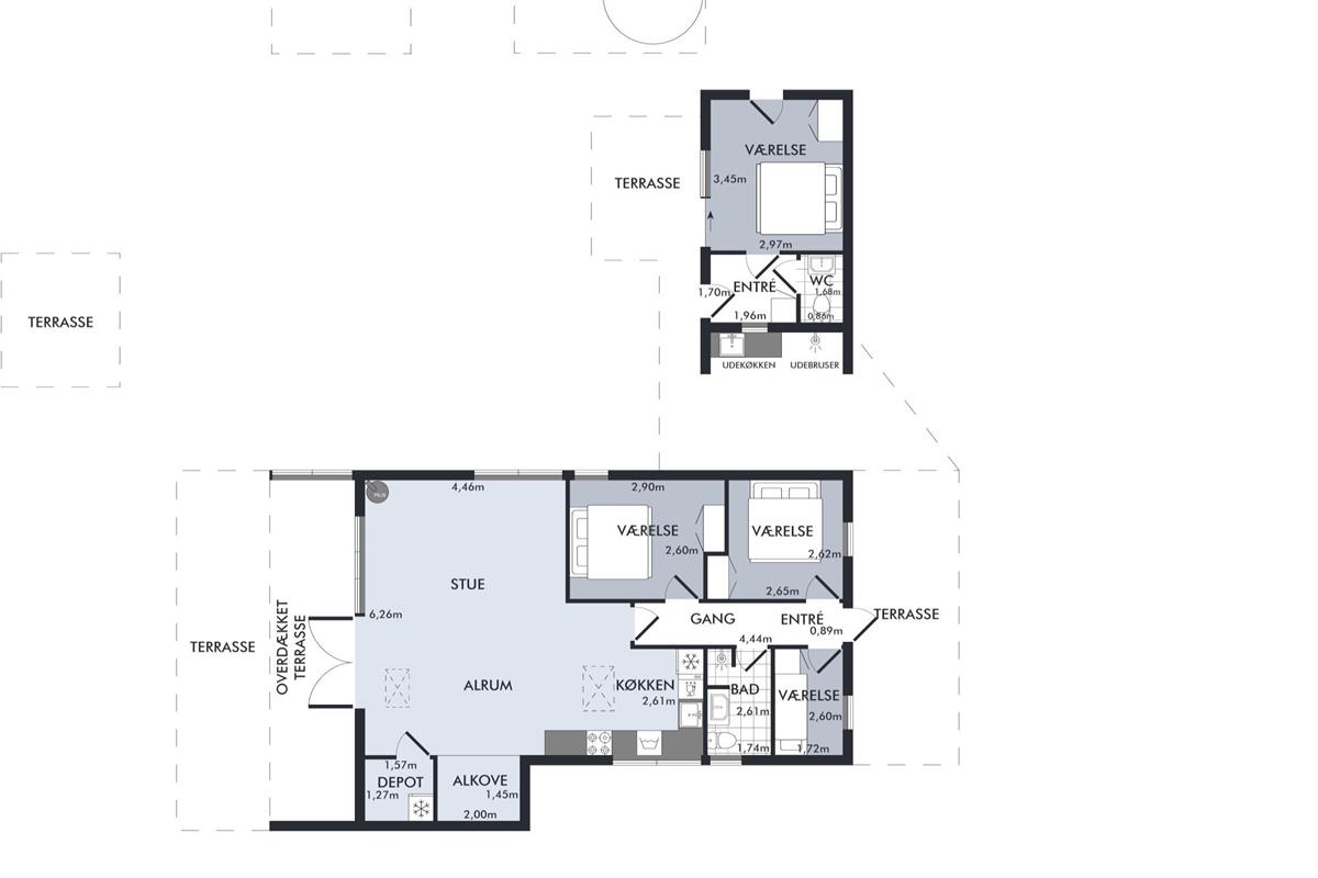 The property is situated on a well-kept plot with several attractive terraces. Near the annex, you’ll find a luxurious wildernes bath and a fire pit – perfect for cosy summer evenings. There’s also an outdoor sink and shower.