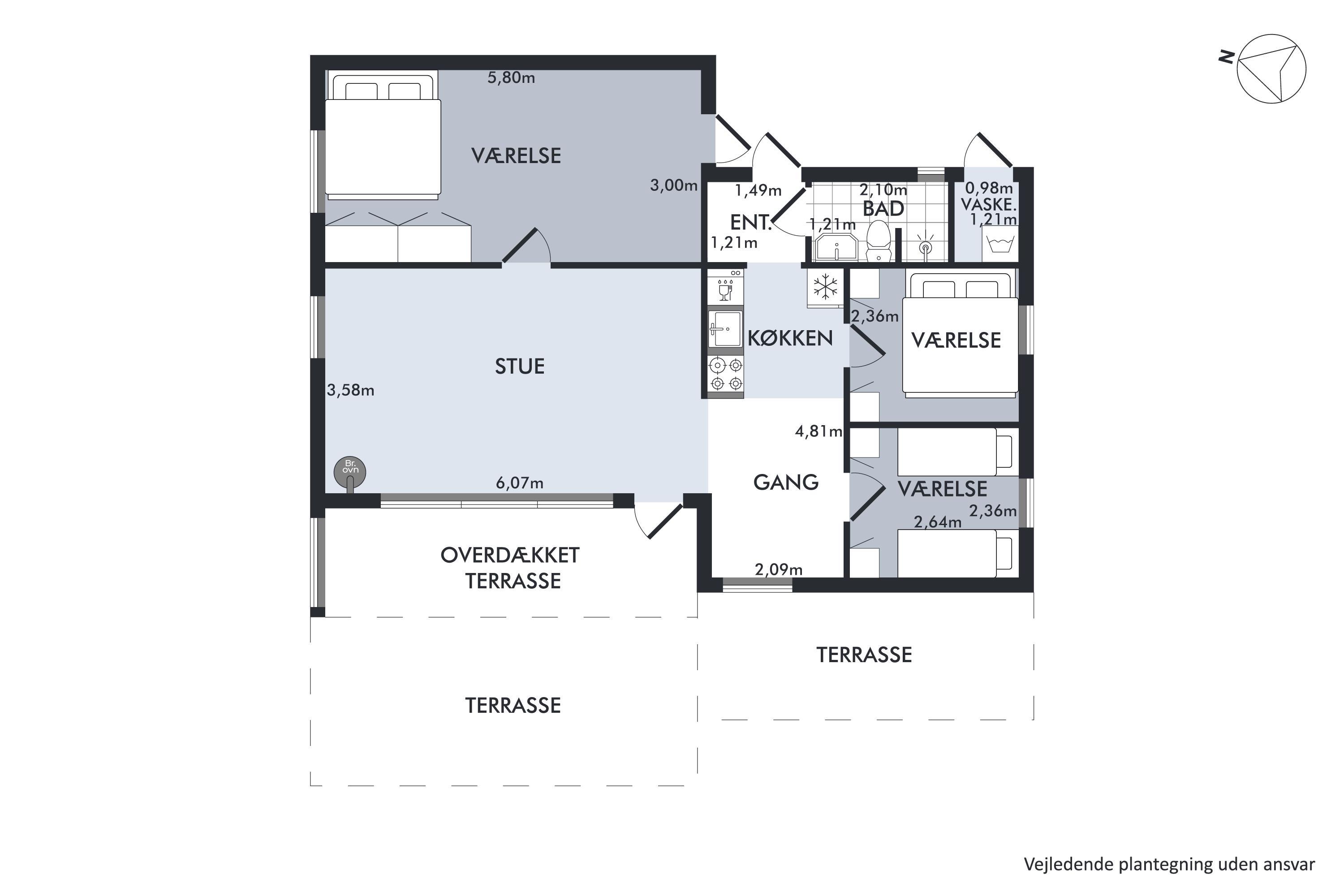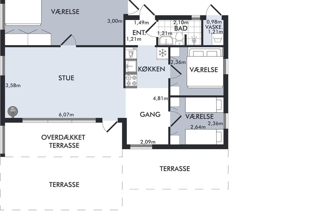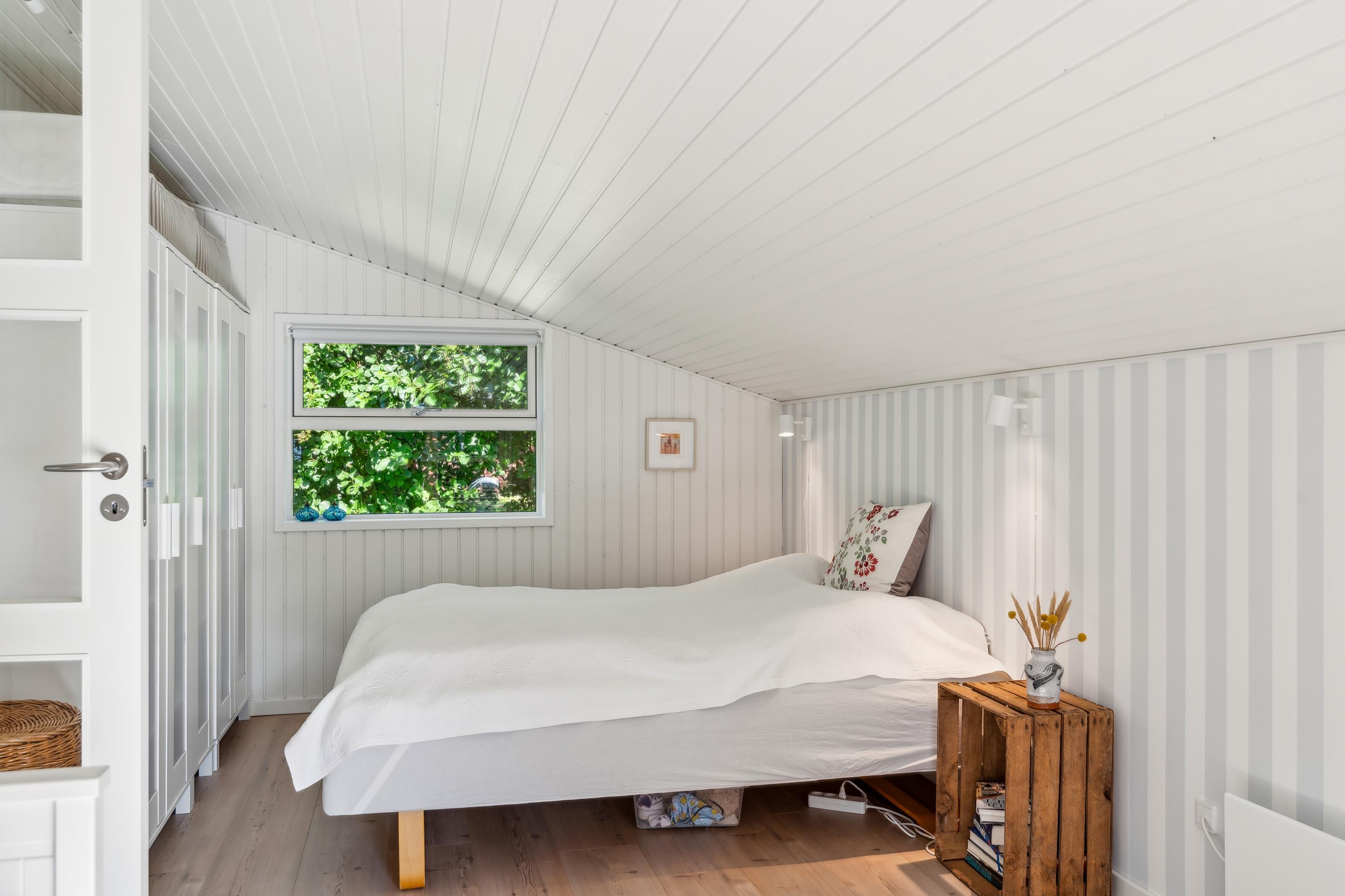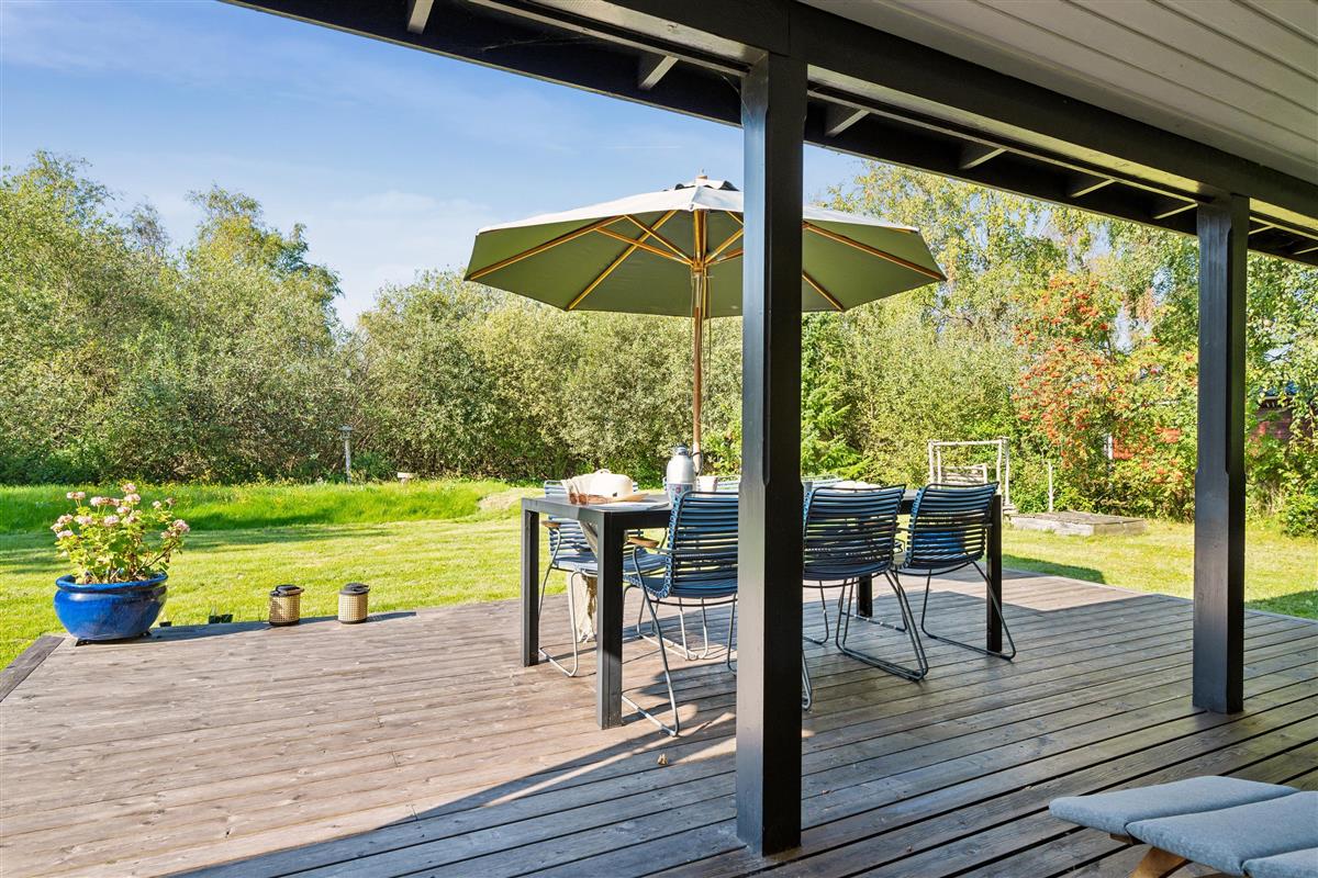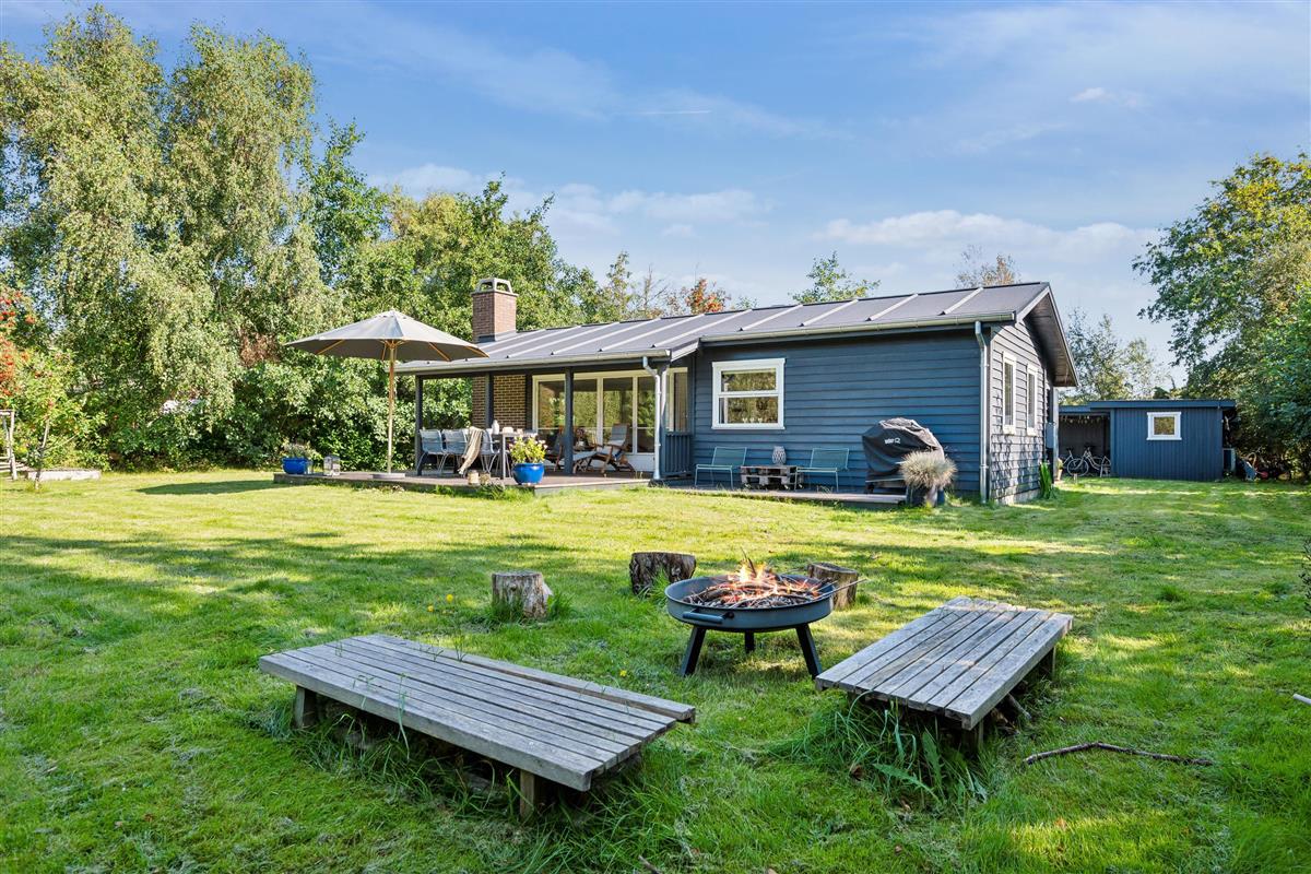 Just 250 meters from the water and a 10-minute drive from Ebeltoft, you’ll find this cozy and well-maintained house. The house includes a charming, well-furnished living room with a wood-burning stove and a heat pump. From here, there is access to a lovely covered terrace with garden furniture, sun loungers, and a grill. The delightful kitchen area is equipped with a dishwasher, among other things. The sleeping accommodations are found in three cozy bedrooms: two with double beds and one with two single beds. There is a lovely bathroom with a shower. A separate room houses a washing machine for your use. The property also features a large lawn, perfect for playing games, and a cozy fire pit where you can enjoy making stick bread on a warm summer evening. The house has internet, and TV is available via Chromecast. The house is in a very child-friendly location at the end of a cul-de-sac.