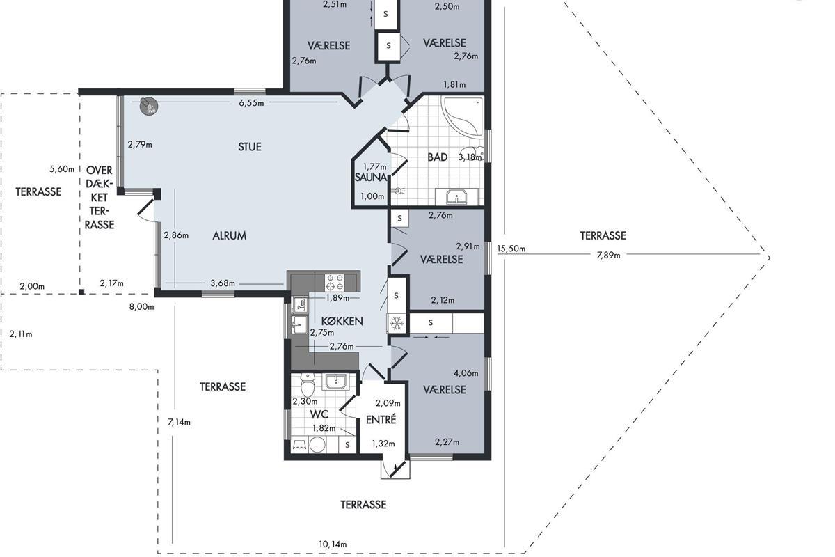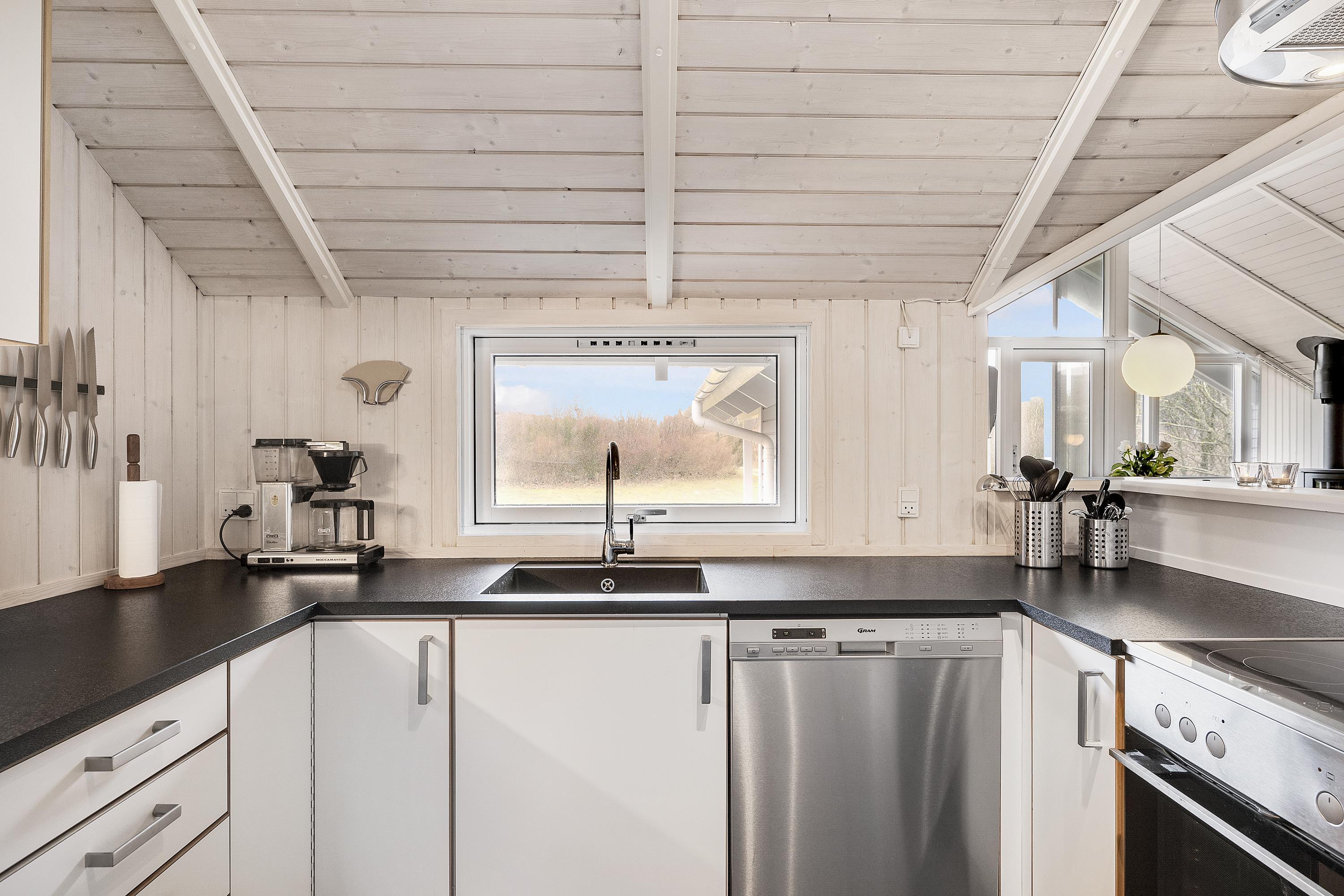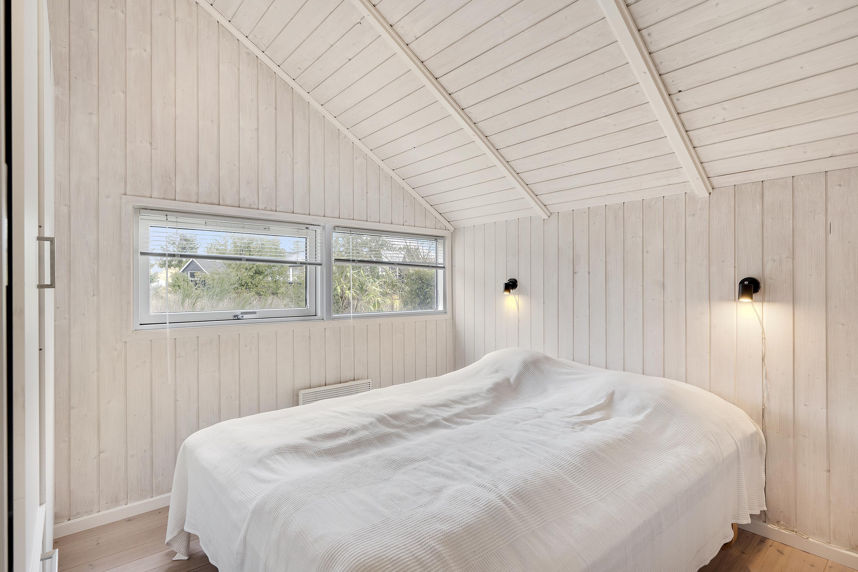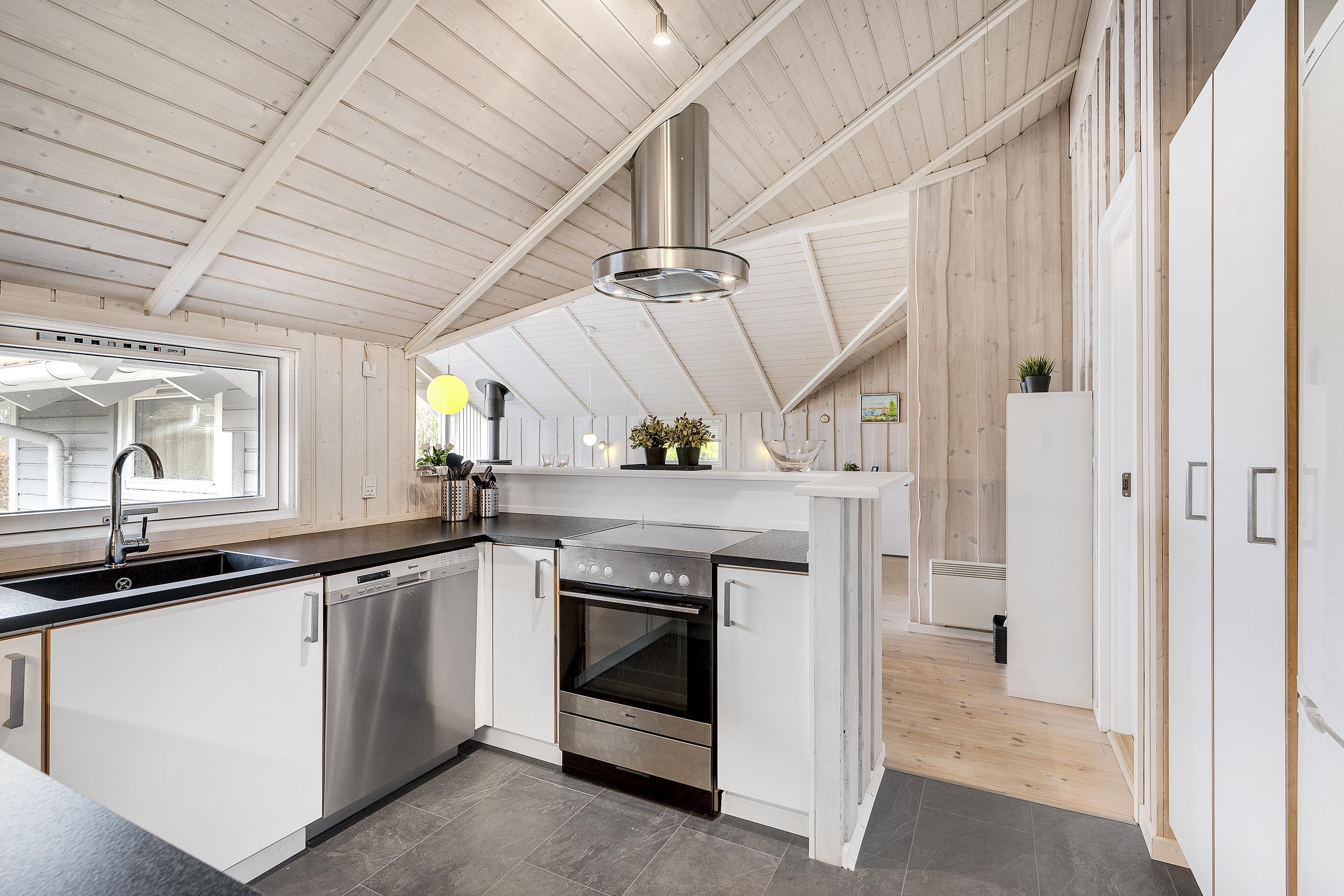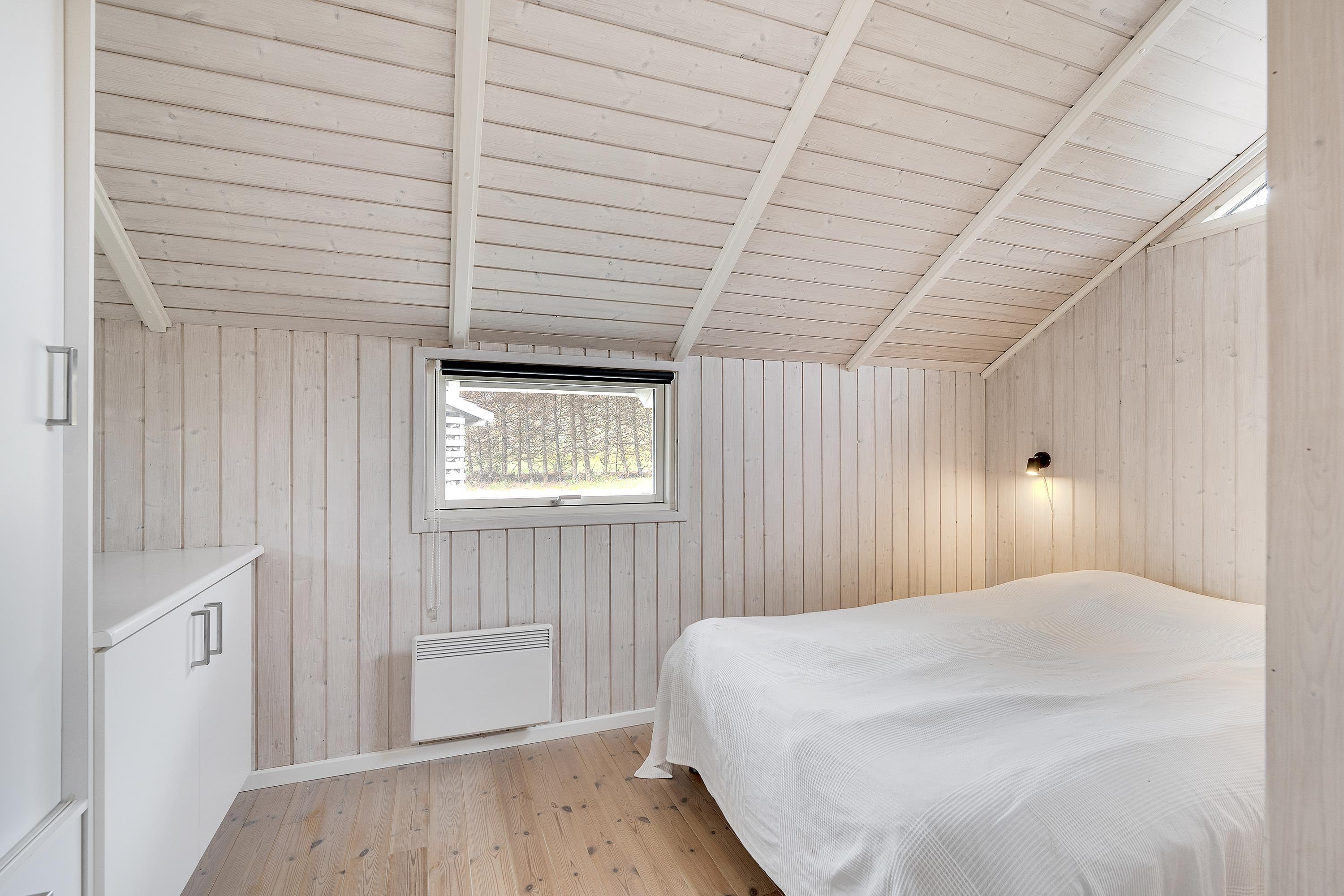 Bright and lovely living room in open connection with the kitchen and with access to the terrace. It features a wood-burning stove, dining area for 8 people, sofa furniture, and TV with Danish (including TV2) and German channels. Newer, well-equipped kitchen with a stove with ceramic hobs and oven, refrigerator/freezer, and dishwasher. The house accommodates 8 sleeping places distributed among 3 good bedrooms with double beds and 1 room with 2 single beds. Spacious and luxurious tiled bathroom with a shower, whirlpool, and sauna, as well as a slightly smaller bathroom with a washing machine and a dryer, both wet rooms with underfloor heating. The house has a heat pump with air conditioning, and there is internet access.