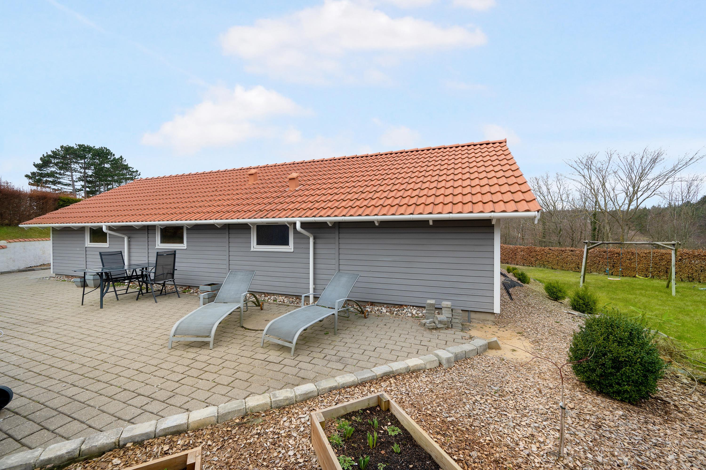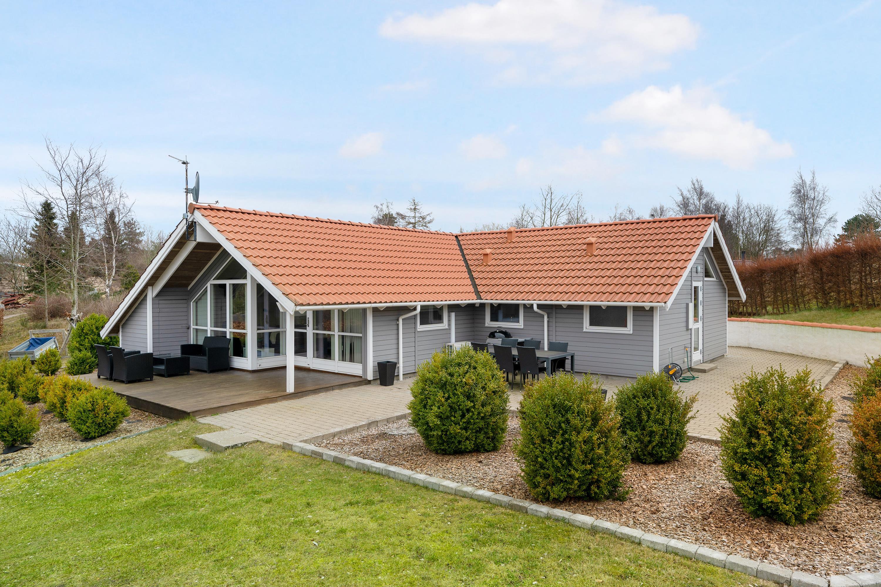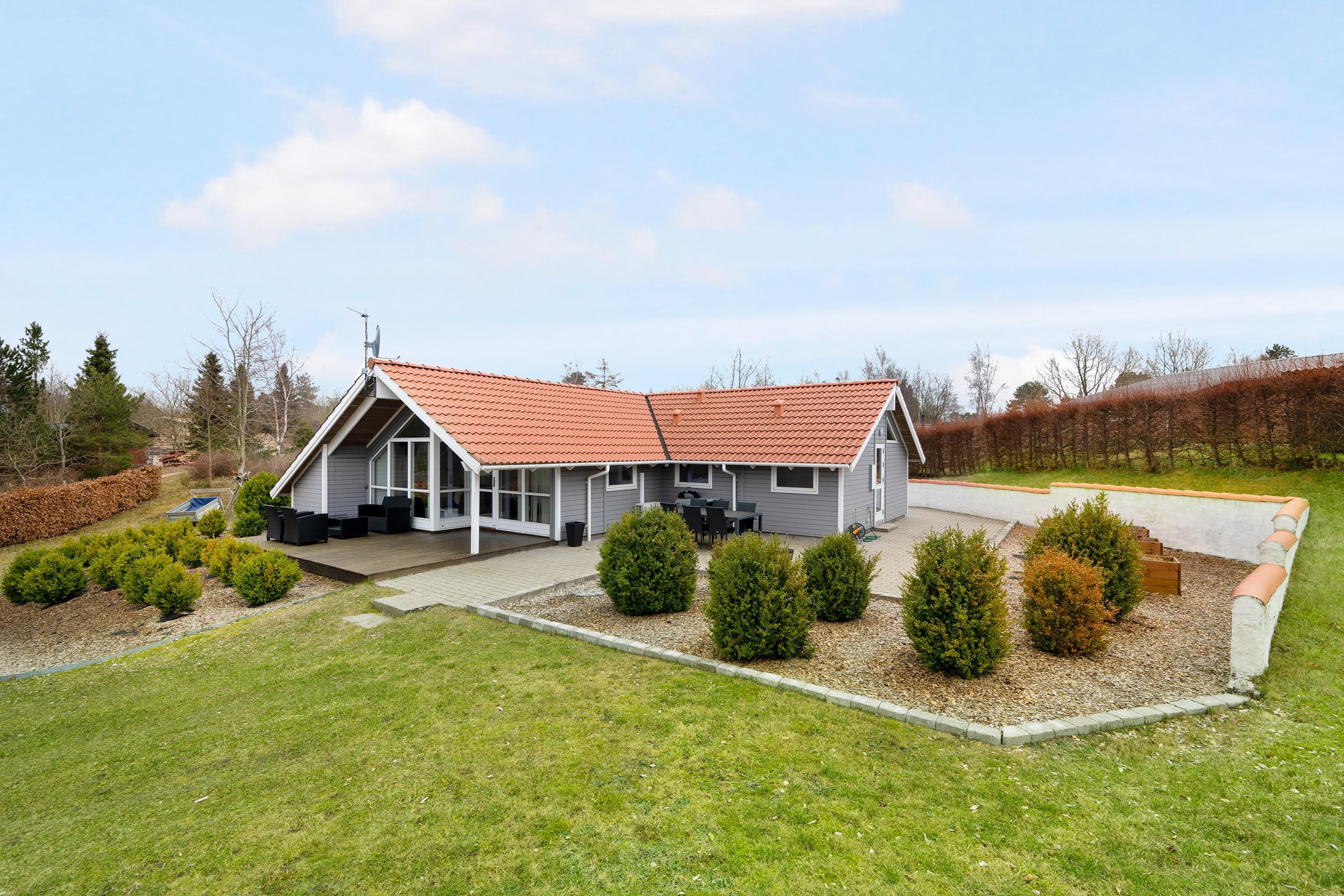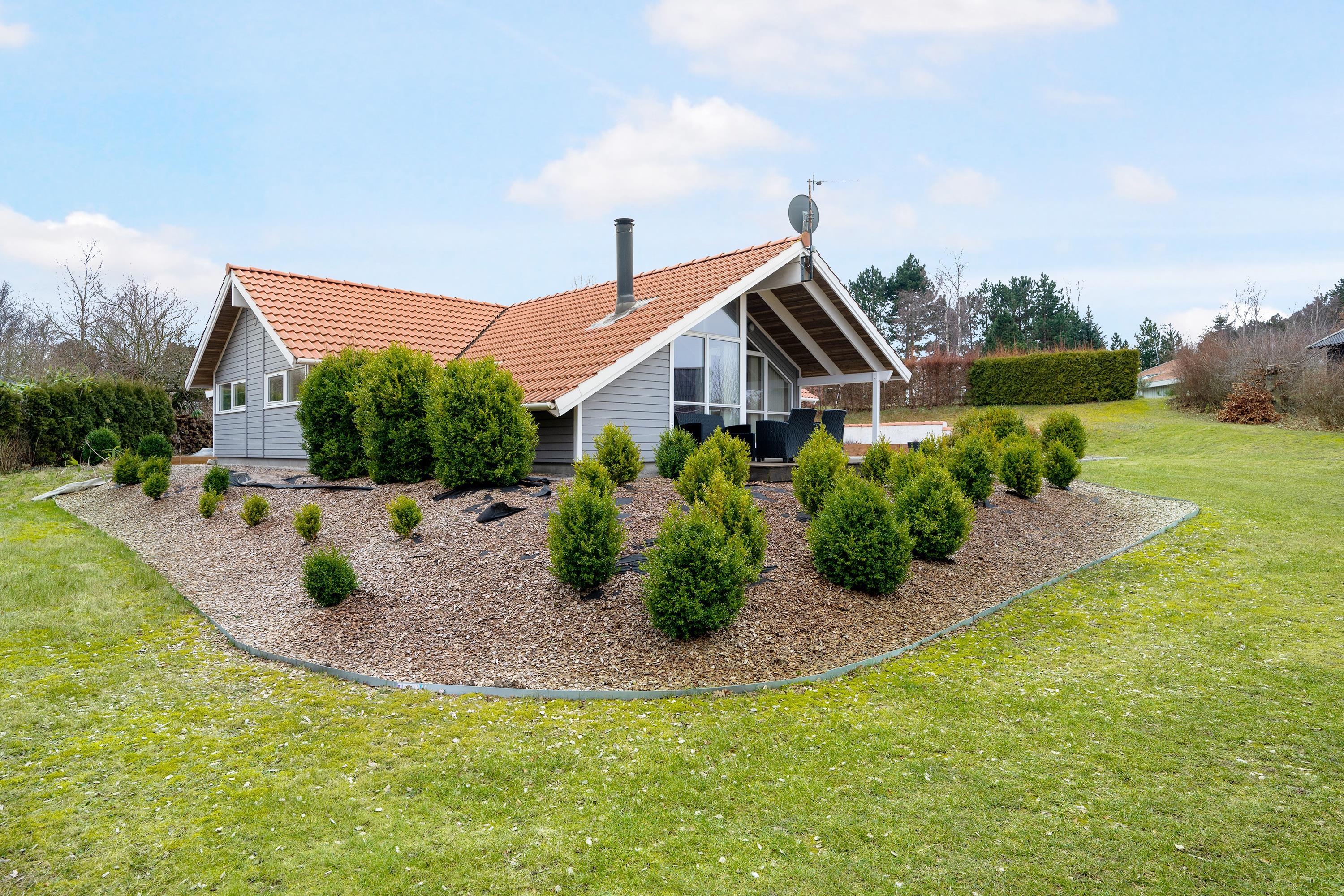 Very well-maintained, spacious holiday house on a beautiful natural lot near Øer with a short distance to sandy dunes and a child-friendly beach. A traditional and truly cozy house. Large, southwest-facing, partially covered wooden/tiled terrace with garden furniture and a grill, where you can enjoy the sun from morning to evening.