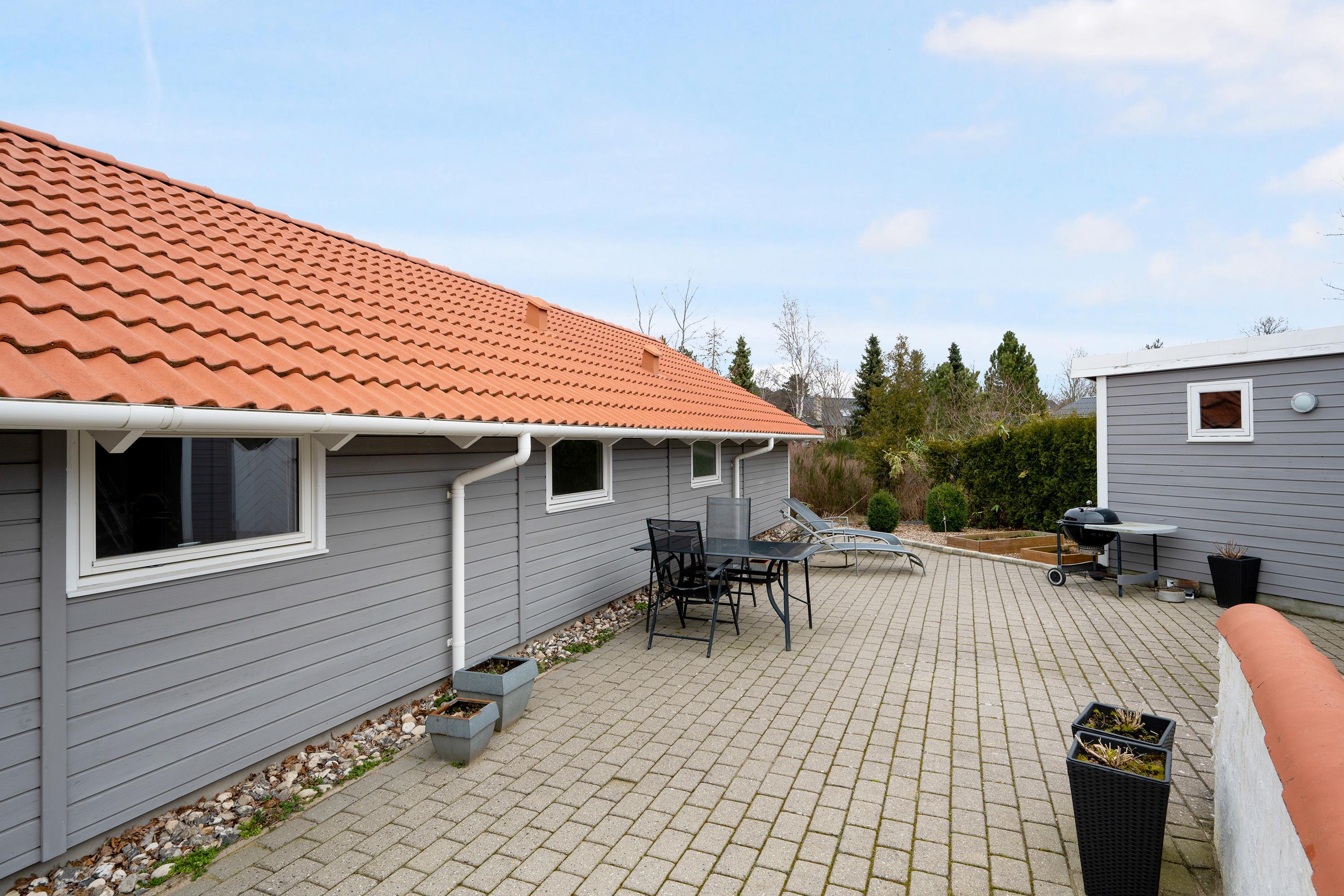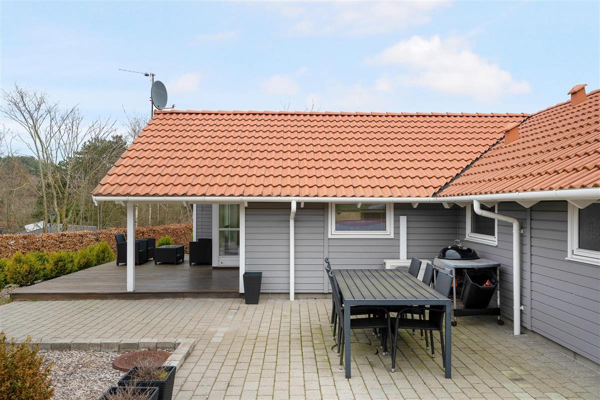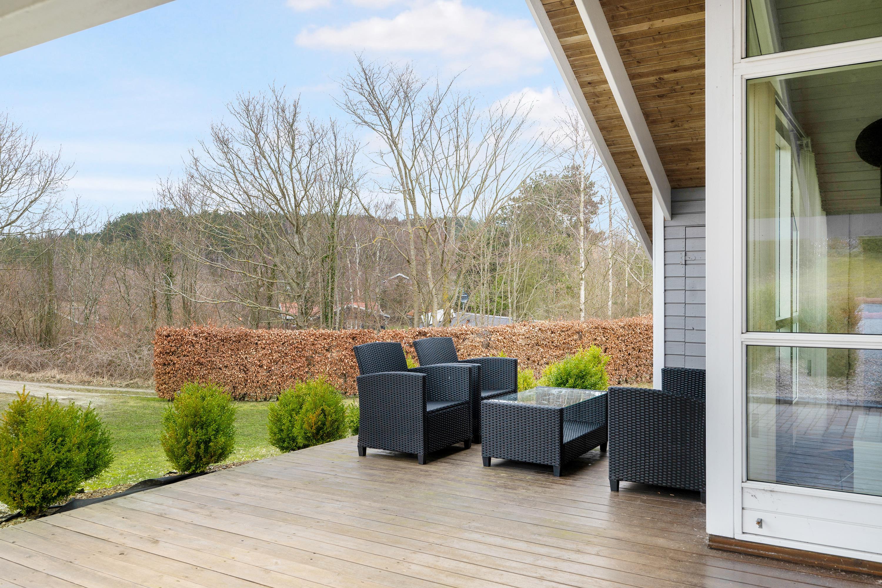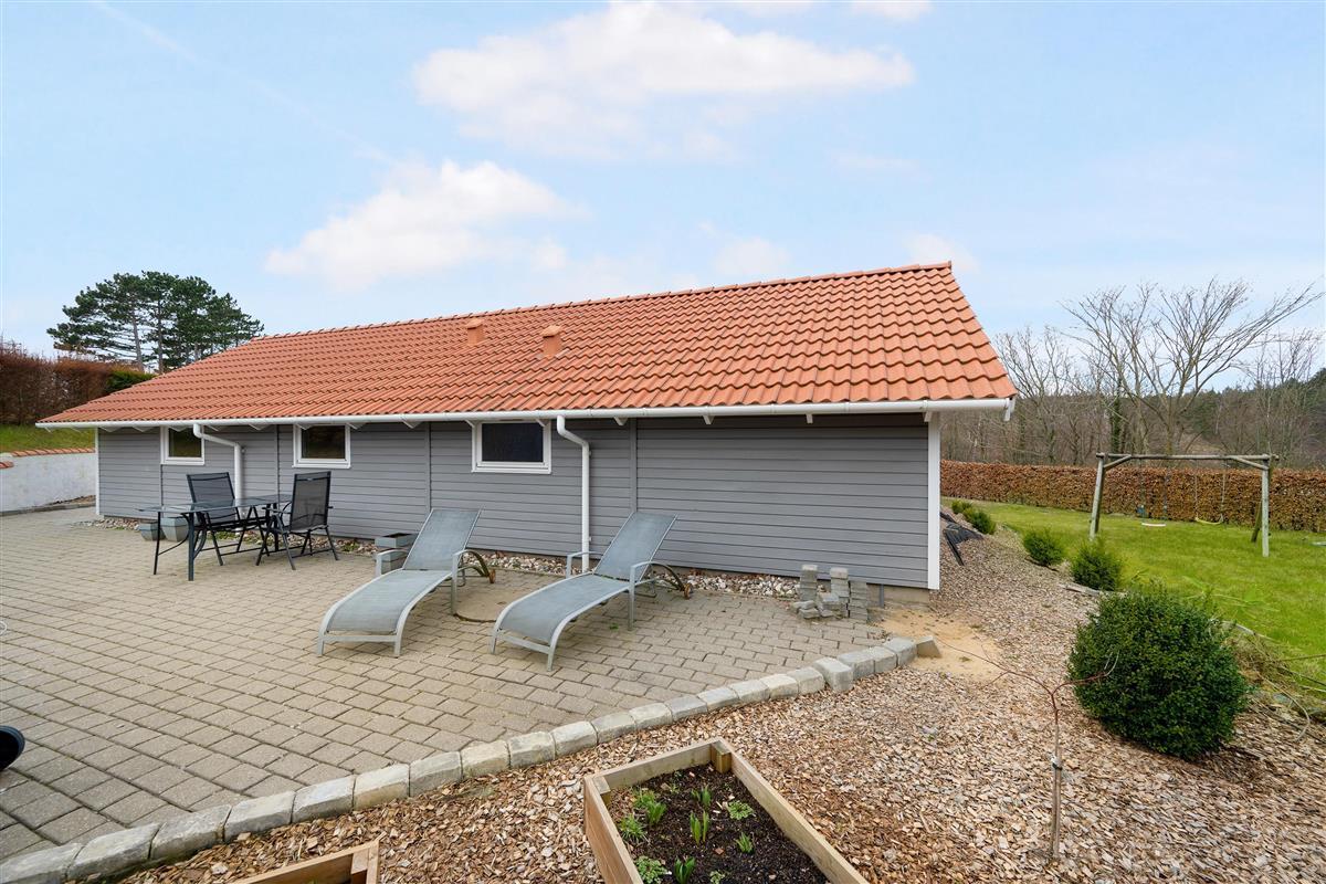 Very well-maintained, spacious holiday house on a beautiful natural lot near Øer with a short distance to sandy dunes and a child-friendly beach. A traditional and truly cozy house. Large, southwest-facing, partially covered wooden/tiled terrace with garden furniture and a grill, where you can enjoy the sun from morning to evening.