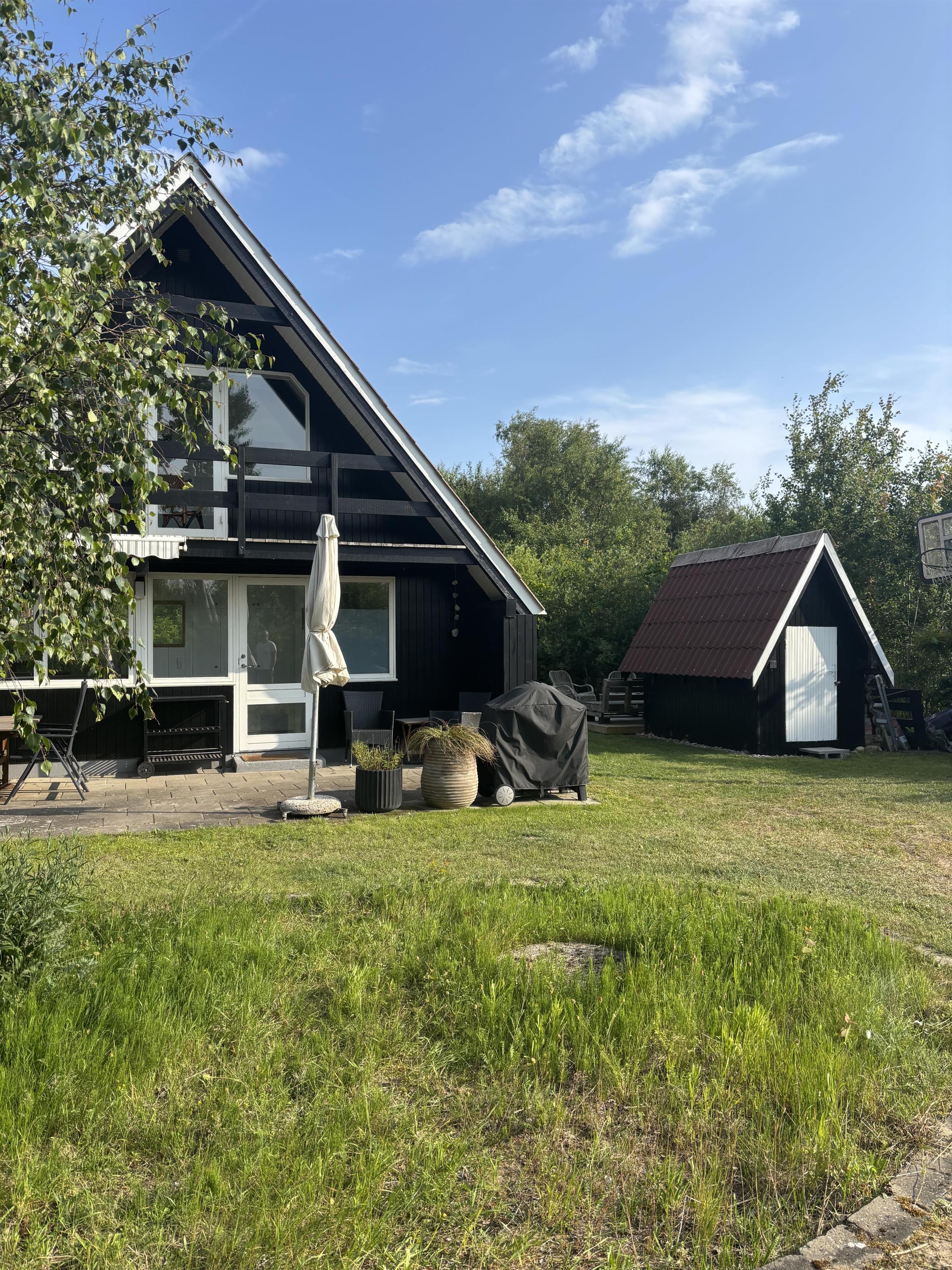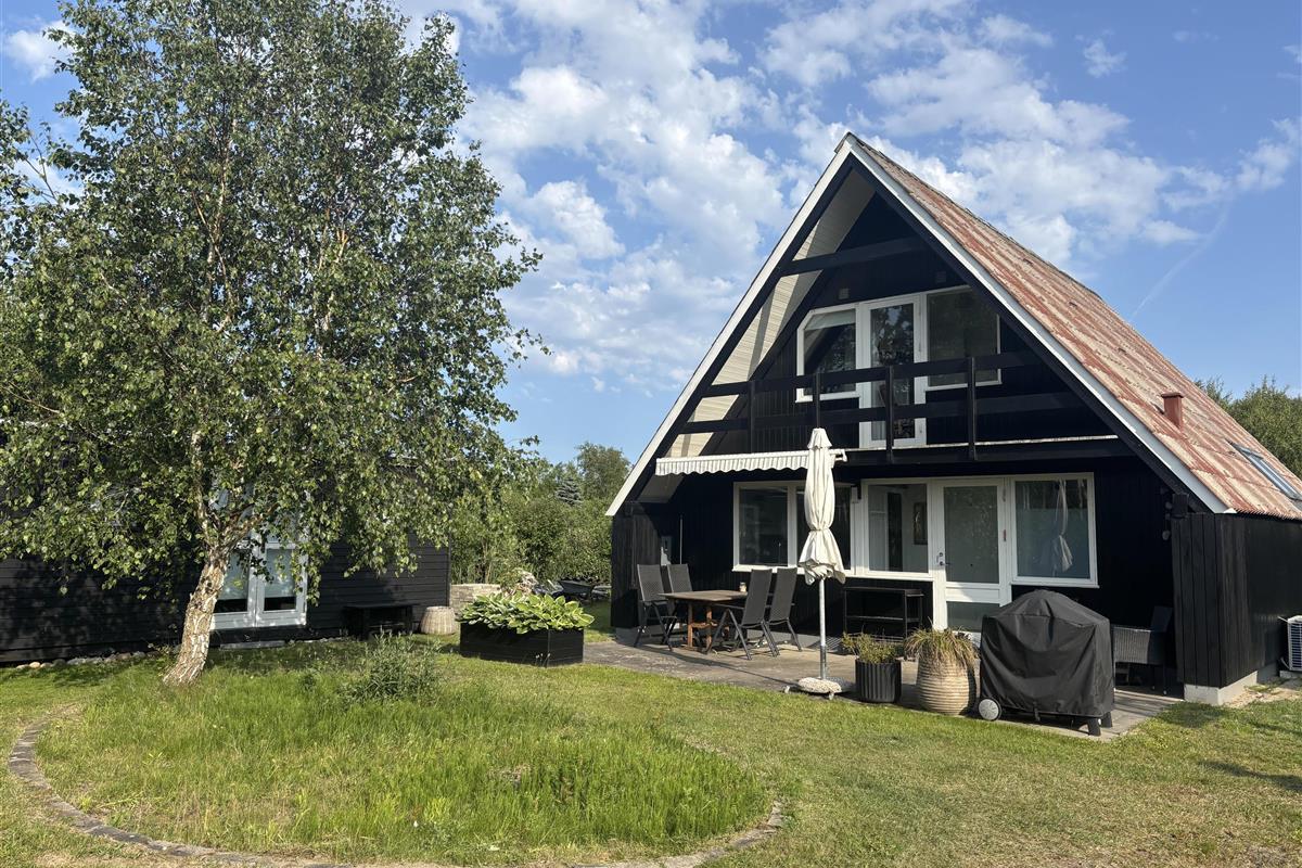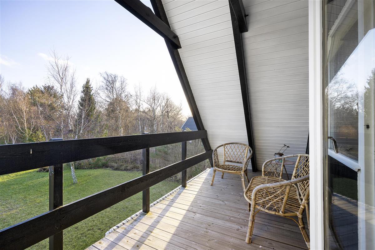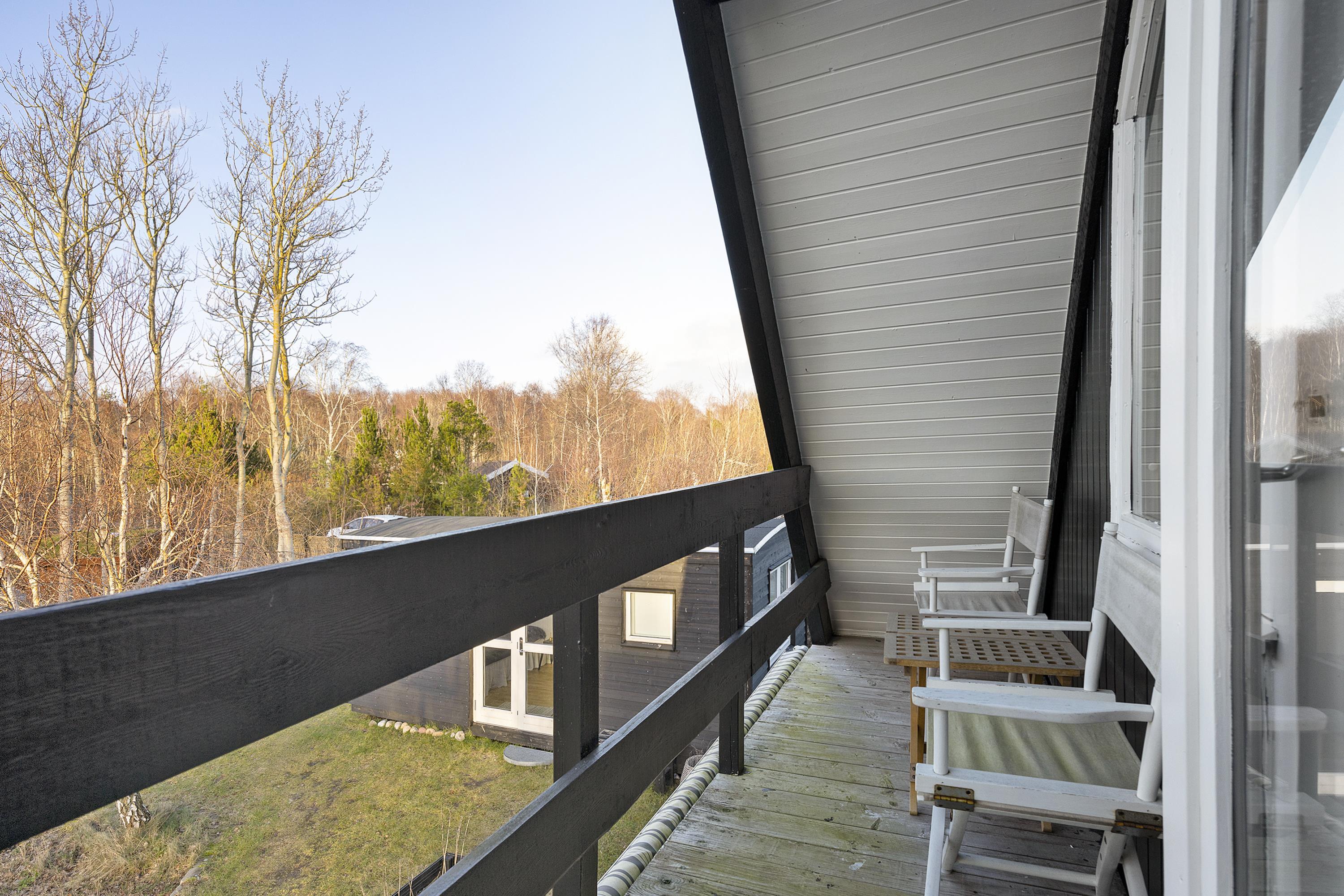 Close to Ebeltoft and not far from the water, you will find this charming two-story holiday home. The house features a cozy living room with a heat pump and direct access to a lovely covered terrace with garden furniture. Adjacent to the living room is a functional kitchen equipped with, among other things, a dishwasher. From the living room, stairs lead to the first floor, where the house’s sleeping quarters are located. There is one bedroom with a double bed (180x200 cm) and a single bed (70x200 cm), another bedroom with two single beds (70x200 cm, which can be pushed together), and a smaller alcove room with a 140x200 cm bed, best suited for children. Two of the bedrooms have access to the balcony, from which you can enjoy the beautiful views of the surrounding area.