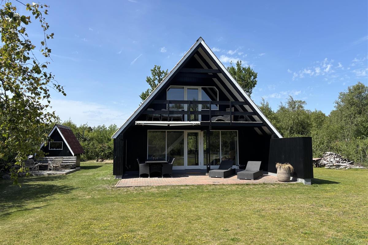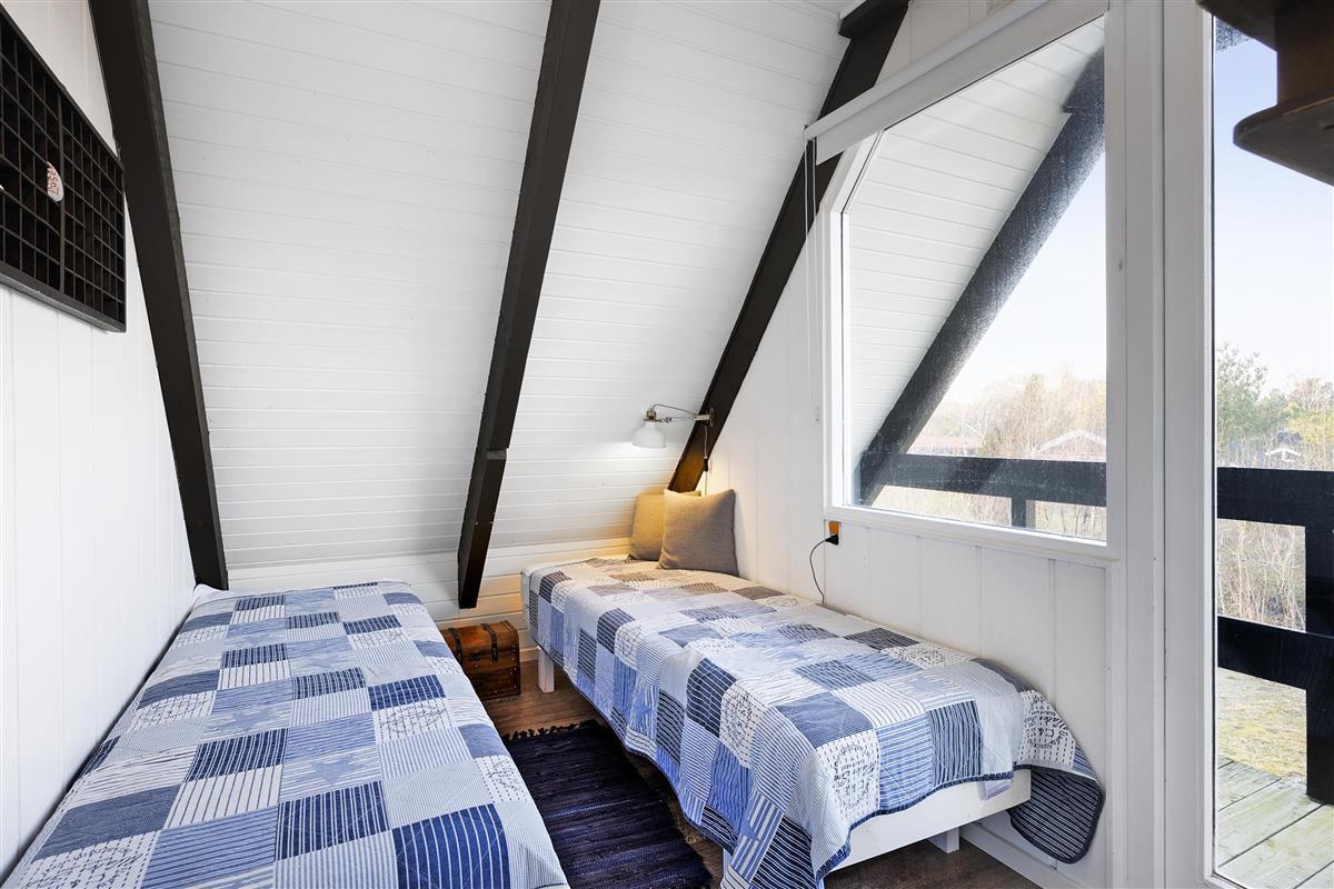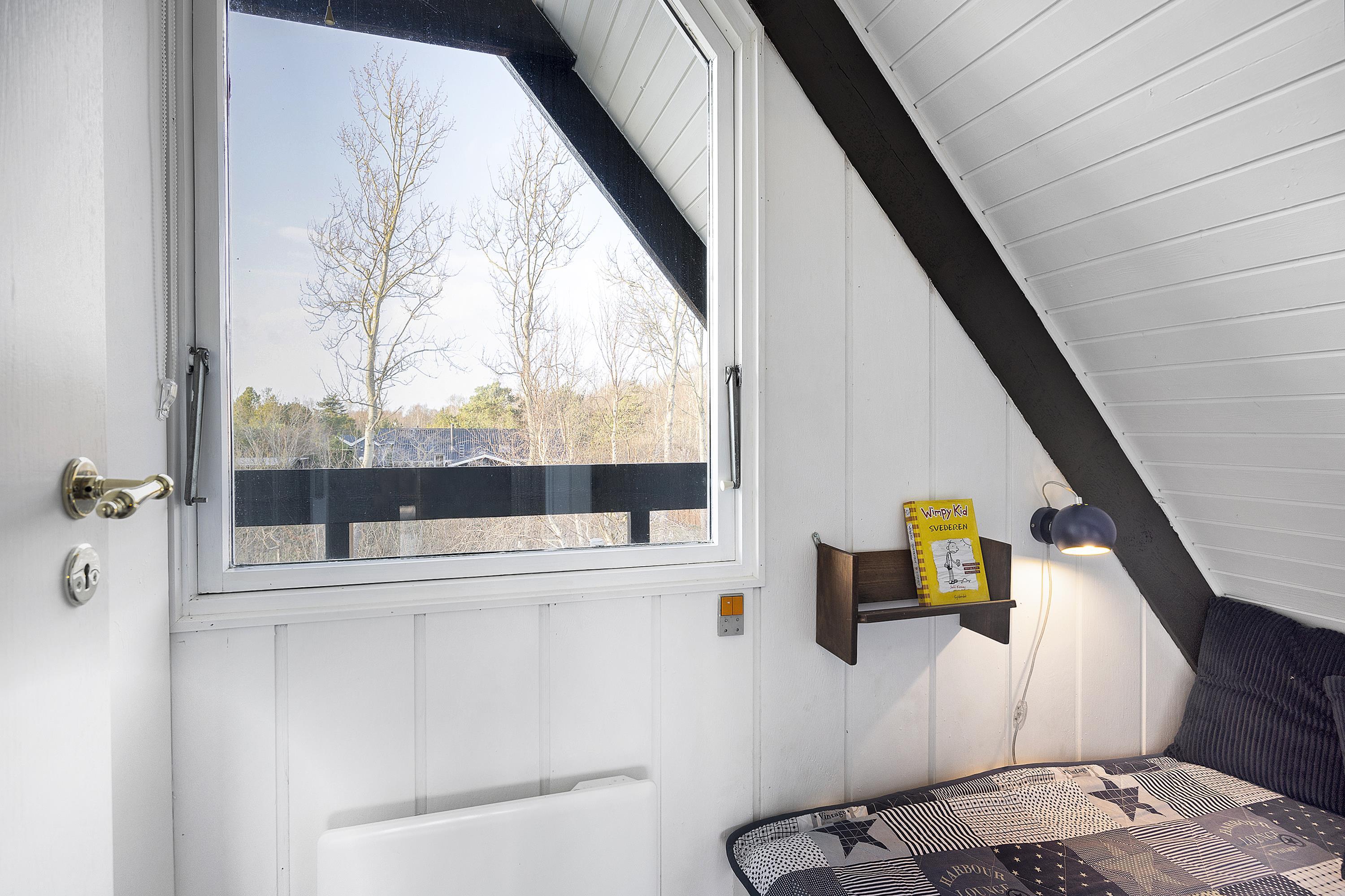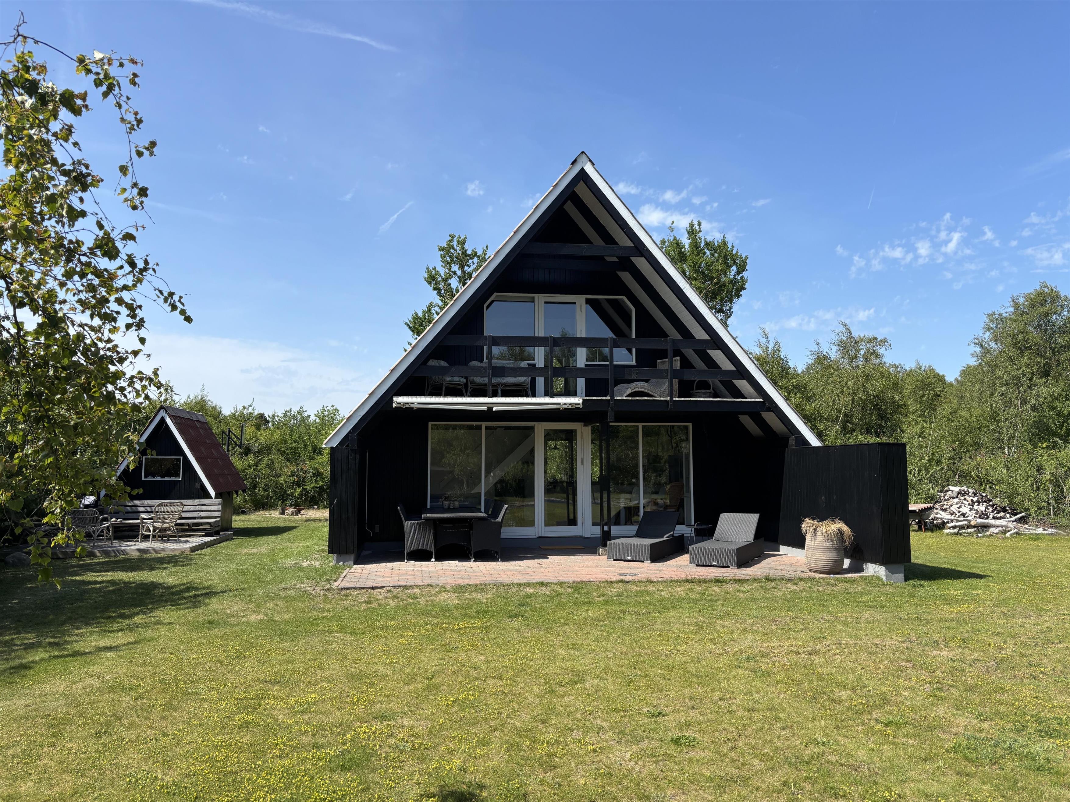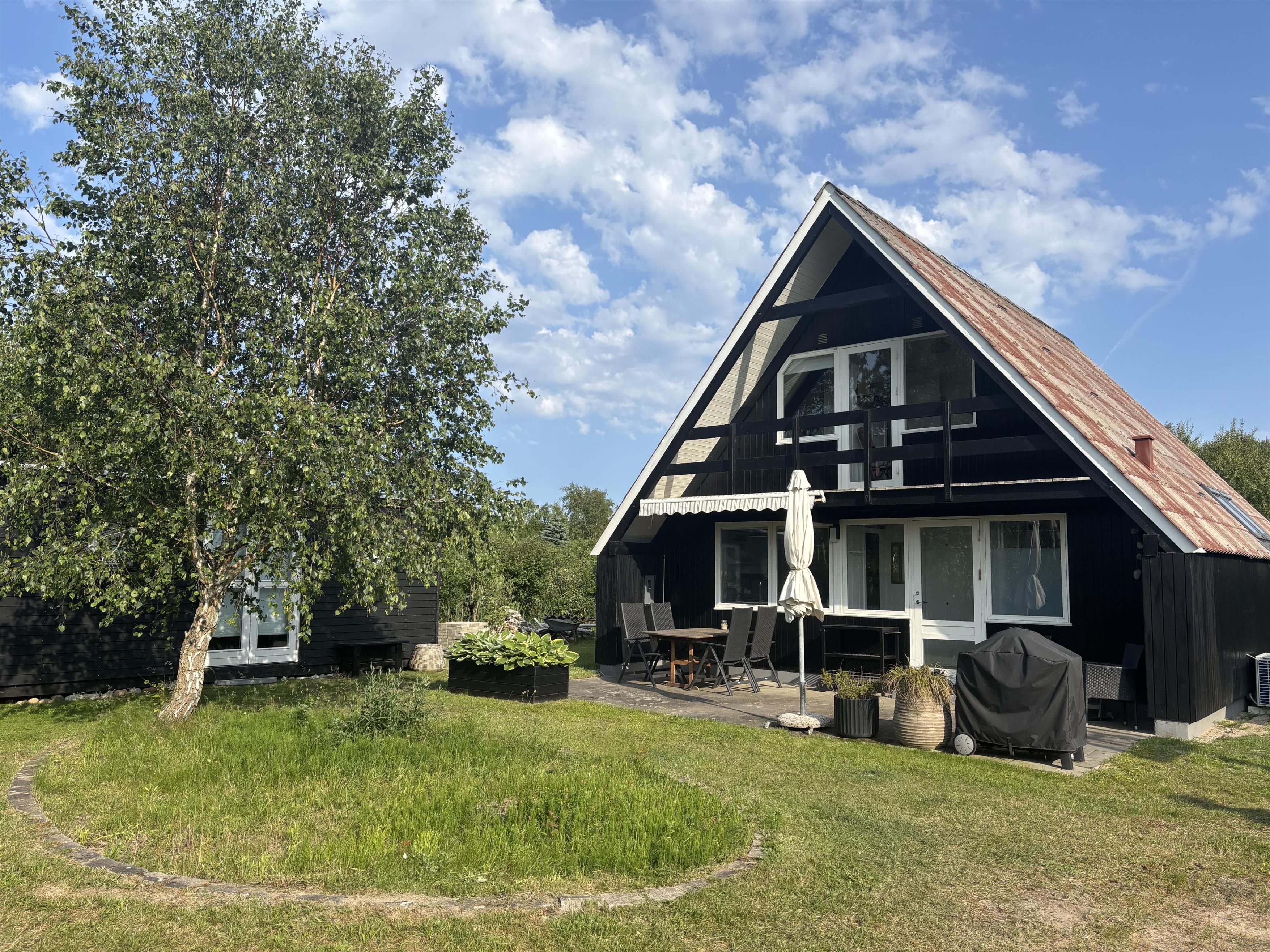 Close to Ebeltoft and not far from the water, you will find this charming two-story holiday home. The house features a cozy living room with a heat pump and direct access to a lovely covered terrace with garden furniture. Adjacent to the living room is a functional kitchen equipped with, among other things, a dishwasher. From the living room, stairs lead to the first floor, where the house’s sleeping quarters are located. There is one bedroom with a double bed (180x200 cm) and a single bed (70x200 cm), another bedroom with two single beds (70x200 cm, which can be pushed together), and a smaller alcove room with a 140x200 cm bed, best suited for children. Two of the bedrooms have access to the balcony, from which you can enjoy the beautiful views of the surrounding area.