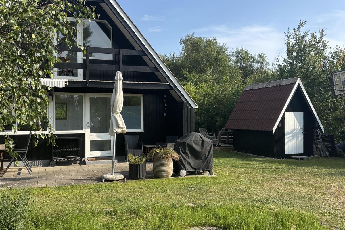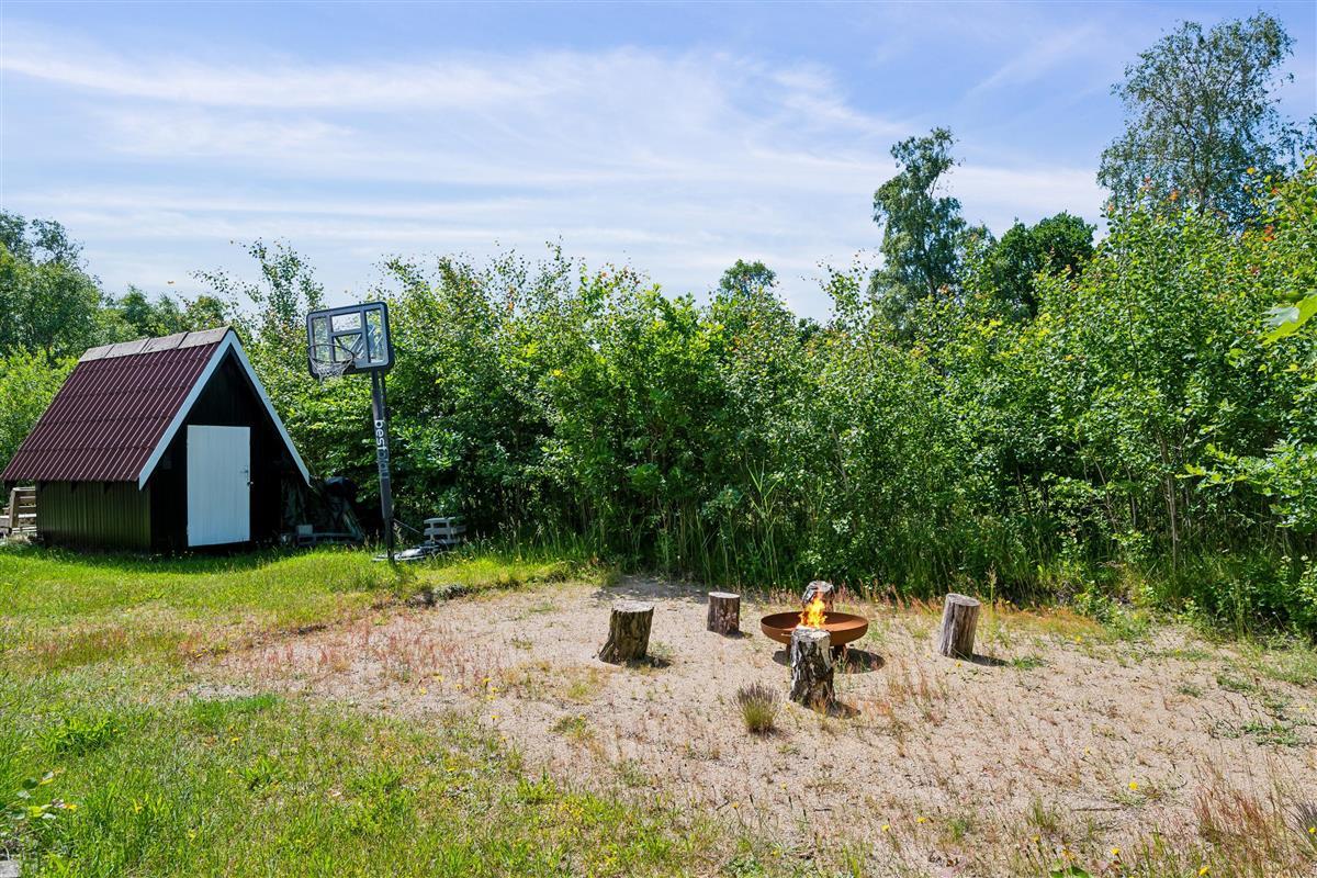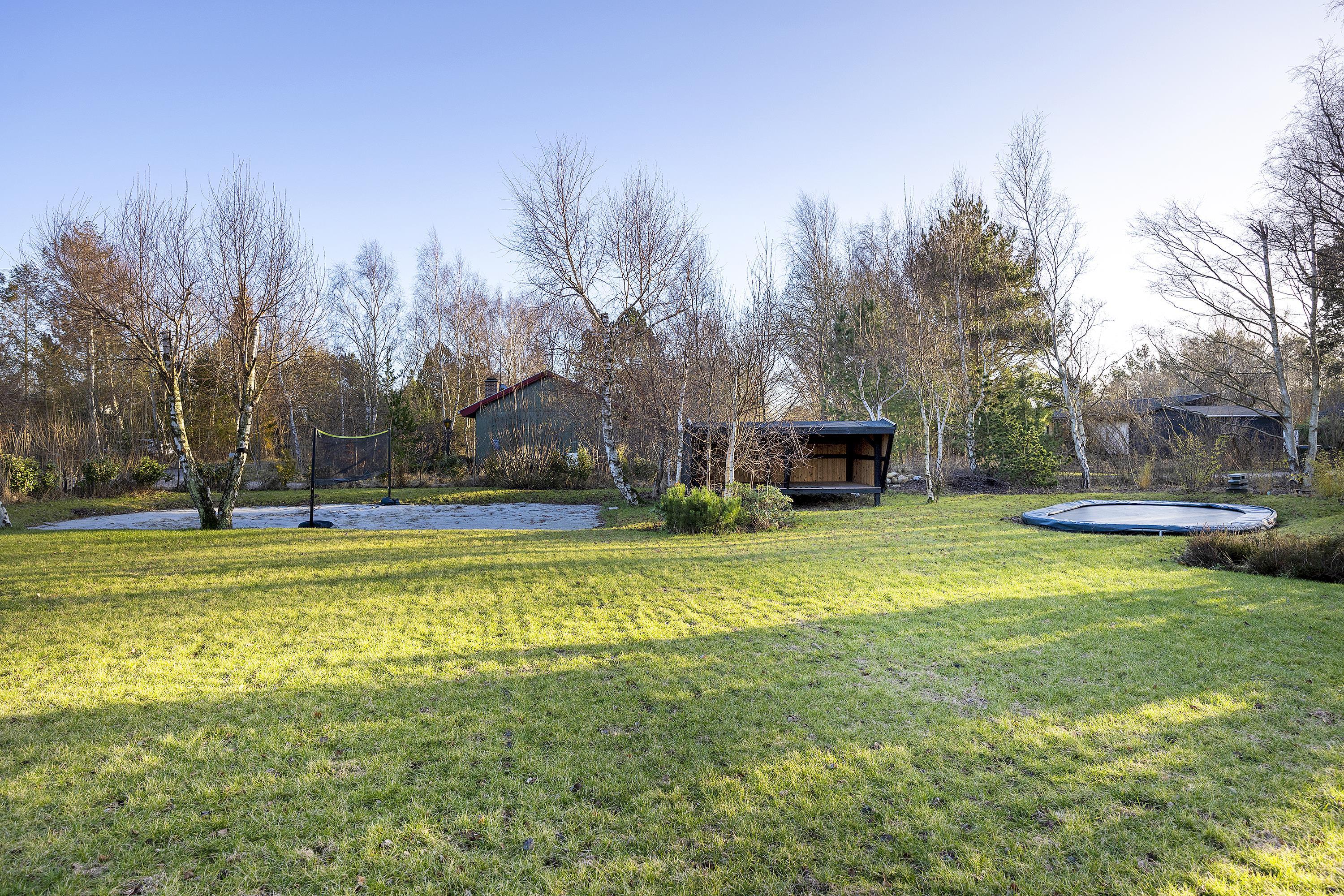 The house is situated on a lovely plot with a lawn, ideal for playing and ball games. It also features a trampoline and a beach volleyball court. There is also a fire pit where you can roast sausages and bake bread over an open flame on a warm summer evening. If you feel like sleeping outdoors, you can do so in the charming shelter. If you are traveling with multiple families and wish to stay close to each other, we also rent out the house across the street (house number 04830).