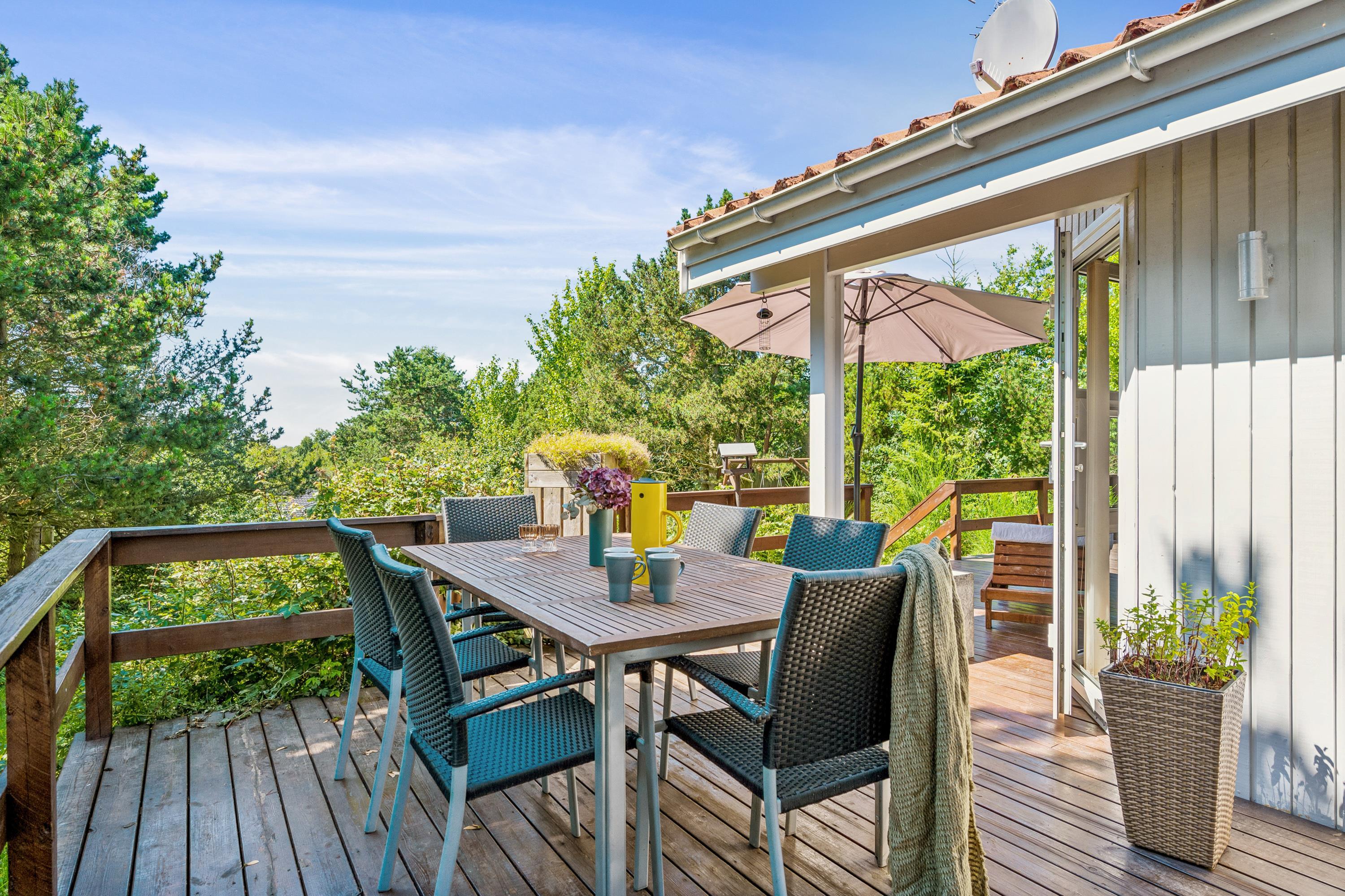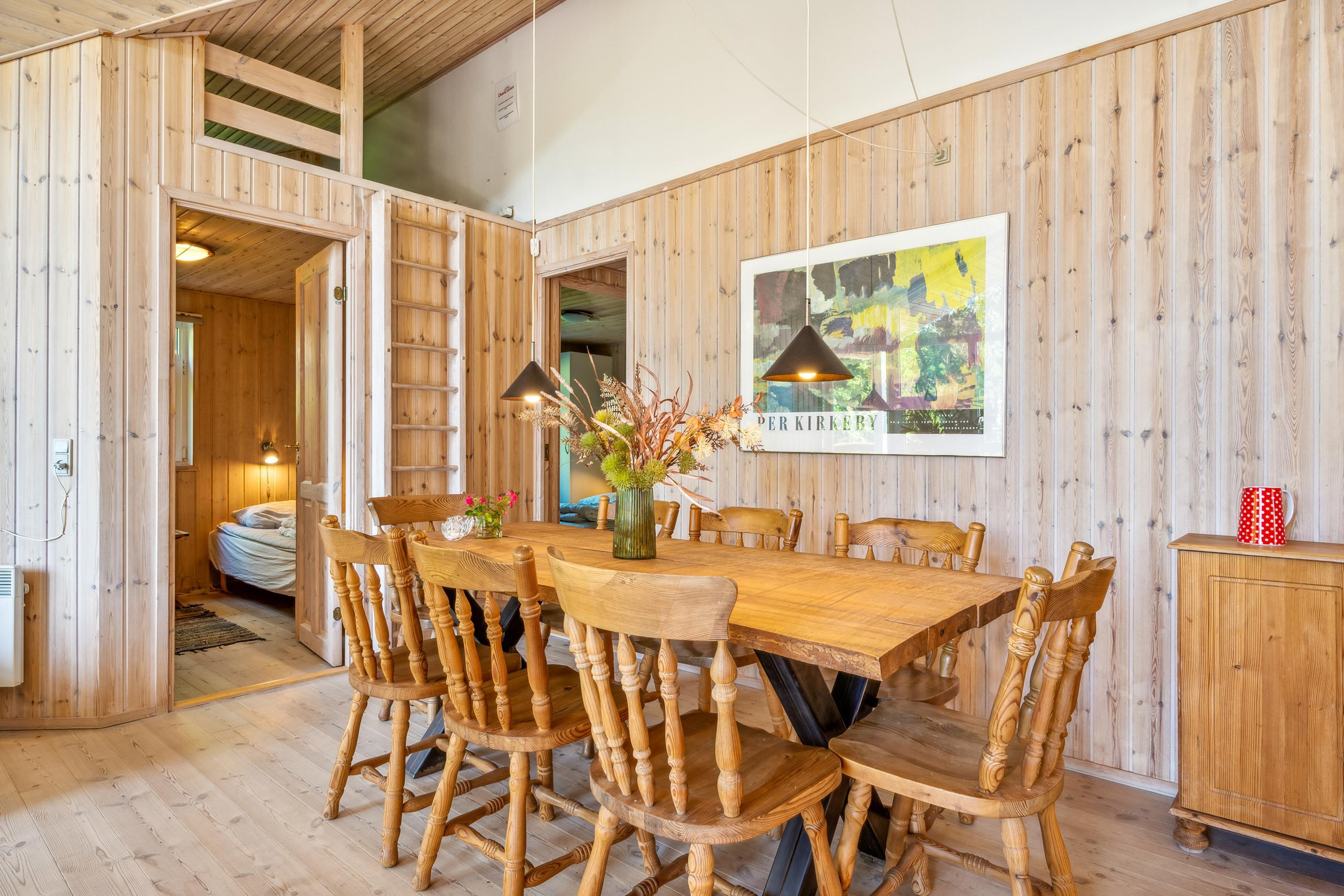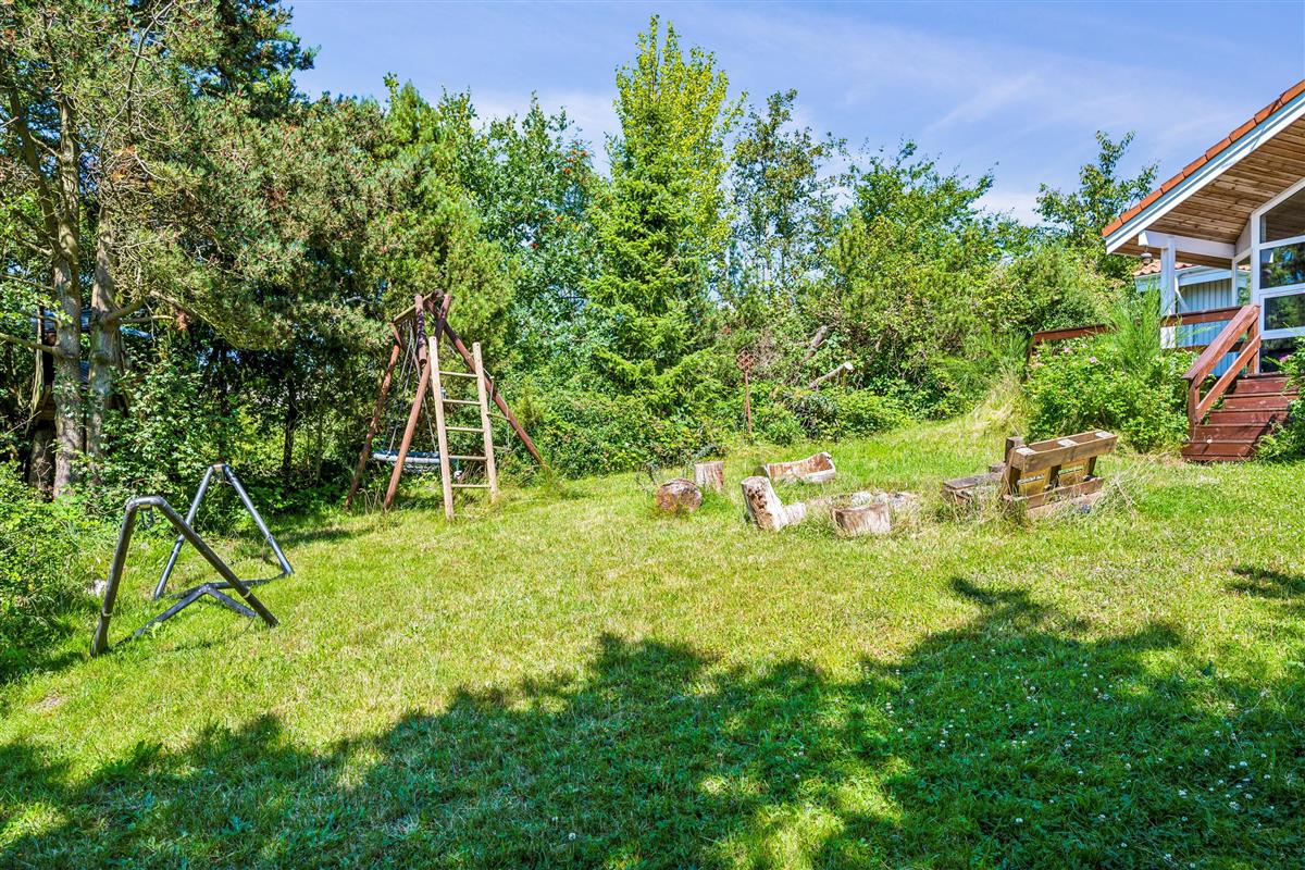 Not far from Ebeltoft, you'll find this charming holiday home situated on an elevated, hilly plot. Inside, there's a bright and cozy furnished living room with access to a large terrace equipped with garden furniture. The delightful kitchen includes amenities such as a dishwasher and a good dining area. The spacious bathroom features a spa bath, access to a sauna, a washing machine, and a dryer. The sleeping arrangements consist of three good-sized bedrooms: two with double beds and one with two single beds. Additionally, there are two more sleeping spaces in the loft, which are most suitable for older children. The lovely terrace areas with garden furniture include a wilderness bath behind the house. The grounds also have a bonfire pit, a cozy shelter, swings, and a playhouse for the little holiday guests. Free access to the public Swimming Pool in Ebeltoft. If you're traveling with multiple families who want to stay close to each other, the house is opposite to 03819 and 03606.