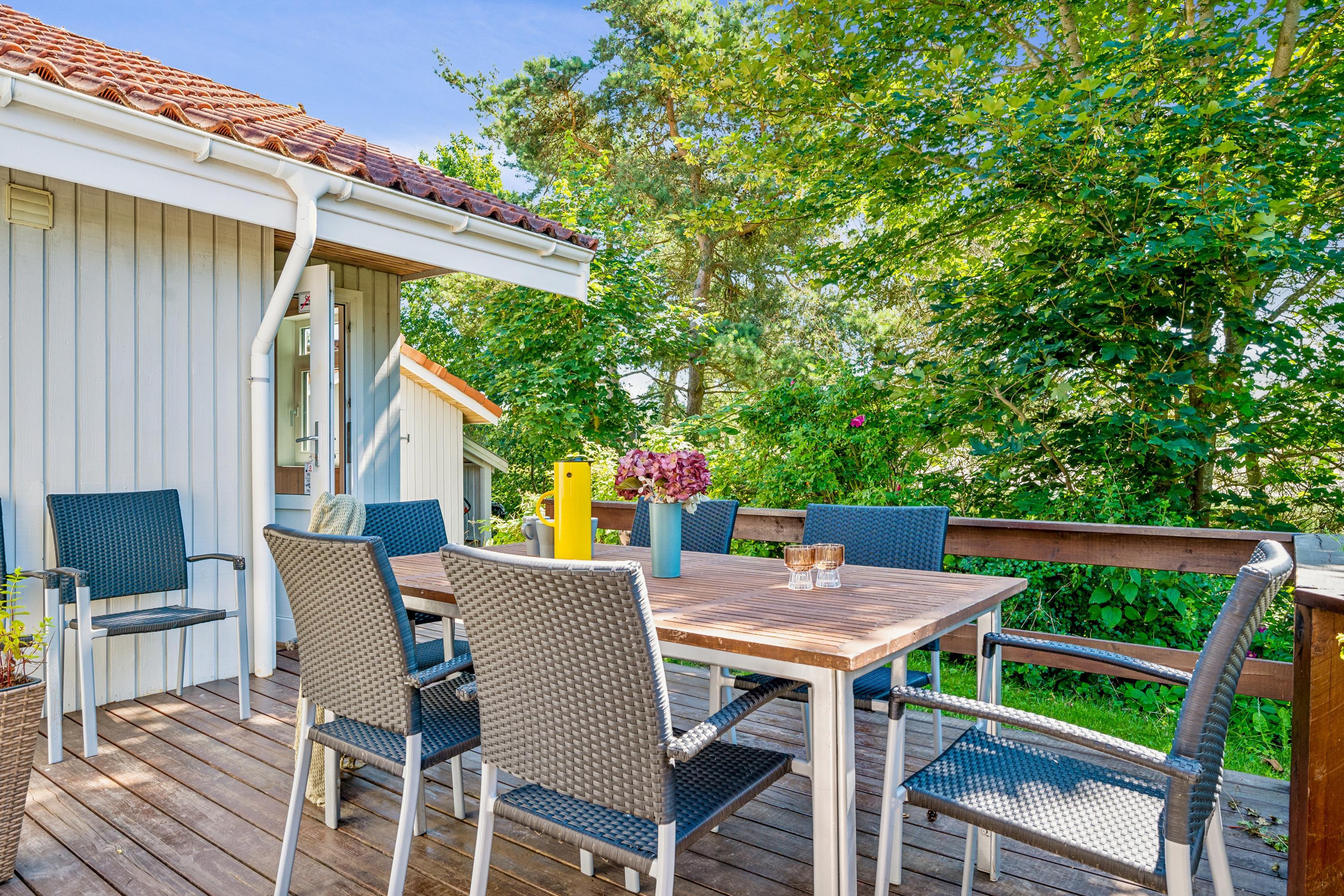 The area around Øer is a charming and popular vacation spot near forests and beaches. The beach is characterized by shallow water and a sandy shore, although in some places, the beach can be a mix of stones and sand. If you enjoy mountain biking, there's a 13 km long trail in the area with varying degrees of difficulty. From the house, it's about a 5-minute drive to the harbor in Ebeltoft. There, you'll find the Glass Museum, a leading venue for modern glass art. The harbor also hosts several good dining options and always offers the chance to buy freshly caught fish. A visit to the frigate Jylland is also recommended. It's about an hour's drive to Djurs Sommerland, the largest amusement park in Scandinavia, which offers rides and attractions for all ages.